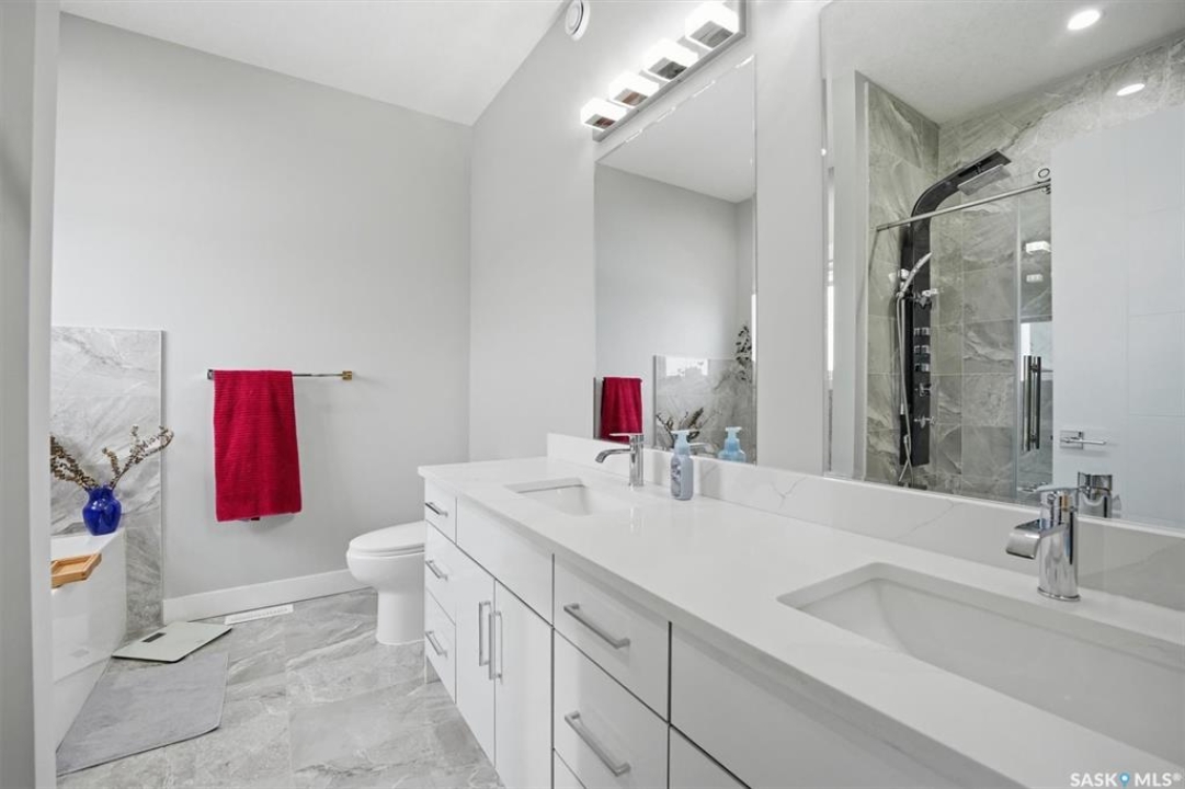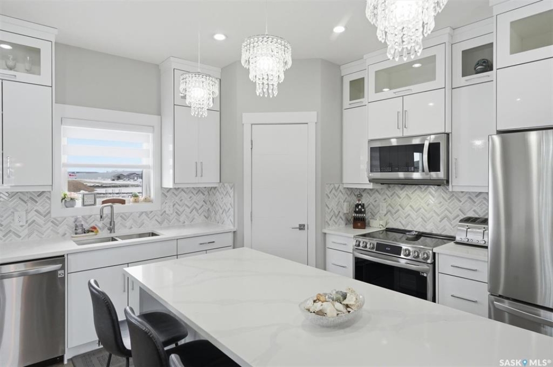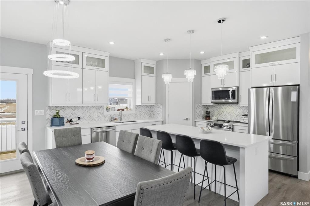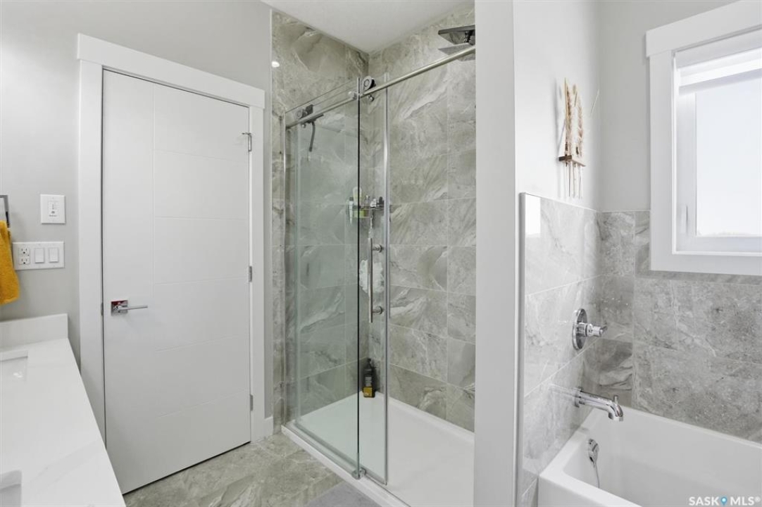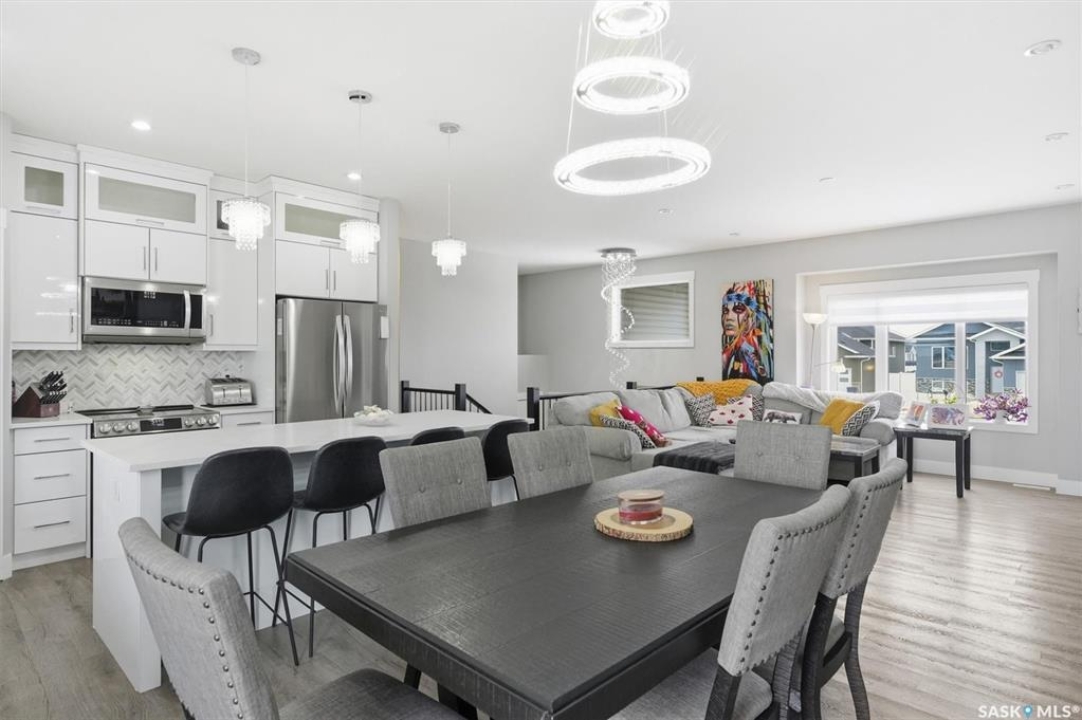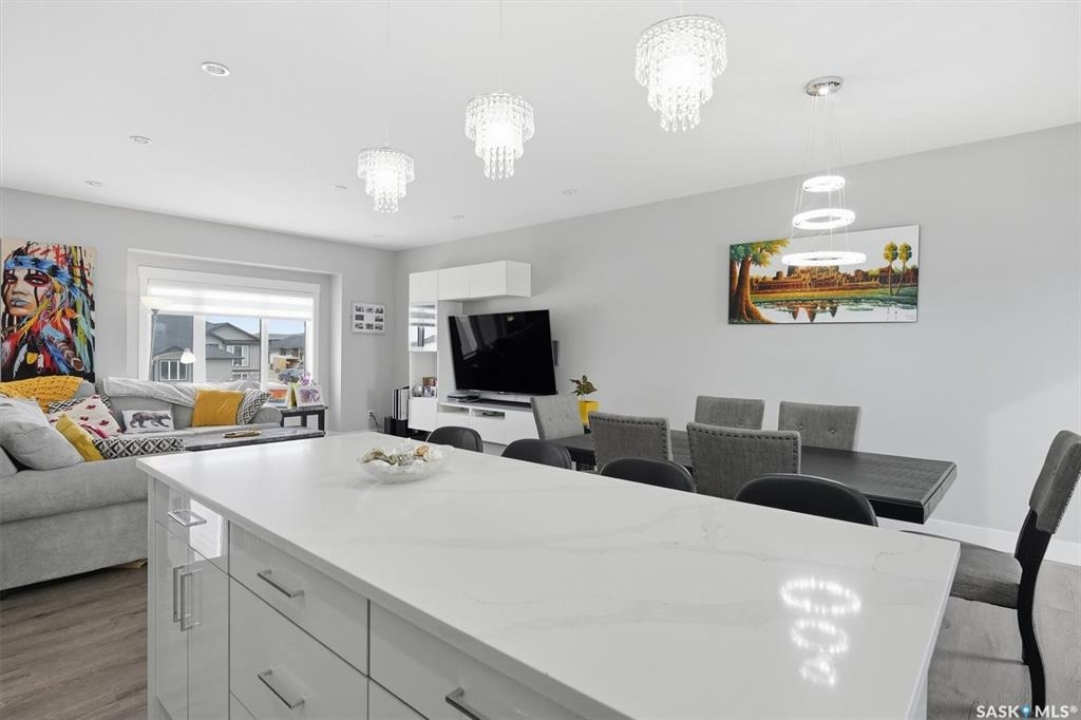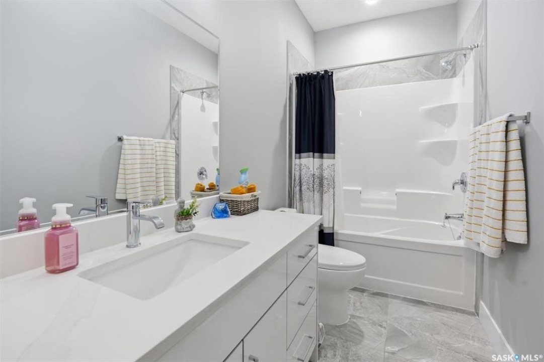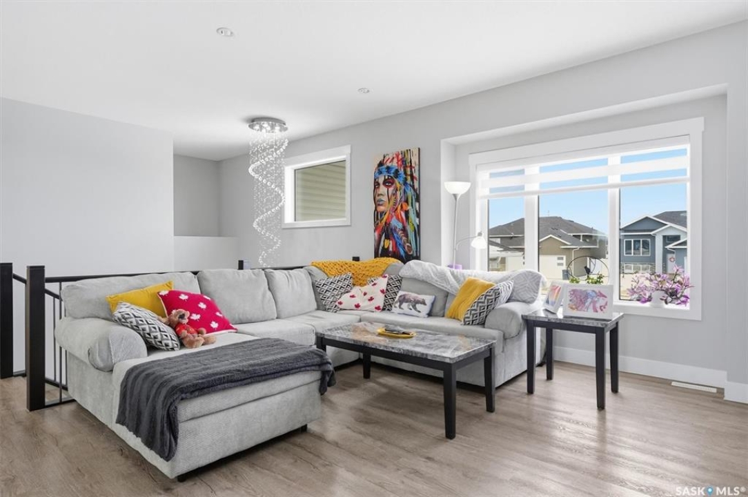 LEGAL 2 BEDROOM BASEMENT SUITE!!! Welcome to this beautifully built 2022 bi-level home offering 1,440 sq ft of modern living space in the growing community of Warman. Perfectly suited for families or investors, this property combines comfort, functionality, and income potential. The main floor features 3 spacious bedrooms and 2 full bathrooms, along with the convenience of main floor laundry. The bright, open-concept living area is enhanced by an upgraded lighting package, highlighted by a stunning chandelier that adds a touch of elegance. Quartz countertops, tiled backsplash, soft close cupboards, large island and pantry make the kitchen a real dream. Step out from the dining room onto a large rear deck, ideal for entertaining family and friends. Downstairs offers exceptional versatility. Approximately 550 sq ft is reserved for additional family living space, while the remainder of the basement has been thoughtfully designed for a 2-BEDROOM LEGAL SUITE with a separate entrance—perfect as a mortgage helper or for extended family. The suite includes its own natural gas furnace, in-suite laundry, and a well-sized kitchen. 3 bedrooms up, the primary come with a spa like ensuite including a soaker tub, separate shower and two sinks and a walk in closet. Outside, you'll find a fully fenced, low-maintenance backyard, a back alley, and a heated, insulated garage—perfect for Saskatchewan winters. Located just 600 metres from Traditional Elementary School and within 1 km of key amenities including shopping, dining, gas stations, and banking, this home offers both convenience and lifestyle. Enjoy an easy commute to Saskatoon, making Warman an ideal bedroom community for city workers. This is a rare opportunity to own a newer home with built-in income potential in one of the area's most desirable communities—don't miss out!