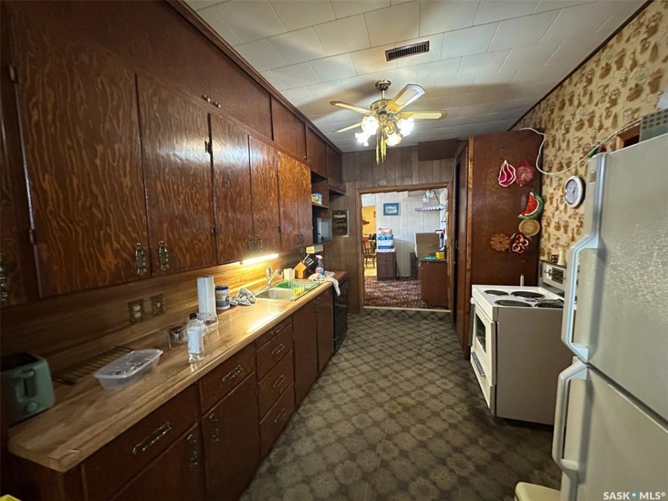Three lots. 2,150 sq ft. Former store turned 4-bedroom home in Fife Lake. It's got a newer gas furnace, shared well, septic, garage, and a big covered veranda. Everything's on one level and there's room here to make it into something great. Needs some love—but at this price point, that's part of the deal.