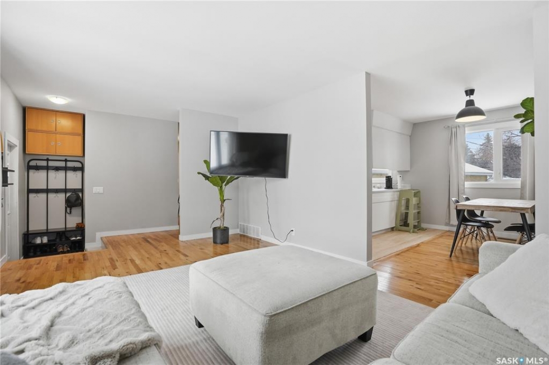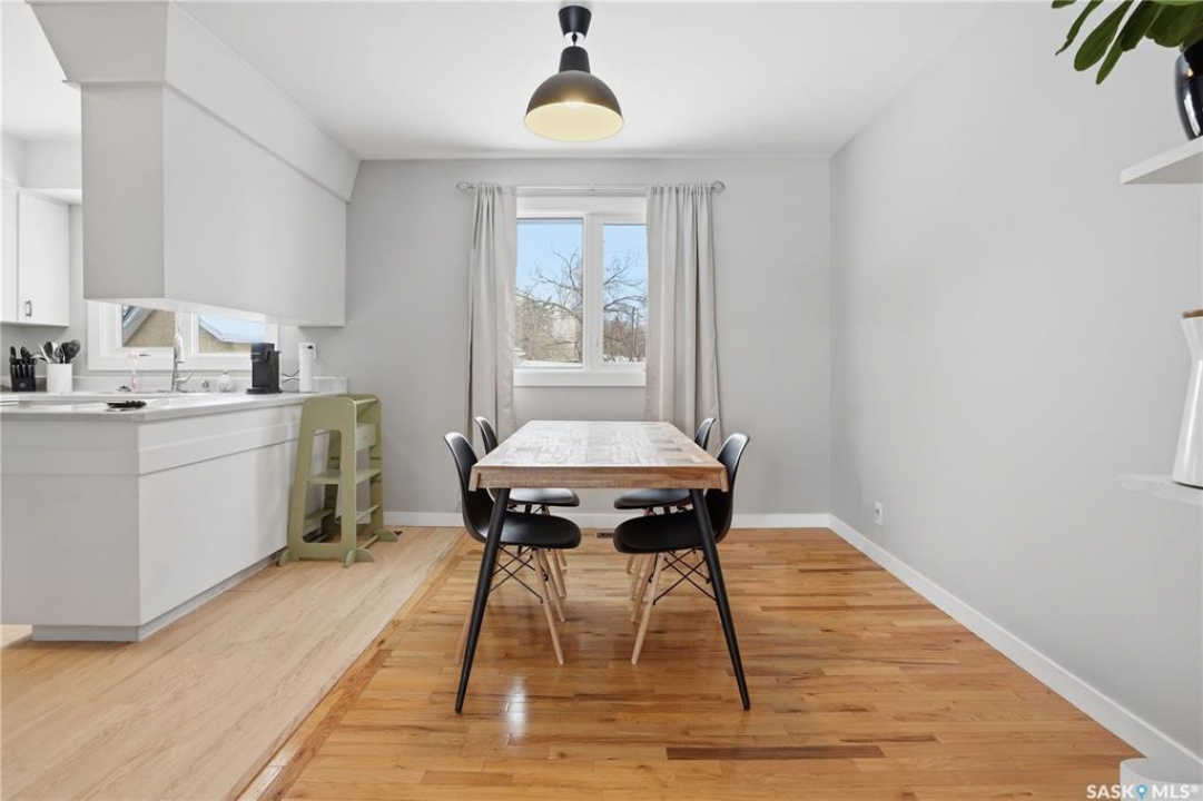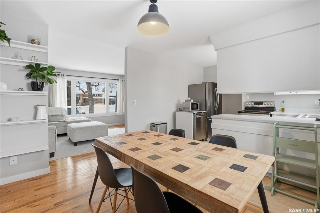 Location and quality are the two things you can't change about a property. This well-maintained 3 + 1 bedroom bungalow in the heart of River Heights offers both. Enjoy the peace of mind that comes with a home where the essential updates are already complete. With fresh paint throughout and newly updated kitchen flooring, this home successfully merges its original character with modern, functional finishes. The main floor is anchored by original hardwood and large picture windows that provide a clear view of the front deck and gorgeous sunsets. The kitchen is designed for efficiency, featuring stainless steel appliances and a layout that connects directly to a generous dining area which is ideal for both daily life and hosting. The main full 4 piece bathroom is updated with modern features. Generous sized primary bedroom with convenient 2 piece bathroom. The lower level adds extra living space, including a massive recreation room and a newly renovated 3 piece bathroom with modern black fixtures and 4th bedroom (window may not meet egress standards) For the practical homeowner, the dedicated laundry and utility area includes a substantial workspace for tools and projects. Just imagine the lifestyle advantage of a backyard that backs directly onto Caen Park. You have the privacy of no rear neighbors and immediate access to evening strolls. The yard is fully fenced, featuring multi-level garden beds and the rare benefit of double-alley access. Complete with high-efficiency furnace, tankless water heater and newer PVC windows, this is a solid investment in one of Regina's most desirable south-end neighborhoods. New shingles in 2021. Walking distance to Hill Avenue Shopping Centre, Elementary and High Schools, Wascana Park plus quick access to downtown Regina, YQR airport and the Regina ByPass.