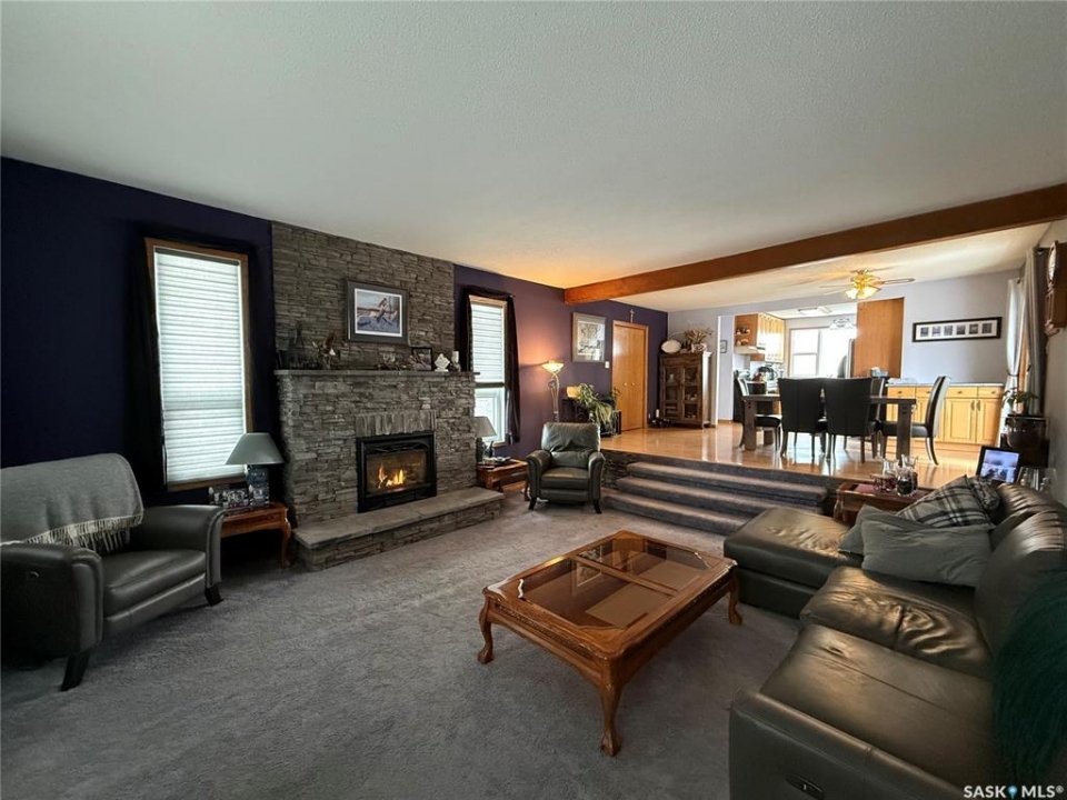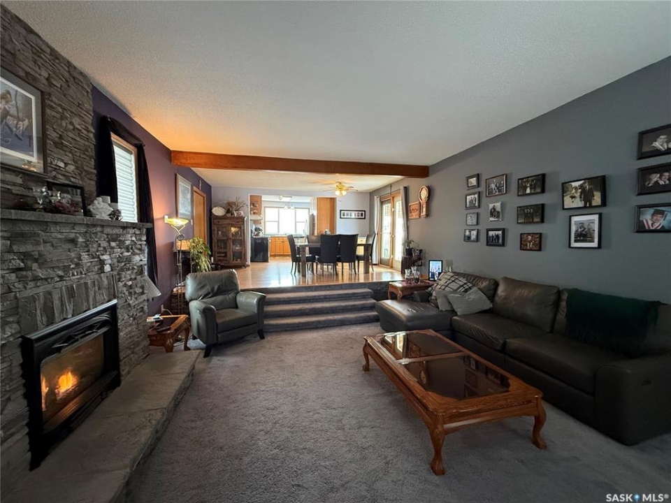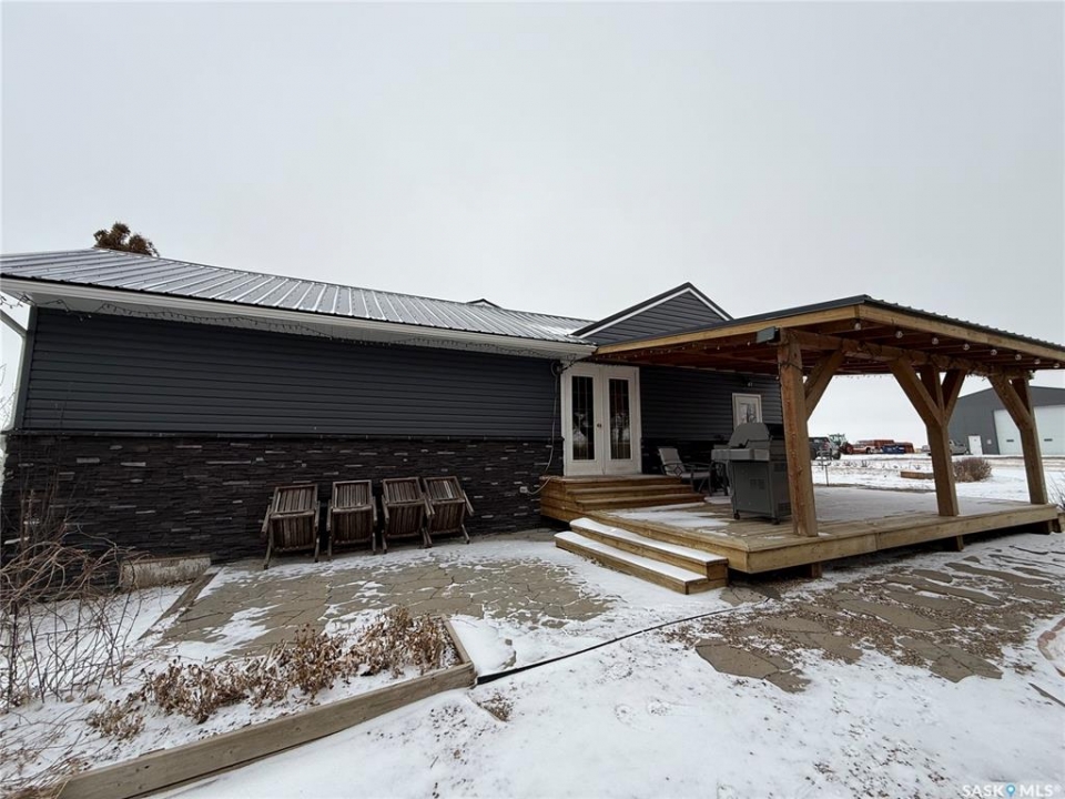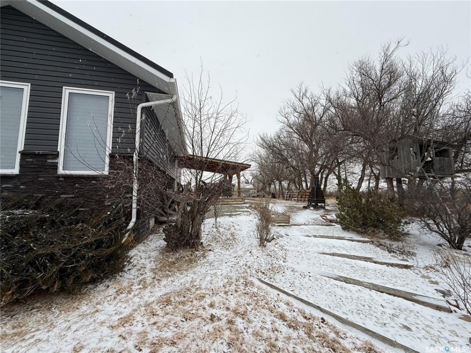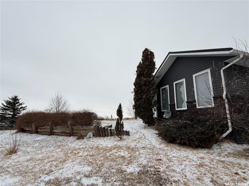 SE-04-25-20 W3 Space, Comfort & Functionality. Located just 4.5 miles south of Eston, this beautifully maintained acreage offers the perfect blend of space and rural charm. Featuring approx. 1,900 sq. ft. two-storey home (originally built in 1961 with a well-planned addition in 1998) Step inside to a large open-concept main floor that seamlessly connects the kitchen, dining, and living areas—perfect for everyday living and entertaining. The sunken living room is a cozy highlight, complete with a stunning stone radiant gas fireplace. The spacious dining area features garden doors that lead out to a covered deck, overlooking the beautifully landscaped yard. The main level also includes a useful bedroom (ideal as an office or den), a bright and versatile office/gym space filled with natural light, and a 4-piece bathroom with a jetted tub and tiled surround. Convenient access to the attached 30' x 30' double garage is also found on this level. Upstairs, you'll find three large bedrooms, including an expansive primary suite with windows on both sides and a walk-in closet. Most of the home has been upgraded with new triple-pane windows for improved efficiency and comfort. The basement offers even more functional space, including a family room, laundry/utility area, additional office space, and a 3-piece bathroom. Outside, the property truly shines. Enjoy the meticulously landscaped yard featuring stonework, tiered steps, mature trees, and a new covered deck. Additional features include: 44' x 76' heated shop with gas radiant heat, concrete floor, oil catch drain, and 24' x 18' power doors. The home has a metal roof and updated siding with stone accents. Cement patio area. Dugout located behind the shop. Large shed, barn, and greenhouse for added versatility .This is a rare opportunity to own a well-equipped acreage in a great location—offering space, privacy, and everything you need for country living.