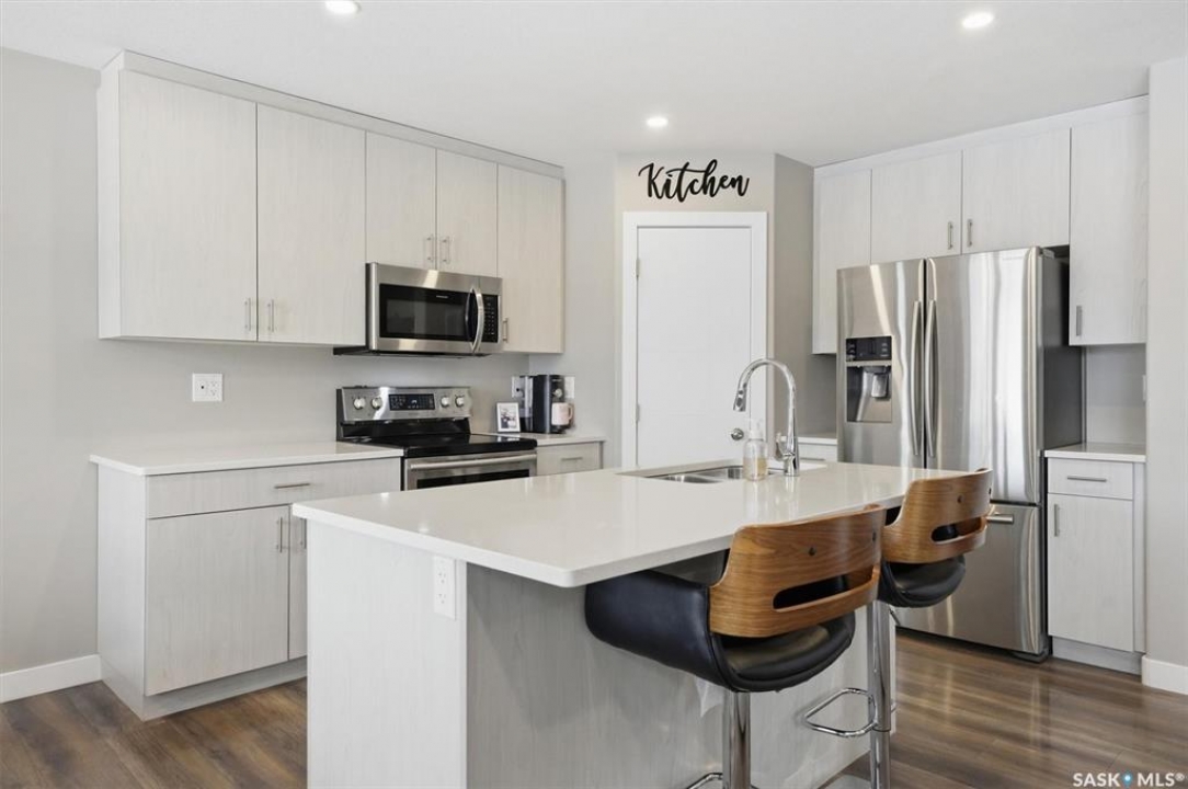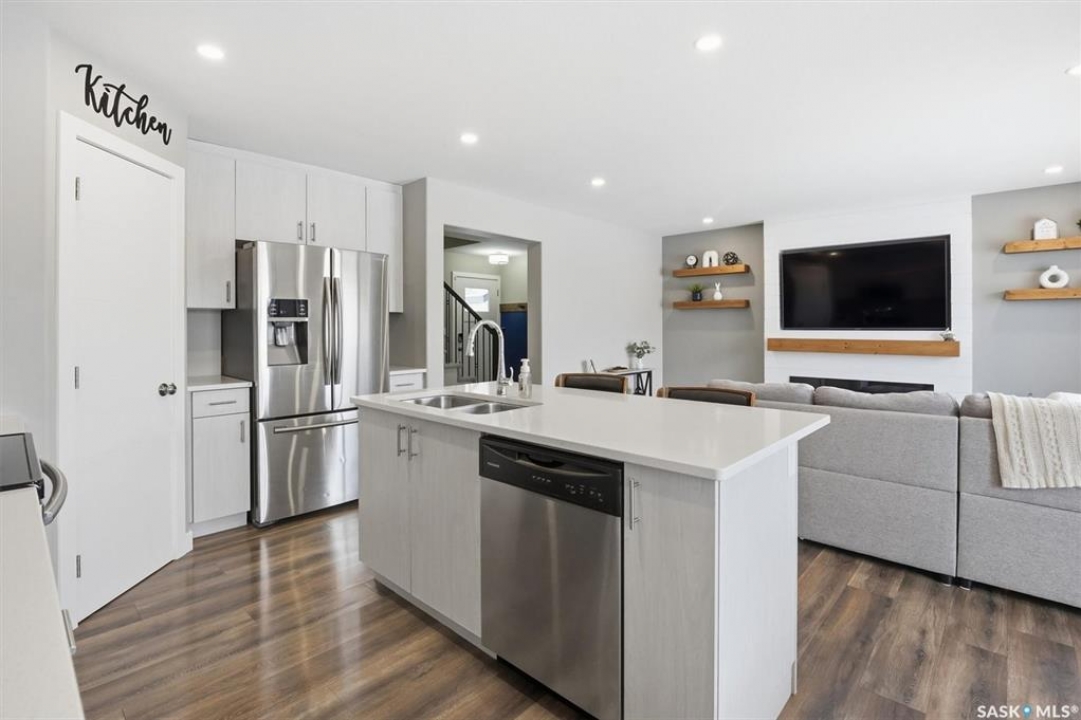 Welcome to 611 Ells Crescent in the desirable Kensington neighborhood! This beautifully designed 1,628 sq ft home by Ehrenburg Homes offers 3 bedrooms and 3 bathrooms, combining modern comfort with functional living. The main floor showcases a spacious open-concept layout, featuring a stylish kitchen with soft-close cabinetry, quartz countertops, and stainless steel appliances. The inviting living area is highlighted by a stunning feature fireplace wall—perfect for relaxing or entertaining. Upstairs, you'll find a generous bonus room, ideal for a family lounge, office, or play space, along with convenient second-floor laundry. The primary bedroom includes a walk-in closet and a full 4-piece ensuite, creating a private retreat. Additional highlights include central air conditioning, a fully developed yard with durable vinyl fencing, Underground sprinklers(Front yard) and a heated double attached garage. Located close to shopping, groceries, public transit, and other amenities, this home offers both comfort and convenience. Buyer and buyer's agent to verify all measurements. Book your showing today!