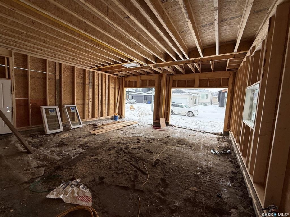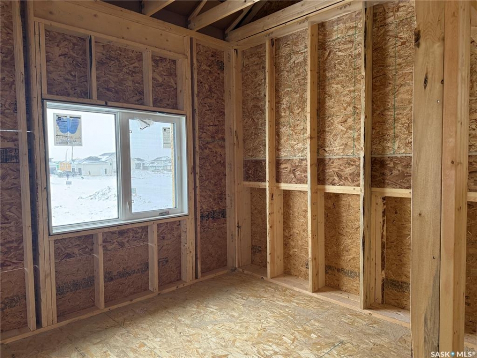 Just Framed. This brand new modified bi-level by Taj Homes is going to be a stunner. Ideally located in The Legends Neighbourhood of Warman, this location has it all - close to parks, amenities and quick access to saskatoon. The list of upgrades is long and include a spacious insulated double garage, oversized triple pane ALL WEATHER windows, Taiga Curate LVP throughout the home and $1500 lighting credit so you can design your new home. Quartz countertops, Tall 10ft ceilings throughout the main floor with 9ft basement, ceiling height cabinetry, and a double car concrete driveway are just some of the notable items. The main floor features 2 bedrooms, a full 4 piece bathroom, a dedicated bright laundry room and an open concept kitchen/dining/living space with numerous large windows. Upstairs you'll be greeted by large double doors as you enter the primary bedroom complete with a walk-in closet, spacious 5 pc ensuite bathroom and with that south facing sunlight. You'll continue to be impressed by the large, bright basement family room which is open to development (contact for basement pricing). Some notable features include a on demand water heater, energy efficient furnace, All Weather Triple Pane windows, full set of stainless steel appliances, black trims and fixtures and Progressive New Home Warranty. Currently under construction, this home comes with a guaranteed possession date so you can plan your move with confidence—no delays, no surprises. Possible May-June possession. Come today and customize your new home by selecting from a range of color palettes and finishes to match your personal style. NOTE FRONT ELEVATION PICTURE IS AI GENERATED, FINAL COLOUR MAY VARY.