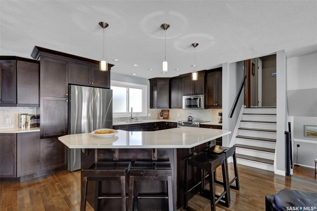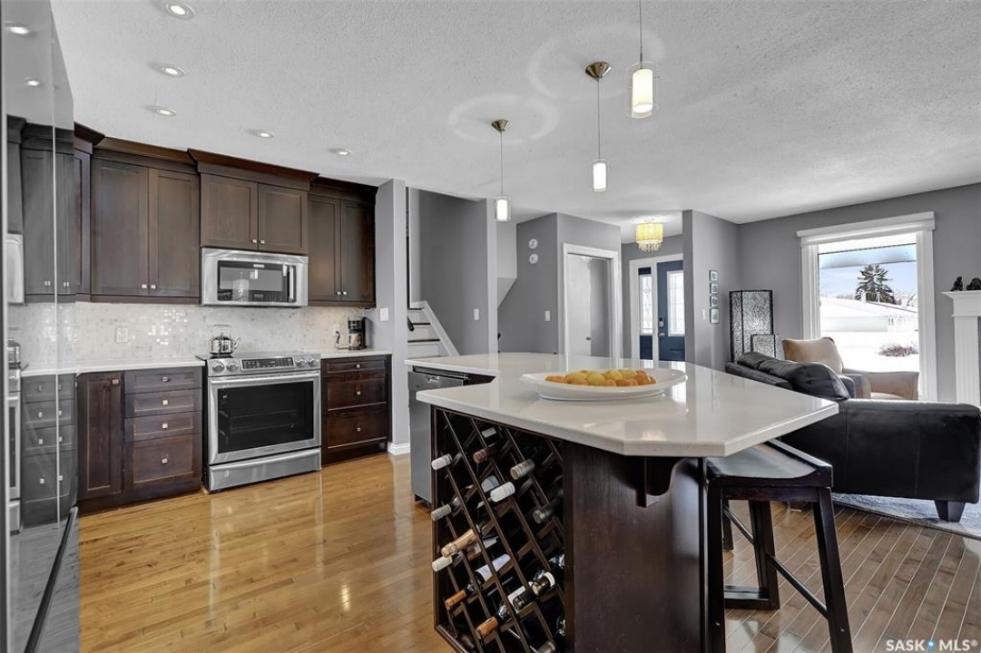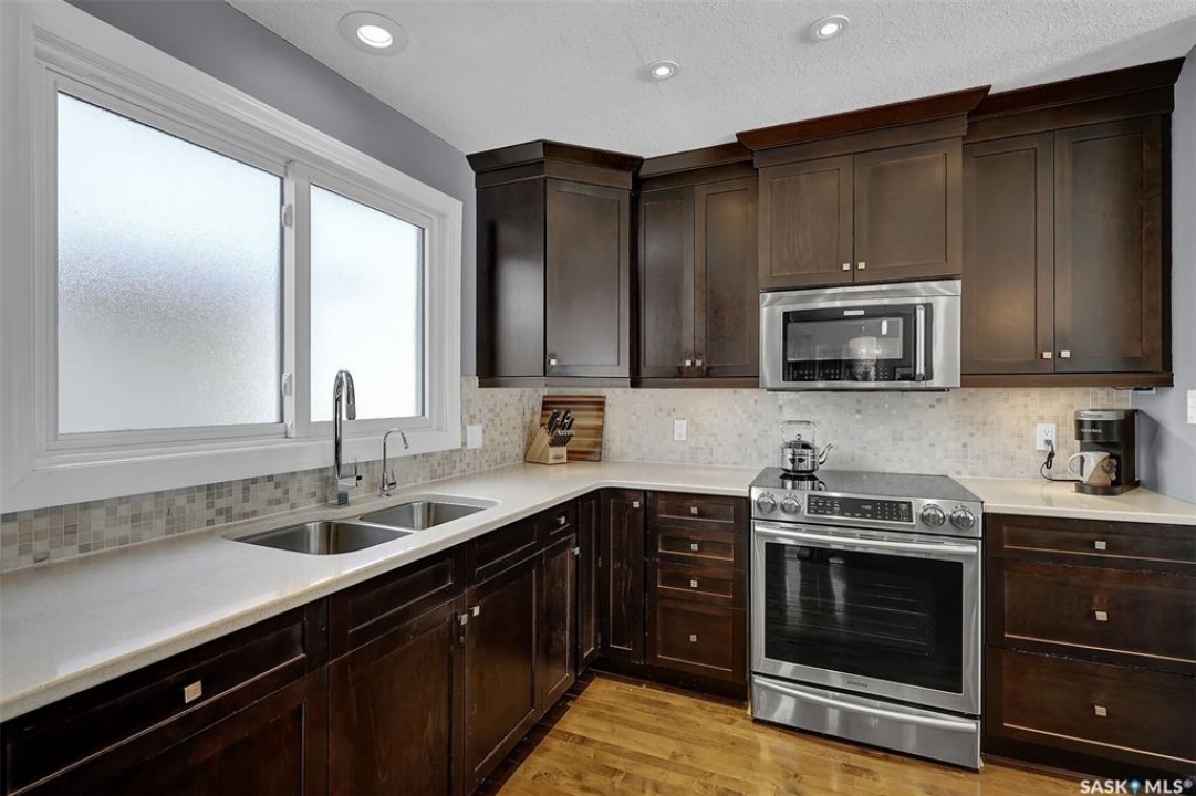 Welcome to this well-maintained family home in desirable Coronation Park, ideally situated on a corner lot facing green space and just steps from parks and amenities. Offering 1,794 sq. ft., this home features three bedrooms on the upper level, an additional bedroom on the third level, and two bathrooms—providing excellent space for a growing family. Proudly owned by the original owners, this home has been thoughtfully updated and meticulously cared for over the years. The kitchen was renovated in 2008 and showcases quality cabinetry that extends into the dining area, complemented by quartz countertops, under-cabinet lighting, pot lights, and soft-close doors and drawers. The kitchen is further enhanced by a newer refrigerator (2025) and an induction cooktop. The main floor offers a bright, open-concept layout featuring rich dark maple hardwood flooring, a spacious living room with a gas fireplace, and seamless flow into the dining area. Off the dining room, you'll find a beautiful four-season sunroom addition with southwest exposure—perfect for year-round enjoyment—with both forced air heating and electric in-floor heat. The third level is warm and inviting with large south-facing windows that fill the space with natural light. This level includes a comfortable family room, a generous office with impressive 10-foot ceilings, a well-sized bedroom, and a three-piece bathroom. The lower-level rec room provides a versatile space ideal for children, entertaining, or movie nights. The garage is a standout feature—measuring approximately 25 feet deep and widening to 30 feet at the front—making it ideal for parking and a dedicated workshop area. The garage is fully insulated and heated with radiant heat. The outdoor space is equally appealing with a louvered roof gazebo set on patio pavers, along with a paver stone driveway for added curb appeal. Additional updates include: shingles (2012) and double-pane argon-filled windows (updated prior to that).