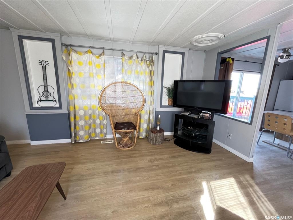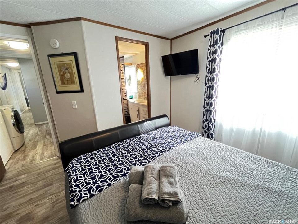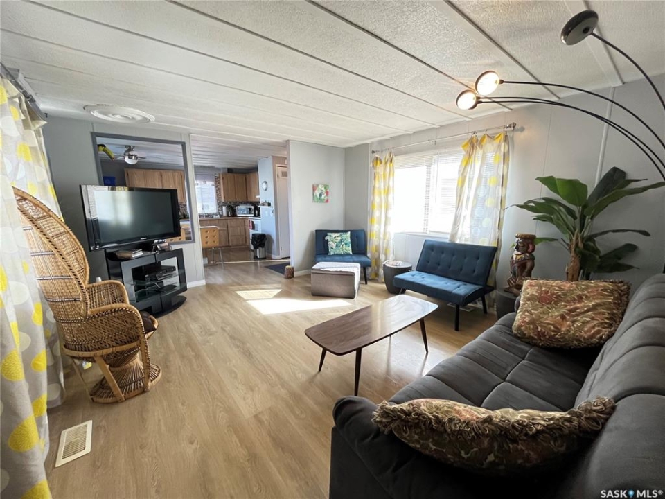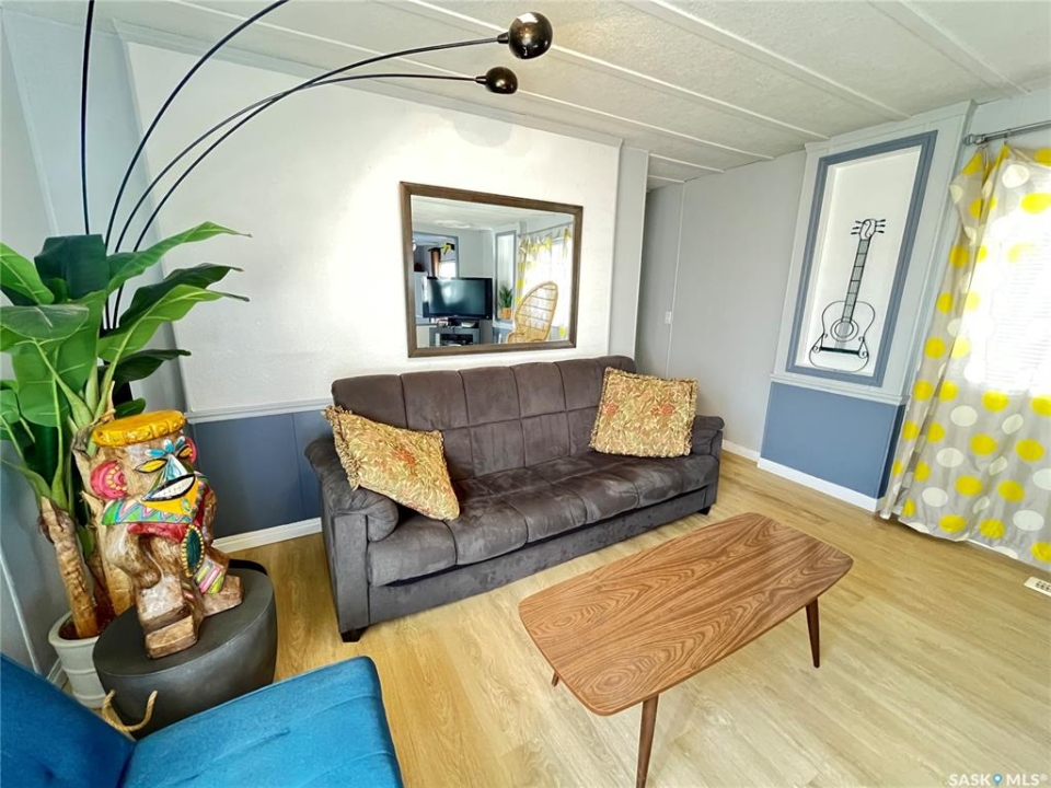 The Tiki Trailer and all its charm could be yours. Selling fully furnished and fully equipped making the move-in so simple. Located on the north side of the Cypress Mobile Home Park, just 1 km south of Maple Creek and a 5 minute walk from Grotto Gardens. Enjoy evenings on the massive east deck or put a chair out on the Juliette balcony just off the kitchen to gaze at the prairie sunsets. Just off the kitchen this balcony is large enough for the BBQ as well. 3 bedrooms and a large updated bathroom makes this home large enough for the whole family or you and guests. All beds are high quality memory foam; 2 are extra long twin mattresses and the primary bedroom currently houses a queen bed but there is plenty of room for a king size bed if that is your preference. One could use it as a revenue property as has been its previous use. Utilities average approximately $100 per month for each (gas and electric) and the monthly park fees are $430 covering water, sewer, garbage and recycling. Call for a tour.