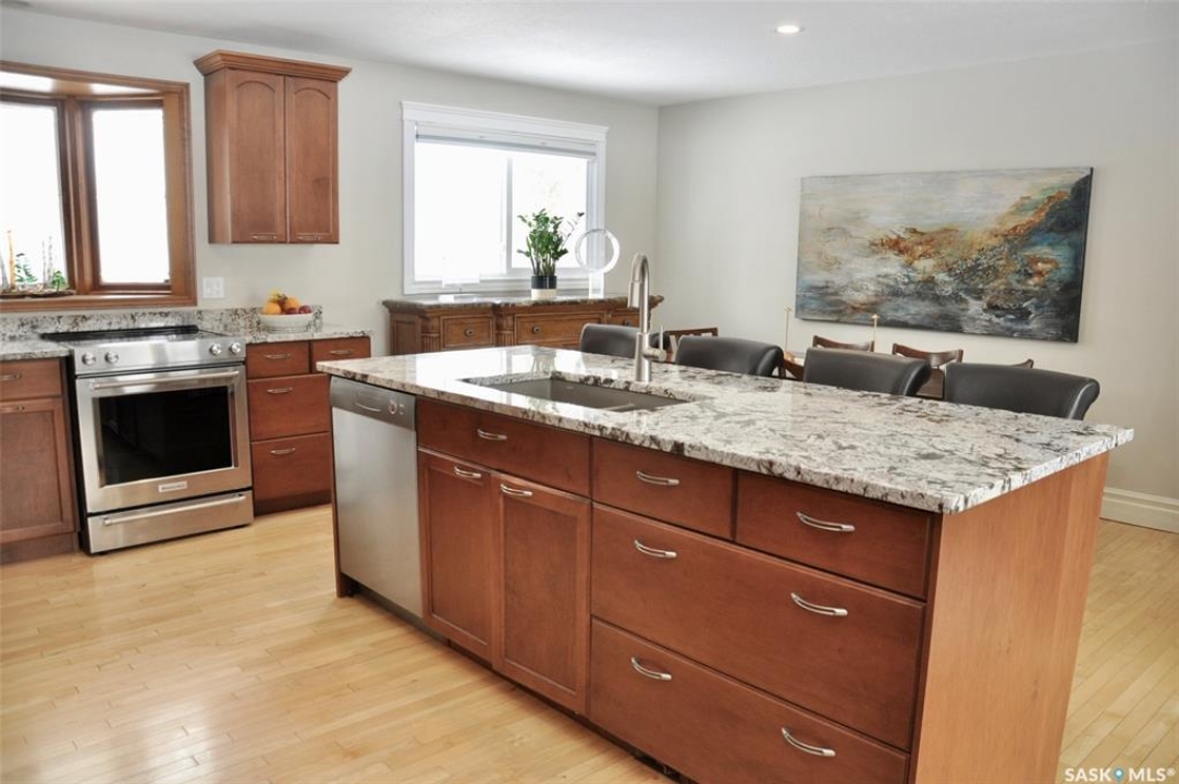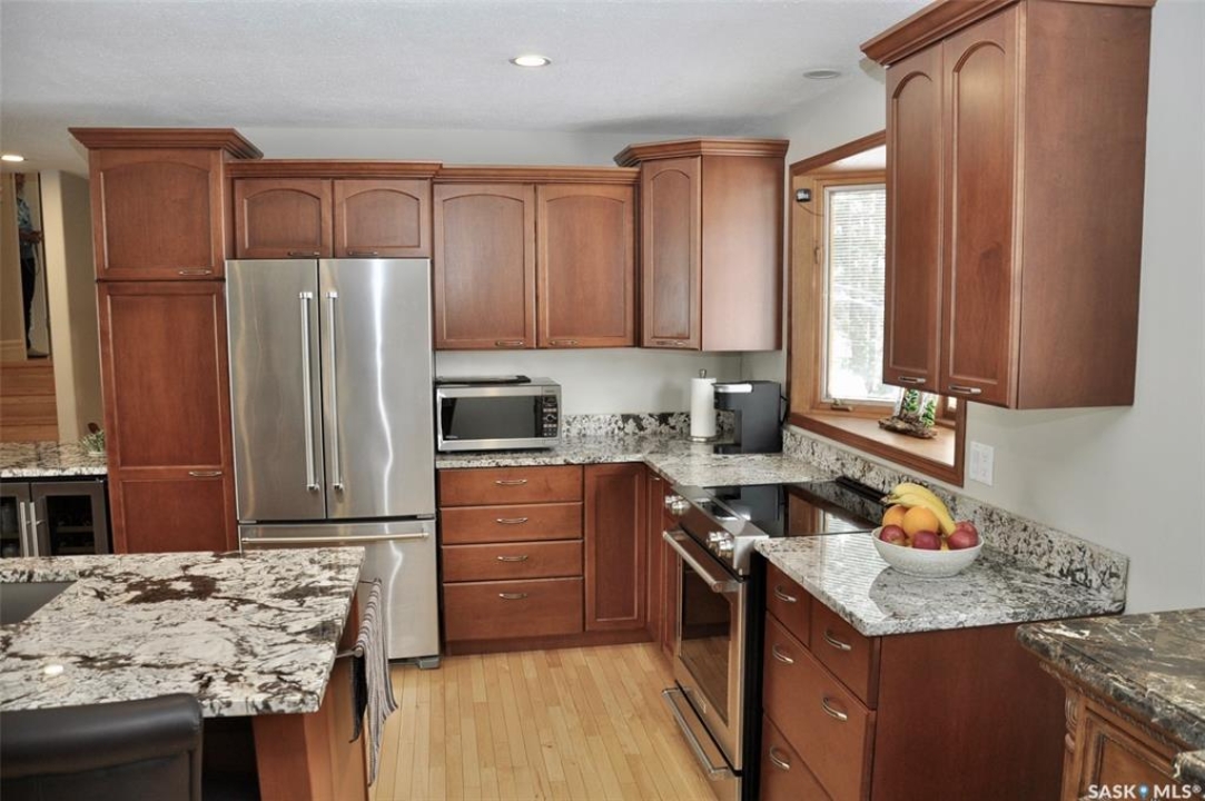 Terrific location on quiet cul de sac in West College Park close to both elementary schools and Evan Hardy Collegiate. This home sits on a rare 74' X 145' lot has only seen two owners and has been extremely well maintained and upgraded over the years with newer triple pane windows thru out most of the home, awesome kitchen with an open floor plan with huge island with granite counter tops, including stainless steel appliance and beverage fridge, hardwood floors plus mudroom off back entry. The upper level has three good size bedrooms all with hardwood flooring, upgraded bathroom with tile floors and oversize tub, walk in closet in primary bedroom with cheater door to bathroom. The third level features a cozy family room over looking lower level games room, fourth bedroom , renovated three piece bathroom. The fourth level is a games room currently set up as and exercise area open to the third level , laundry room in ample storage room . This home has a private parklike yard with a great deck for entertaining, R.V. parking, storage shed ,double attached garage and room to park 6 vehicles on the driveway. Other notable upgrades include James Hardie Board siding on the front, newer entry door and garage door, high end trim package including crown moulding and so much more. Call your Realtor for a private tour of this execptional home today before its gone!