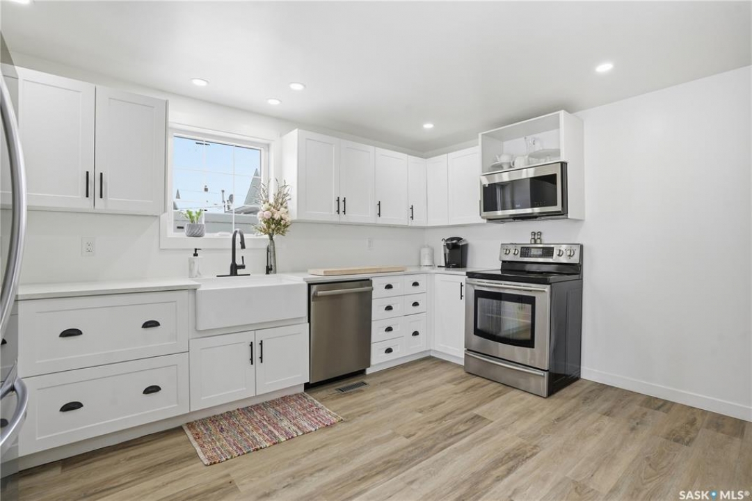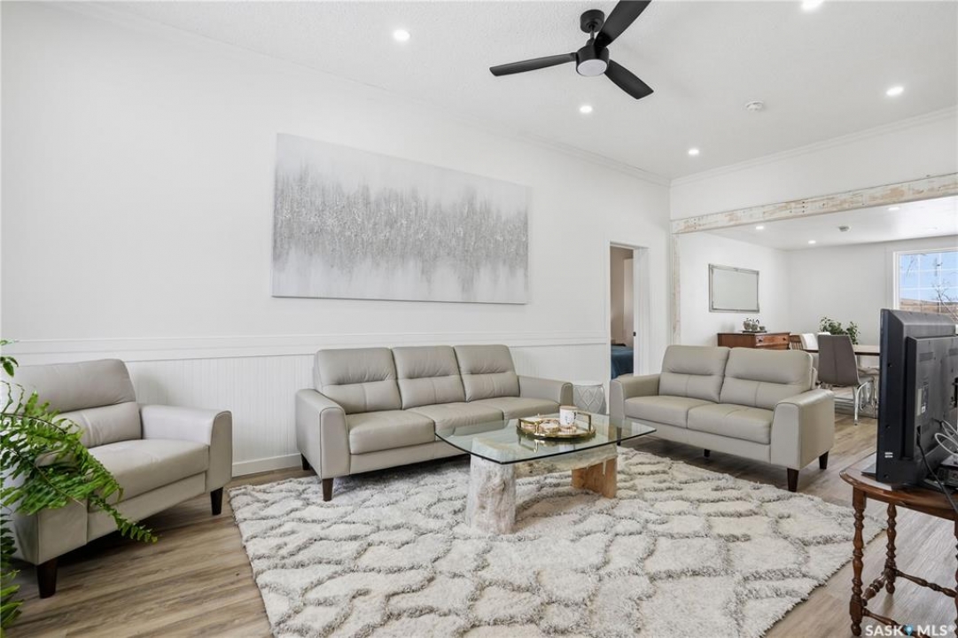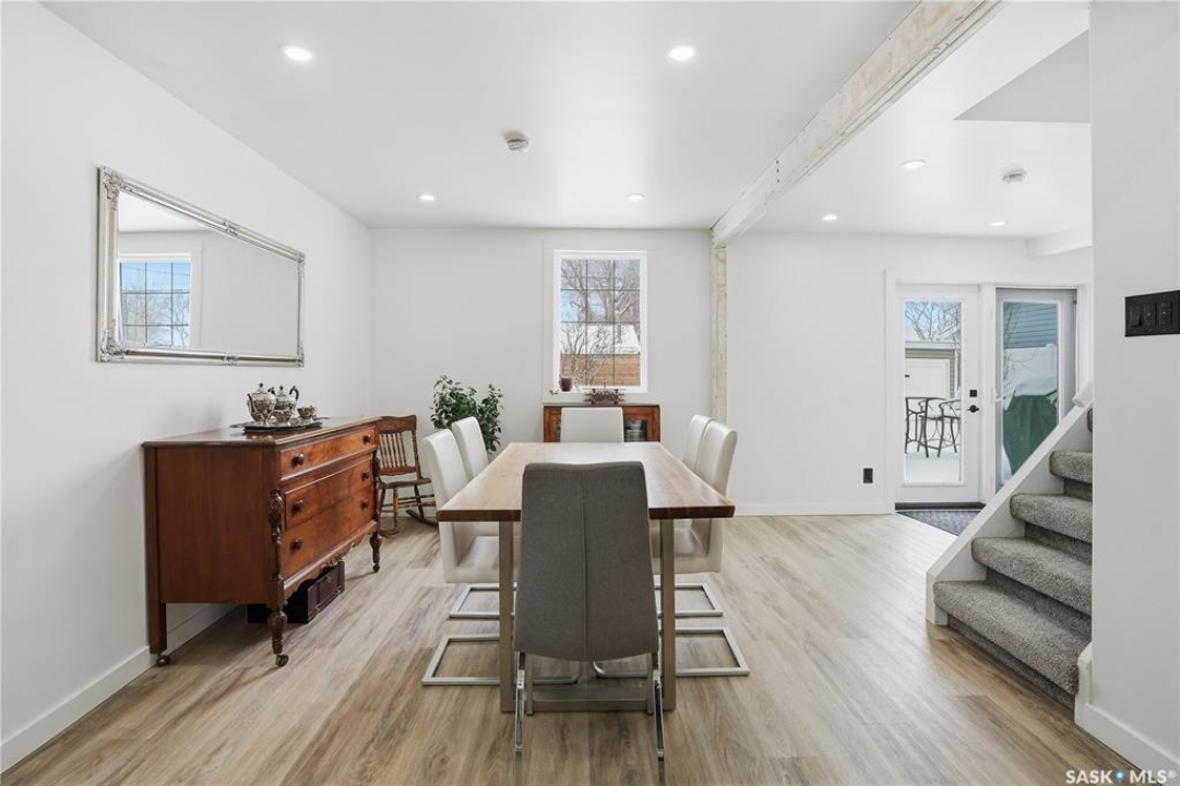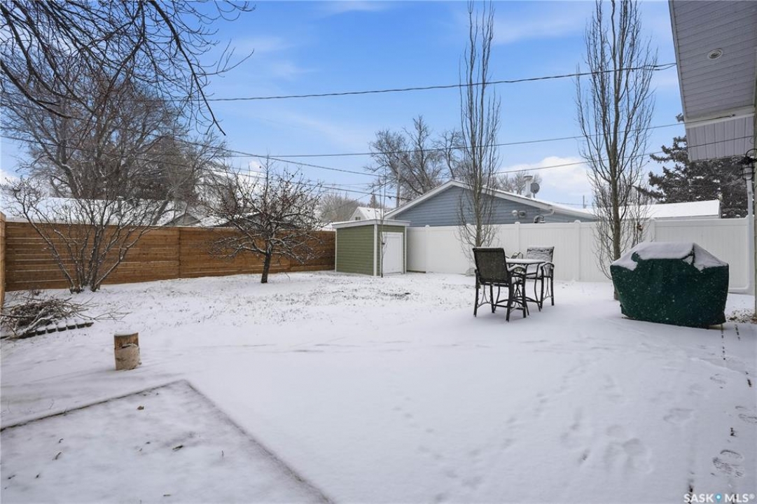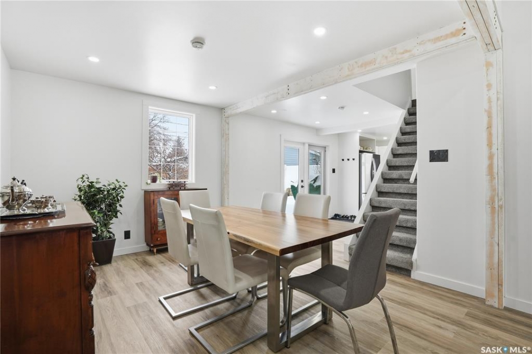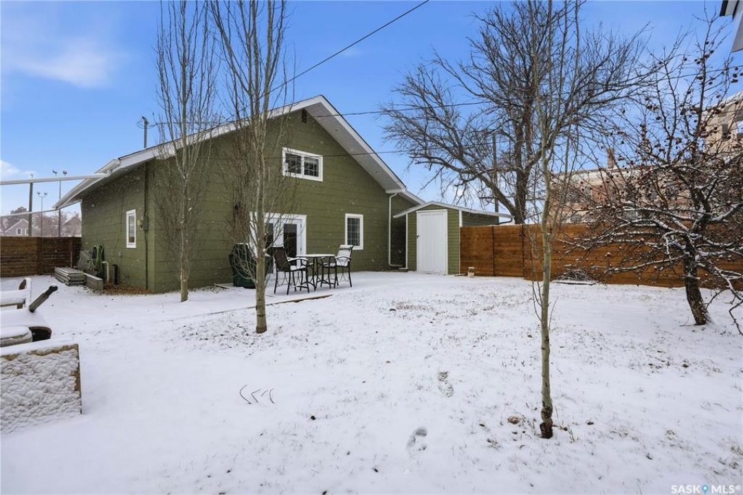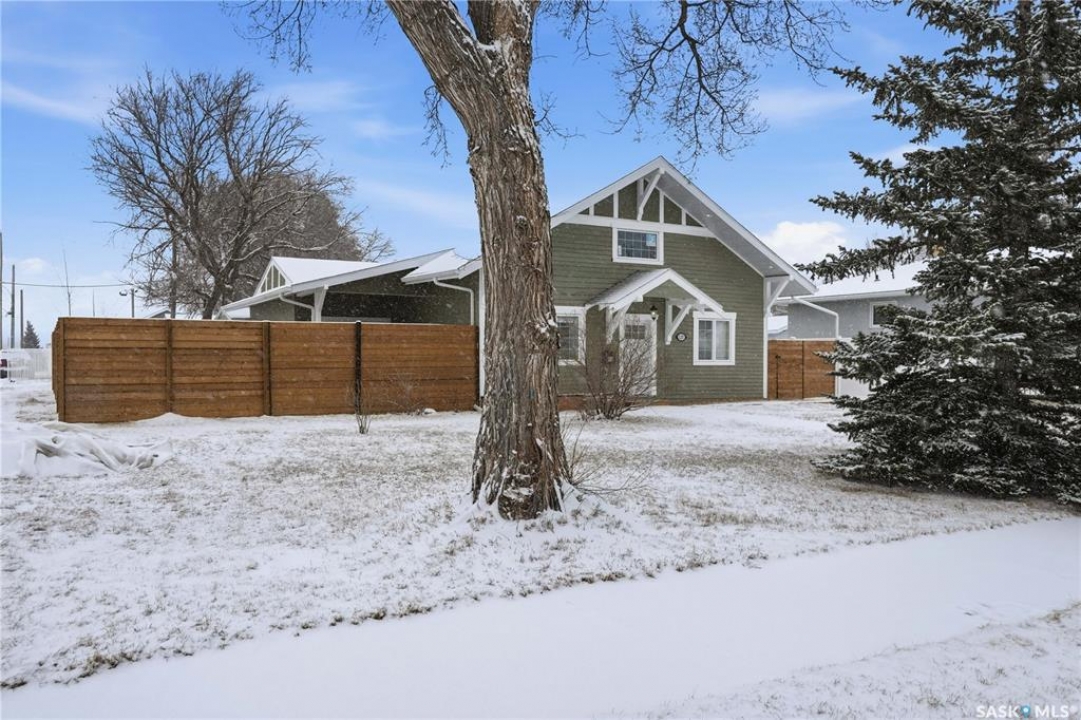 Are you looking for a beautifully updated character home? This home is situated on a large corner lot right across the street from Ross School in a nice quiet neighborhood. Excellent curb appeal as you arrive! Heading inside you are greeted by a large foyer with arched doorways adding some charm. Heading into the spacious living area showcasing 10' high ceilings and new flooring that runs throughout the main floor. Heading back to the formal dining space you will love the character of the whitewashed beams and patio doors leading out to your deck! Next we find a spacious kitchen complete with new white cupboards, quartz countertops with a stunning farm house sink and a 4 piece stainless steel appliance package! Down the hall we find an updated 4 piece bath with a beautifully tiled tub surround as well as a spacious bedroom. Finishing off the main floor we have a spacious primary bedroom with a large closet and garden doors leading to a private & covered deck - which is sure to be your favorite spot for your morning coffee. Heading upstairs we find a third bedroom and a playroom which could easily be an office if you would like. In the partial basement we find the laundry, utility space and some storage. Outside we find a fully fenced yard, an apple tree, lilac bushes, 2 sheds and a gravel parking pad for 3 cars. Lots of updates in the last couple years - new shingles, soffit, fascia and eaves with gutter guards, windows and exterior doors, kitchen and bathroom updates and a refresh throughout the home. Lots of value here! If you are looking for a place that feels like home - look no further! Reach out today to book your showing.