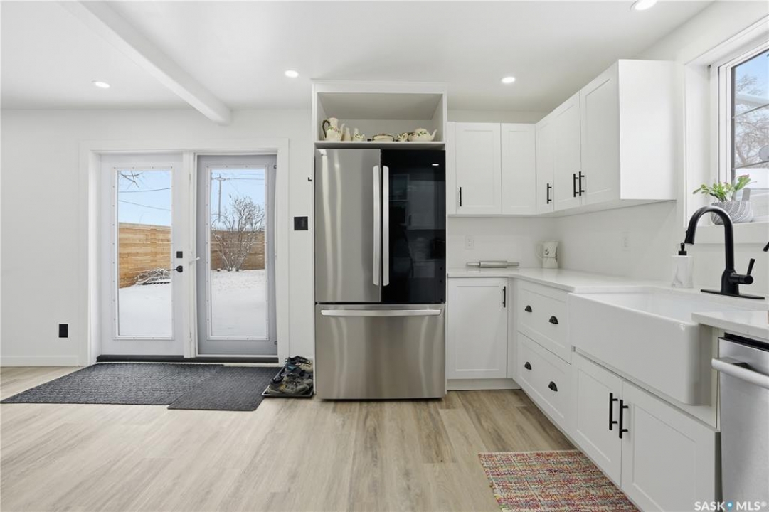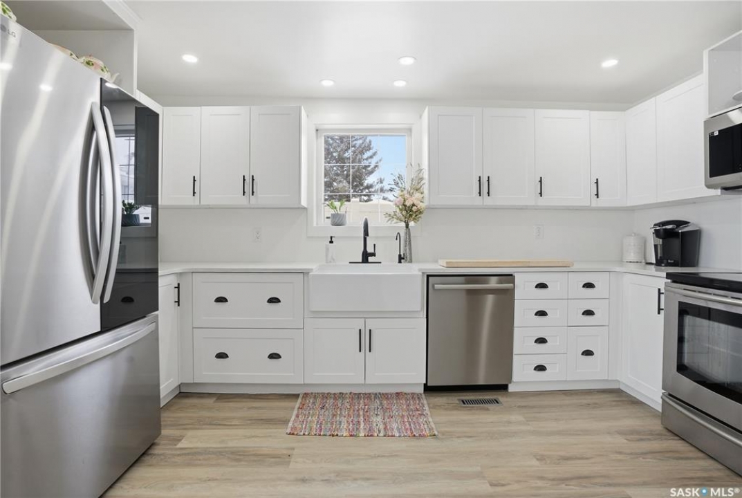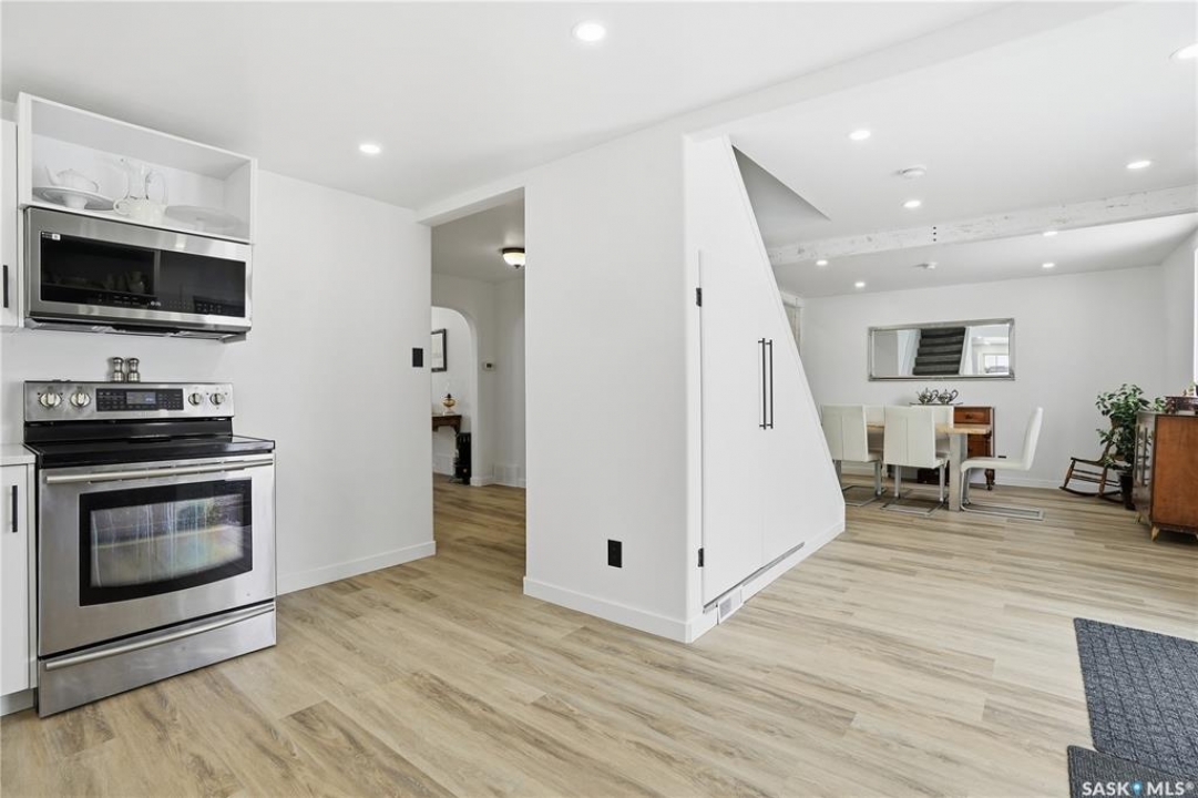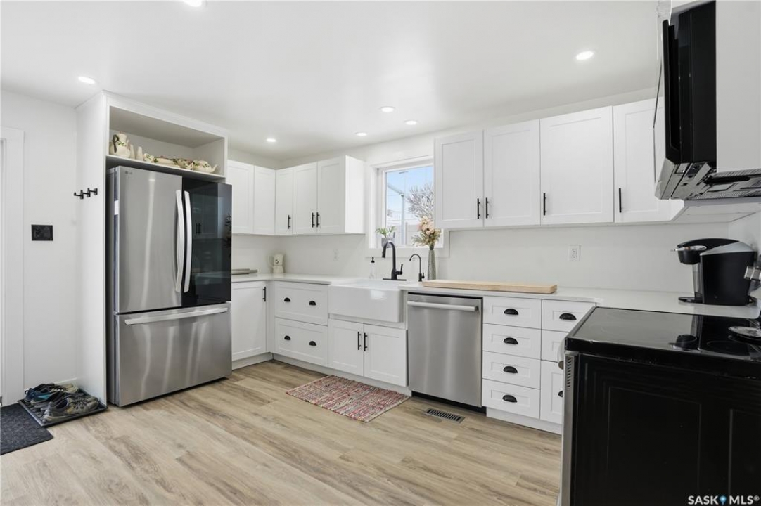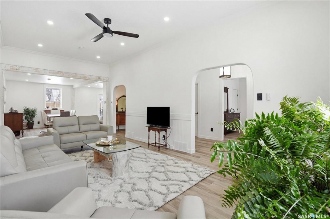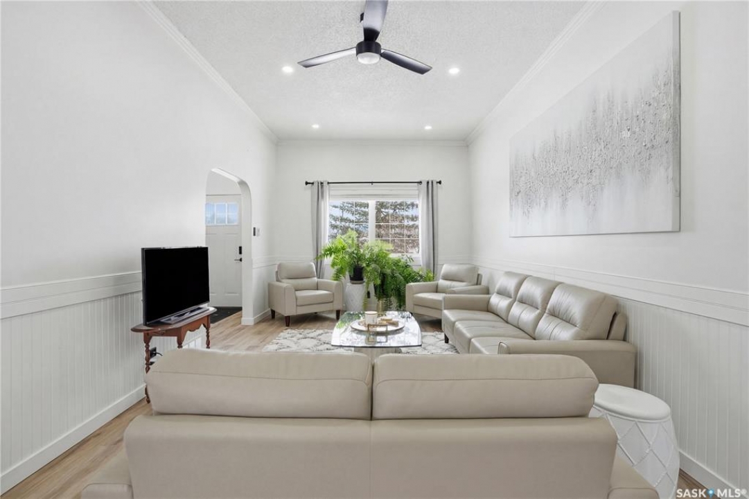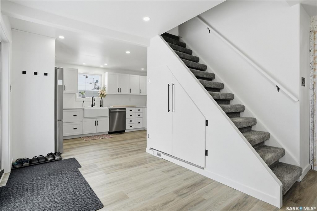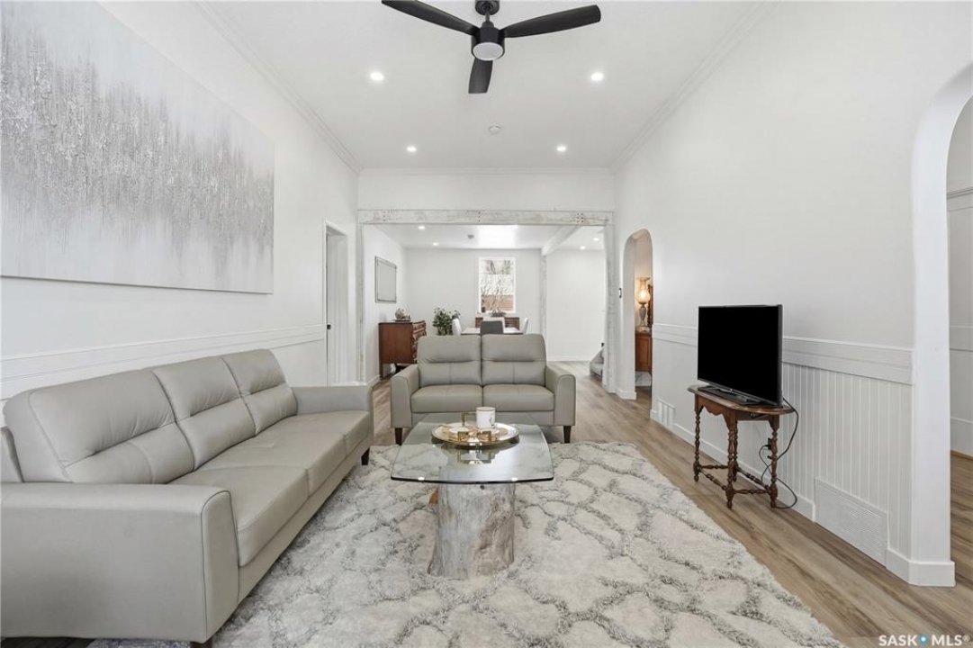 Are you looking for a beautifully updated character home? This home is situated on a large corner lot right across the street from Ross School in a nice quiet neighborhood. Excellent curb appeal as you arrive! Heading inside you are greeted by a large foyer with arched doorways adding some charm. Heading into the spacious living area showcasing 10' high ceilings and new flooring that runs throughout the main floor. Heading back to the formal dining space you will love the character of the whitewashed beams and patio doors leading out to your deck! Next we find a spacious kitchen complete with new white cupboards, quartz countertops with a stunning farm house sink and a 4 piece stainless steel appliance package! Down the hall we find an updated 4 piece bath with a beautifully tiled tub surround as well as a spacious bedroom. Finishing off the main floor we have a spacious primary bedroom with a large closet and garden doors leading to a private & covered deck - which is sure to be your favorite spot for your morning coffee. Heading upstairs we find a third bedroom and a playroom which could easily be an office if you would like. In the partial basement we find the laundry, utility space and some storage. Outside we find a fully fenced yard, an apple tree, lilac bushes, 2 sheds and a gravel parking pad for 3 cars. Lots of updates in the last couple years - new shingles, soffit, fascia and eaves with gutter guards, windows and exterior doors, kitchen and bathroom updates and a refresh throughout the home. Lots of value here! If you are looking for a place that feels like home - look no further! Reach out today to book your showing.