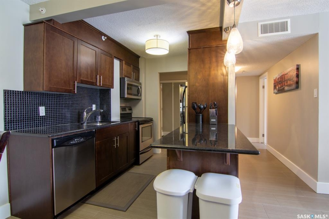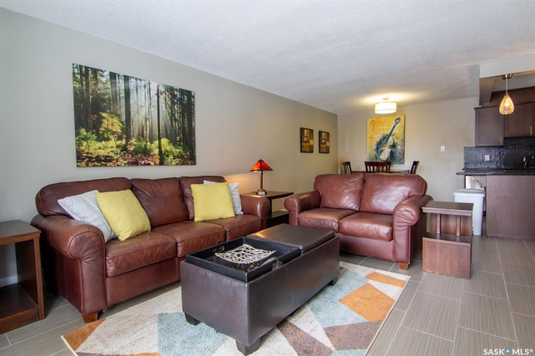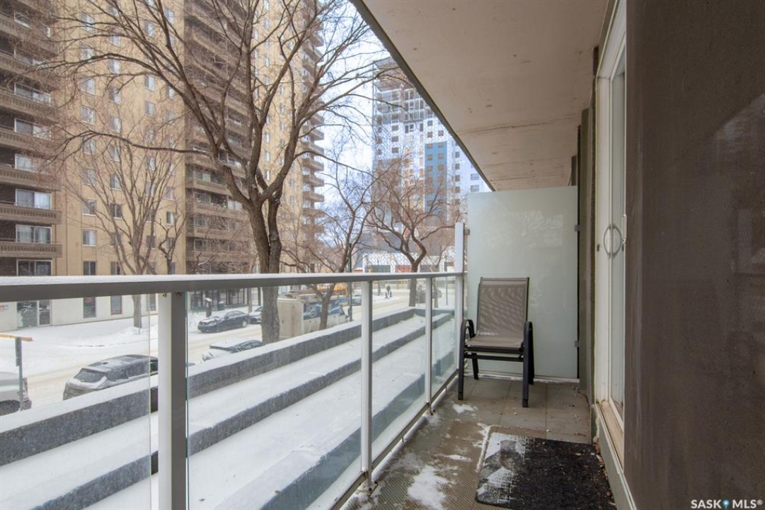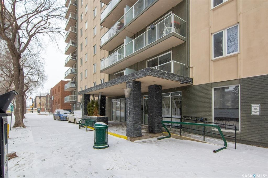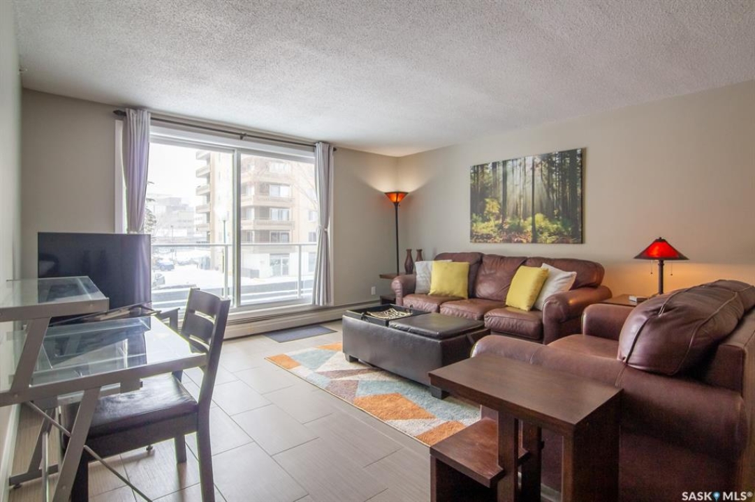 Nicely updated & fully furnished 2-bedroom condo in the heart of downtown Saskatoon! This open-concept home is perfectly situated within walking distance of the University of Saskatchewan, downtown restaurants, Kinsmen Park, Meewasin Trail, and the soon-to-be-completed downtown central library. The concrete building offers excellent amenities, including two rooftop patios with river and downtown views, a renovated fitness center, and an updated amenities room. Unit comes with one surface parking stall, central air, in-suite laundry/ storage, and a large west-facing balcony off the living room. Condo fees cover all utilities, including electricity, heat, water, and sewer. Pets are welcome with board approval. Don't miss this opportunity to own a move-in-ready condo in Saskatoon's vibrant downtown core!