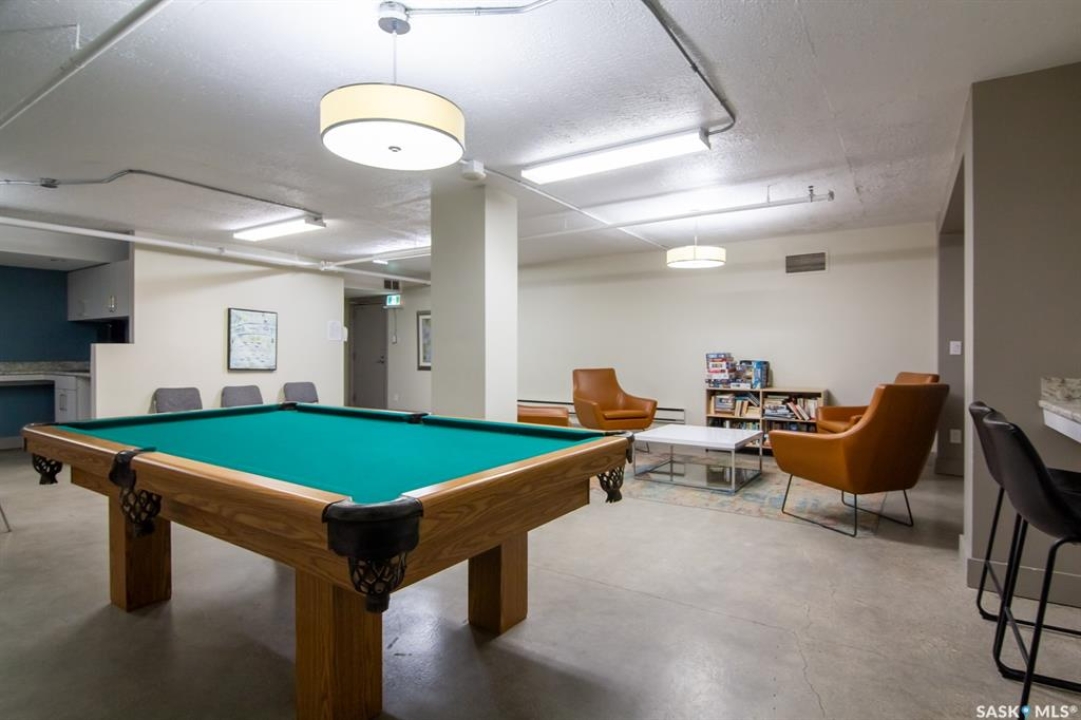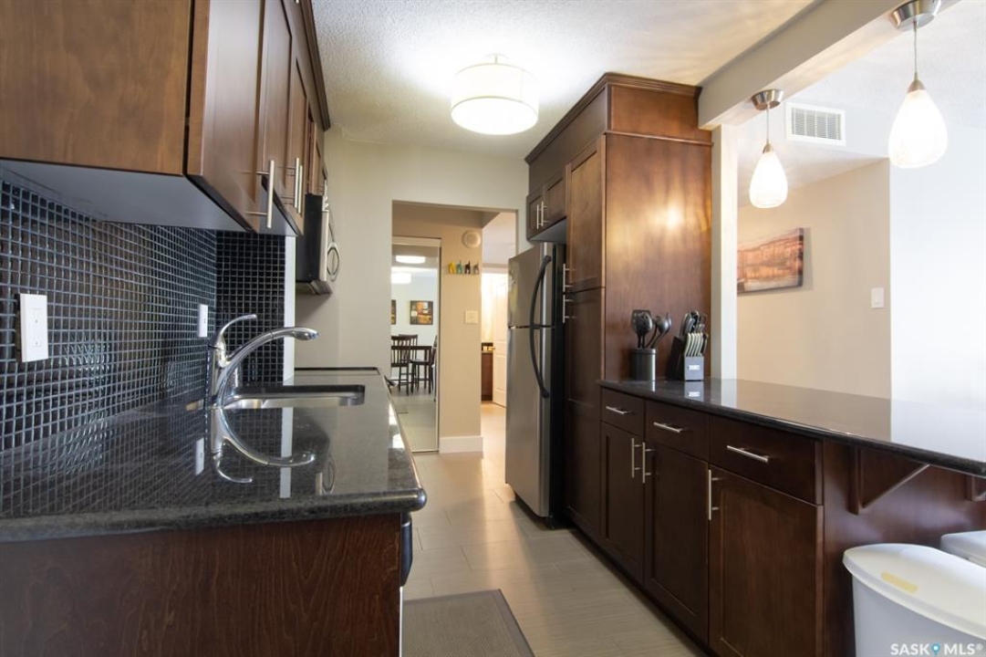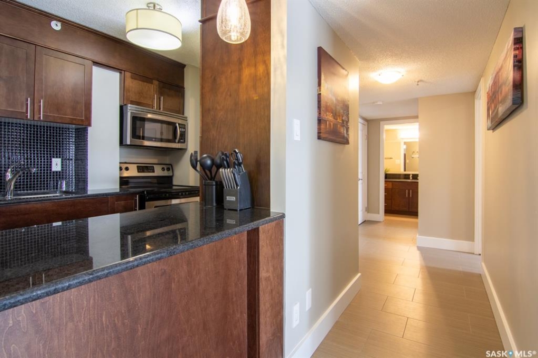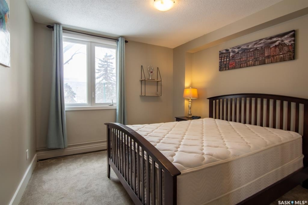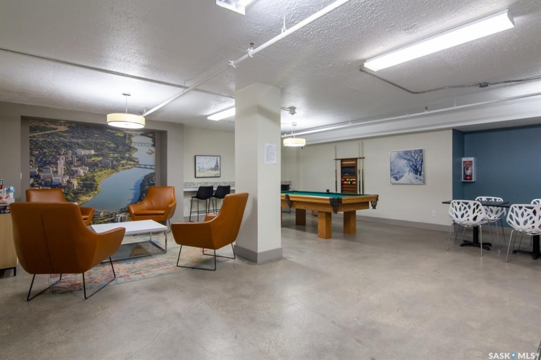 Nicely updated & fully furnished 2-bedroom condo in the heart of downtown Saskatoon! This open-concept home is perfectly situated within walking distance of the University of Saskatchewan, downtown restaurants, Kinsmen Park, Meewasin Trail, and the soon-to-be-completed downtown central library. The concrete building offers excellent amenities, including two rooftop patios with river and downtown views, a renovated fitness center, and an updated amenities room. Unit comes with one surface parking stall, central air, in-suite laundry/ storage, and a large west-facing balcony off the living room. Condo fees cover all utilities, including electricity, heat, water, and sewer. Pets are welcome with board approval. Don't miss this opportunity to own a move-in-ready condo in Saskatoon's vibrant downtown core!