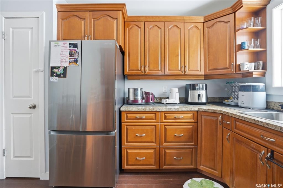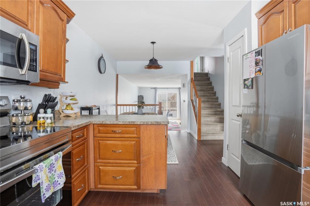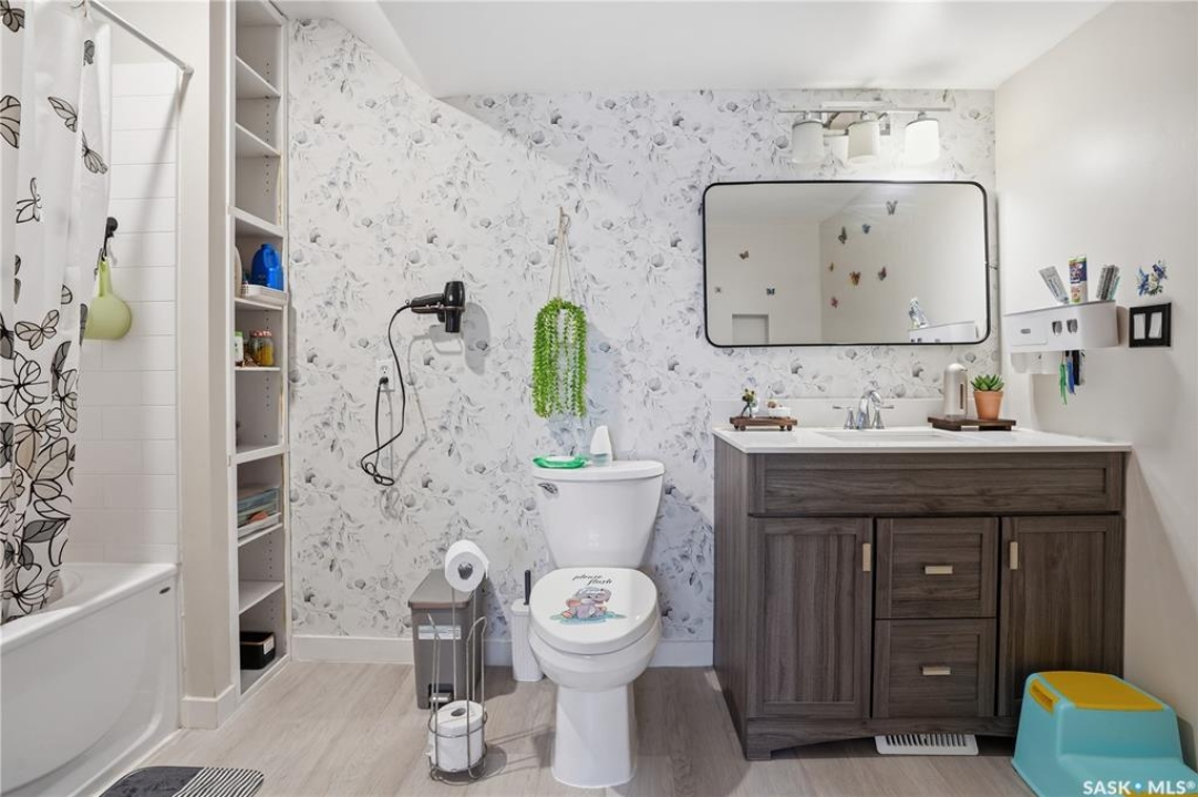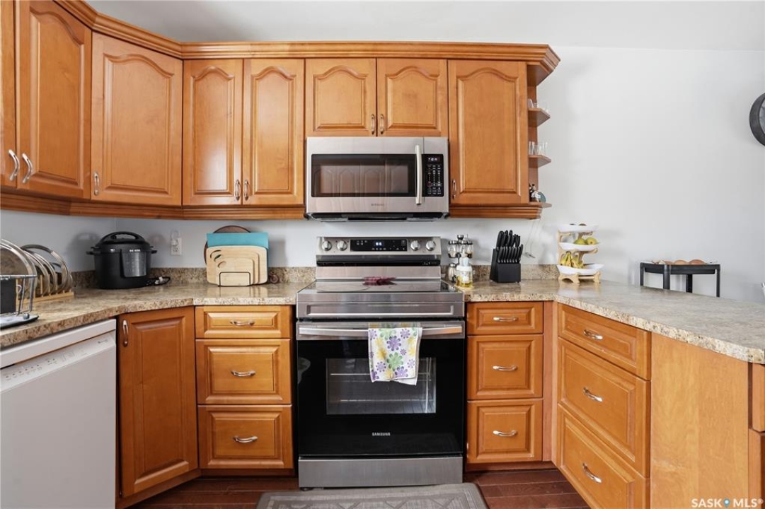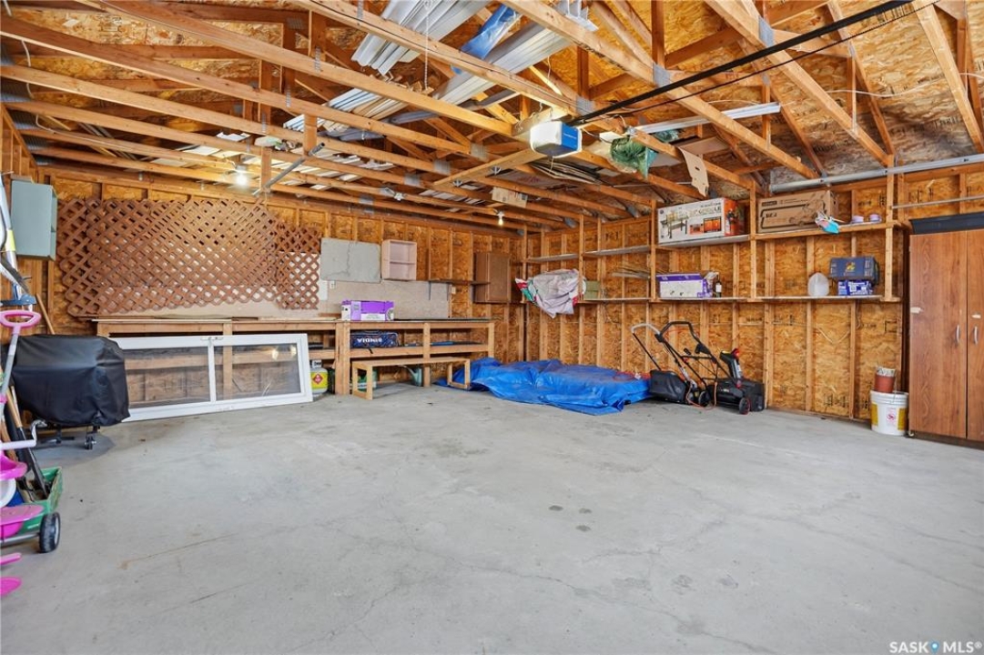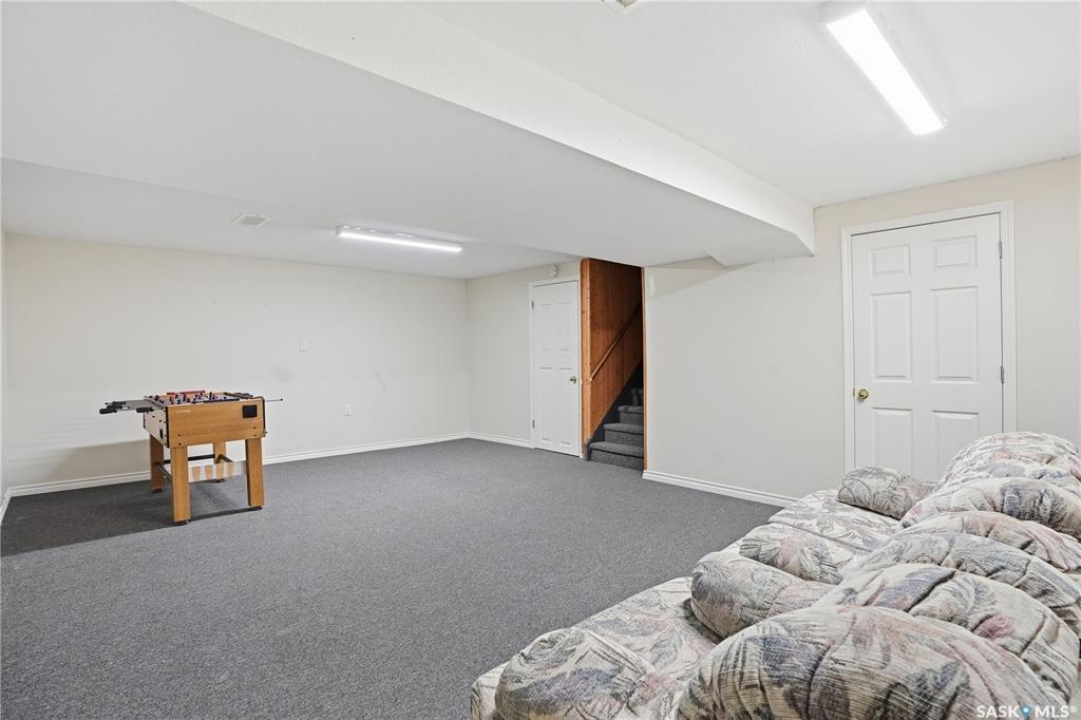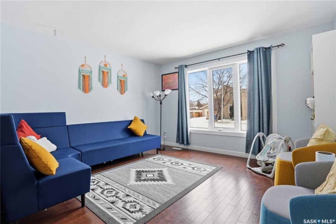 Move-in ready, updated, and ideally located in Regina's Northwest — just minutes from schools, parks, and everyday amenities. This spacious home offers a functional layout with multiple living areas. The main floor features a bright living room, a well-appointed kitchen with ample cabinetry, counter space, and stainless steel appliances — refrigerator (2021), stove (2021), and dishwasher (2024), Microwave plus a convenient dining nook. A sunken family room opens to the private deck and yard, perfect for relaxing or entertaining. The main floor also includes a primary bedroom with a renovated ensuite in modern tones. Upstairs offers three additional bedrooms, including a second primary with a walk-in closet and easy access to the 4-piece bathroom. Recent updates include triple pane PVC windows, new exterior doors(2022), furnace & A/C (2022), recently replaced house shingles, and garage shingles (2025) — adding efficiency and value. The basement features a rec room, laundry, and excellent storage space. Outside, enjoy a private yard with deck, green space, and an oversized double detached garage. A great opportunity to own a well-updated home in a family-friendly location close to schools and amenities. Book your showing today.