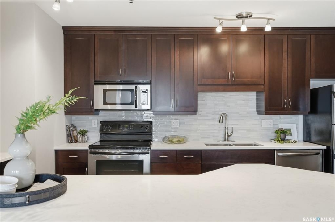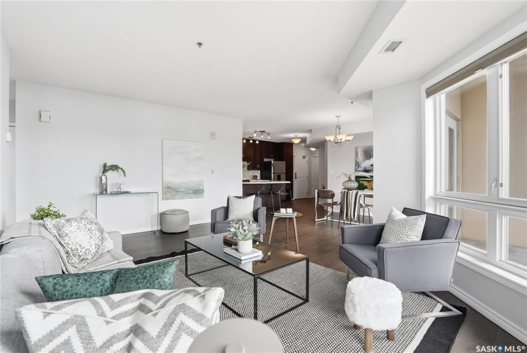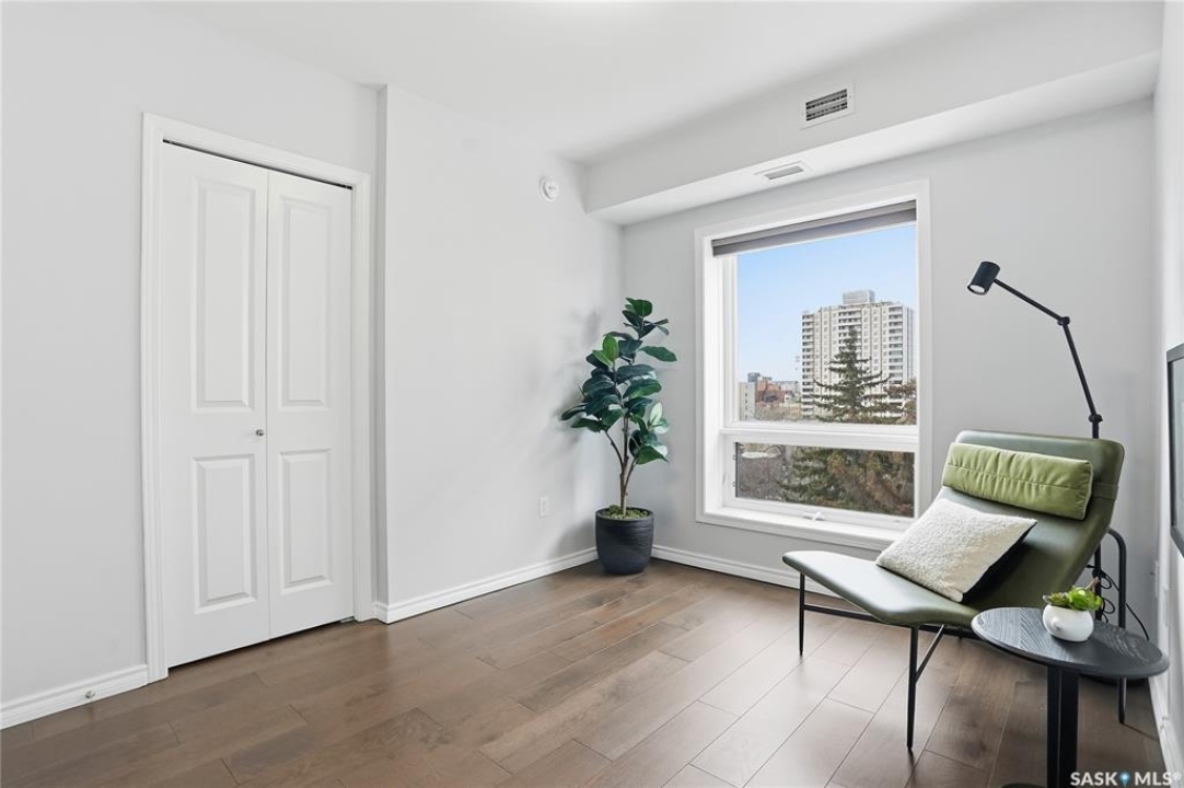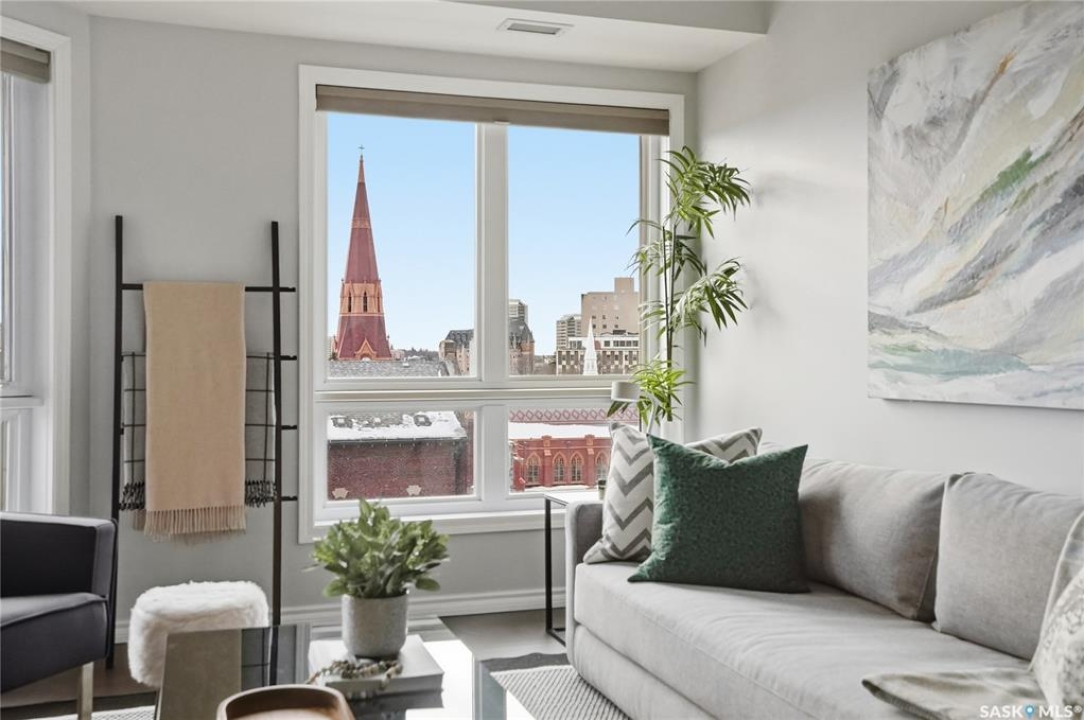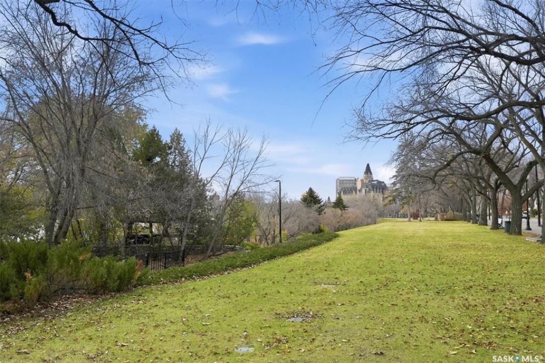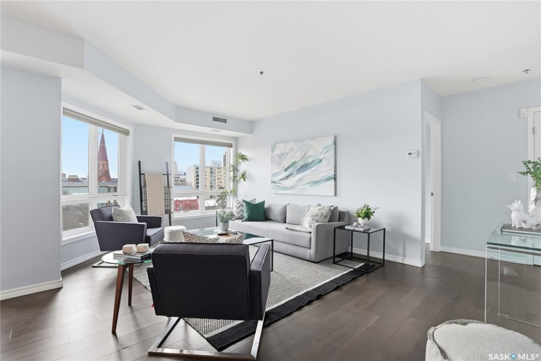 Experience riverfront living in this IMPECCABLE southeast-facing LUX condo in the heart of downtown Saskatoon. Offering 1,155 sq ft, this 2-bedroom, 2-bath unit features an UPDATED bright, open floor plan designed to take full advantage of the natural light and breathtaking river views. The kitchen is beautifully finished and underwent recent updates with modern cabinetry, newer gleaming quartz countertops, tile backsplash, and stainless steel appliances, and a peninsula opening to a spacious open concept living and dining area with oversize windows spanning the entire space, plus a large balcony that captures river and city views including the Meewasin park and the Cathedral's tower! The entire space boasts newer (high end, recently installed) engineered hardwood flooring. Two spacious bedrooms, 2 full baths, and a primary walk-in closet, plus an in-suite storage/laundry room complete this lovely floor plan. Enjoy relaxing or entertaining on the private balcony with a natural gas BBQ hookup, overlooking not only the river, but also The Bessborough and Broadway Bridge. This unit includes 1 heated underground parking stall and a heated storage unit for added convenience. The building offers fantastic amenities, including a fitness room, a meeting room, and two guest suites. Ideally located along the Meewasin River Trail and park and steps from downtown restaurants, shops, and entertainment- the best of what our city offers!!
