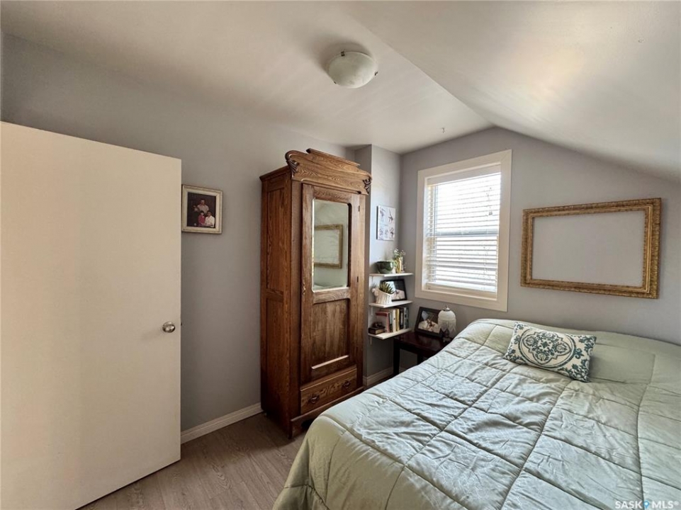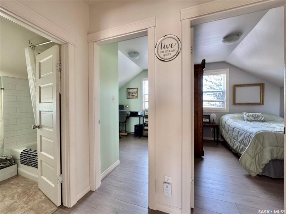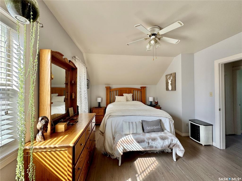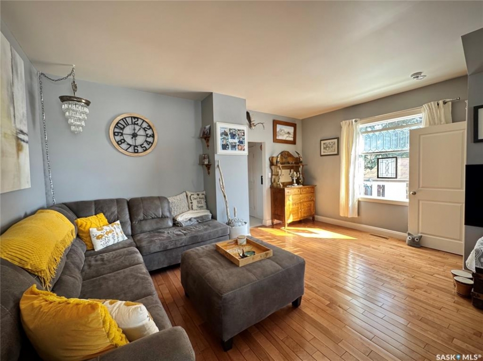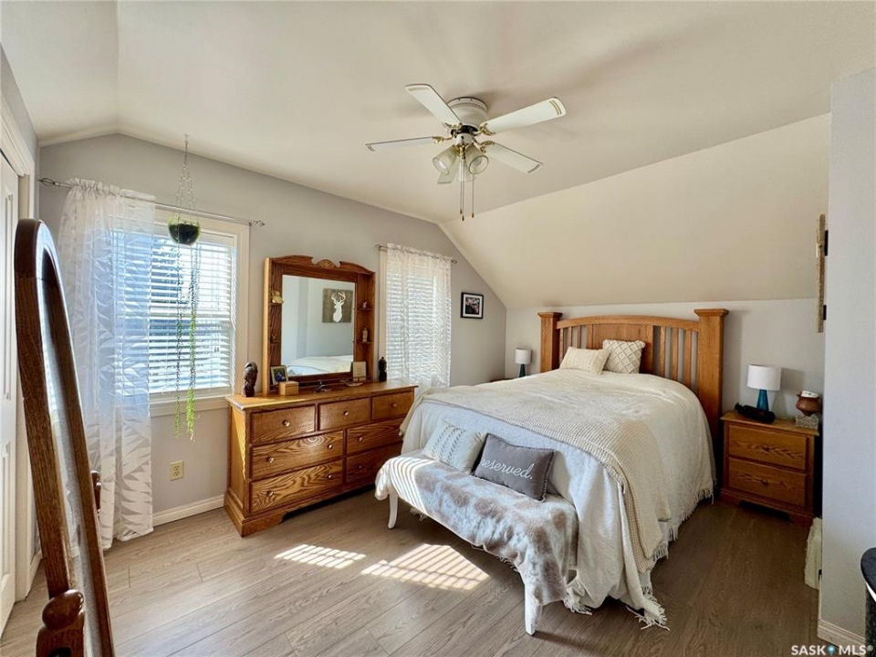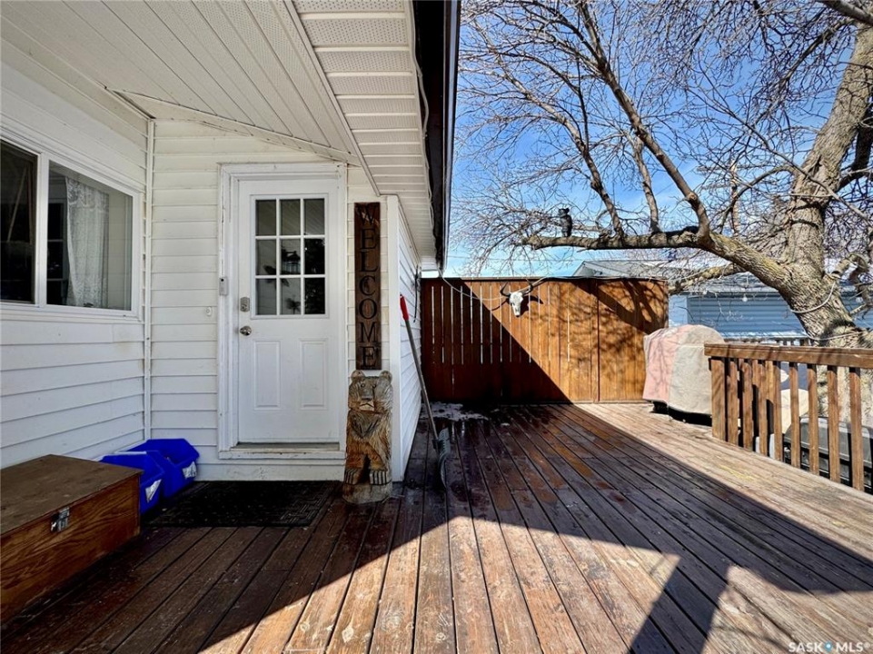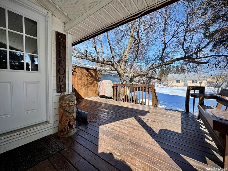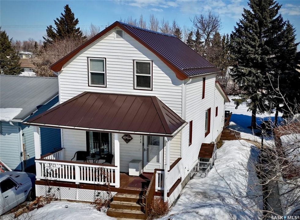 If you've been searching for a true character property in Churchbridge, this two-story heritage house offers the best of both worlds. The main level welcomes you with nine-foot ceilings, gleaming hardwood floors, and updated trim that complements the home's heritage style. The eat-in kitchen is updated and includes a dishwasher, while the main floor laundry and two-piece bath add everyday convenience. A sizable rear entry opens onto a partially covered wooden deck, perfect for relaxing outside. Upstairs, you'll find three bedrooms total—including the master—all with new laminate flooring and a four-piece bathroom. The master bedroom offers a respectable closet. Most windows have been updated, so natural light fills the home. Downstairs, the finished basement serves as a storage zone and houses a high-efficient furnace (updated in 2012) and an on-demand water heater installed in 2024. Outside, there's a detached single-car garage with extra tool storage, plus a “catio” off the basement for your feline friends. This home is within walking distance to the elementary school and downtown amenities, making it convenient for everyday life. With its heritage charm, modern updates, and thoughtful details, this Churchbridge gem is ready to welcome its next owners.