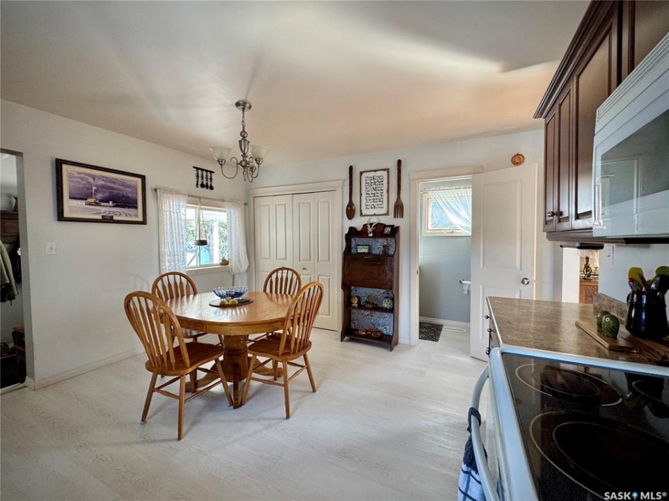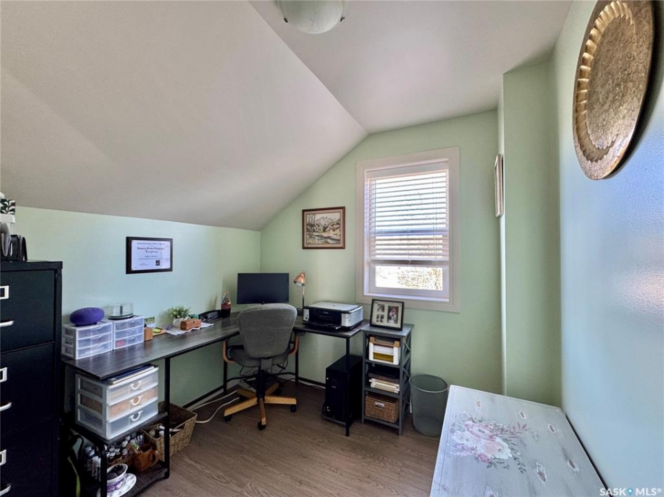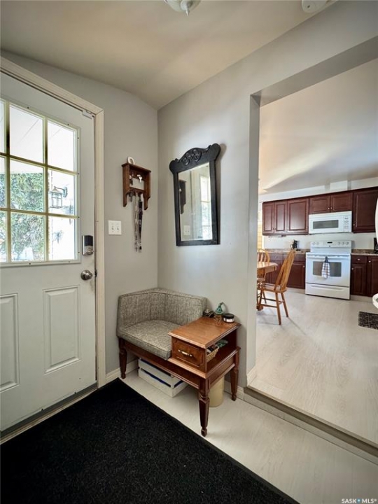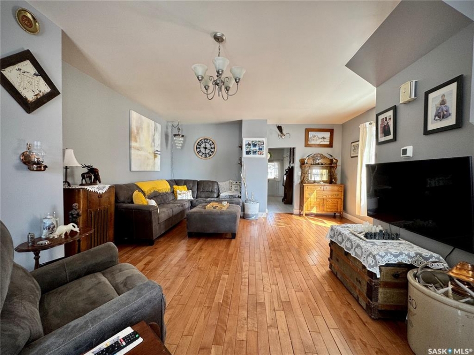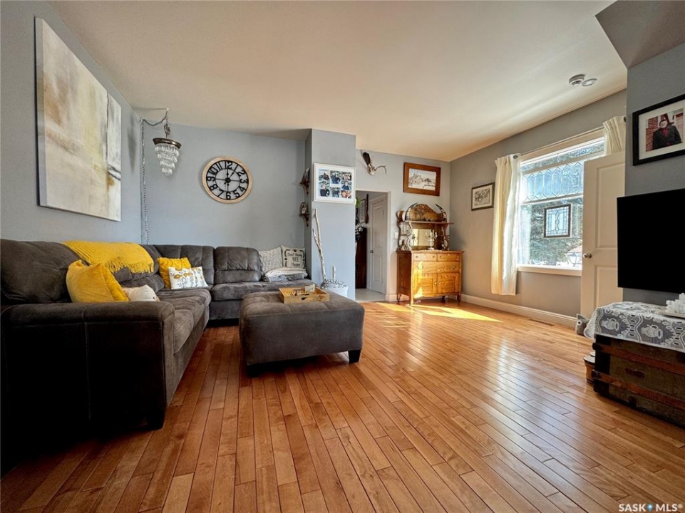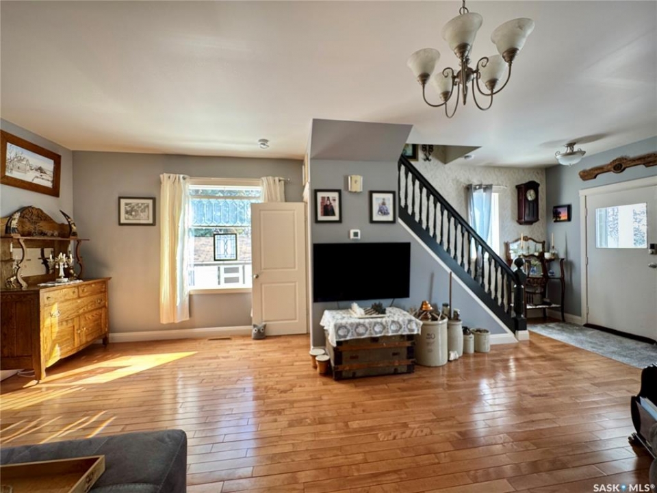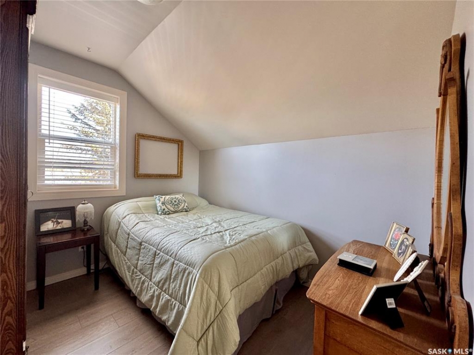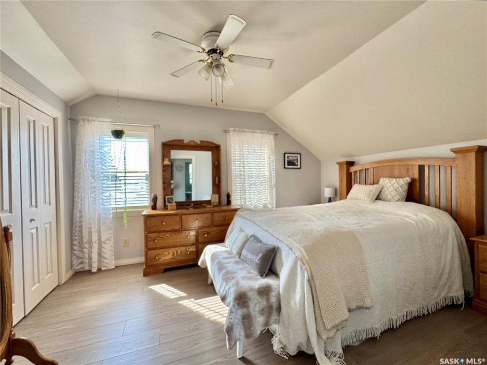 If you've been searching for a true character property in Churchbridge, this two-story heritage house offers the best of both worlds. The main level welcomes you with nine-foot ceilings, gleaming hardwood floors, and updated trim that complements the home's heritage style. The eat-in kitchen is updated and includes a dishwasher, while the main floor laundry and two-piece bath add everyday convenience. A sizable rear entry opens onto a partially covered wooden deck, perfect for relaxing outside. Upstairs, you'll find three bedrooms total—including the master—all with new laminate flooring and a four-piece bathroom. The master bedroom offers a respectable closet. Most windows have been updated, so natural light fills the home. Downstairs, the finished basement serves as a storage zone and houses a high-efficient furnace (updated in 2012) and an on-demand water heater installed in 2024. Outside, there's a detached single-car garage with extra tool storage, plus a “catio” off the basement for your feline friends. This home is within walking distance to the elementary school and downtown amenities, making it convenient for everyday life. With its heritage charm, modern updates, and thoughtful details, this Churchbridge gem is ready to welcome its next owners.