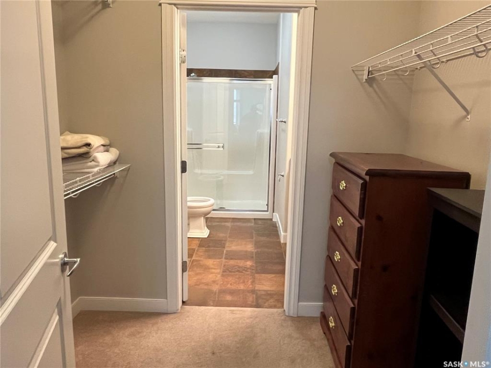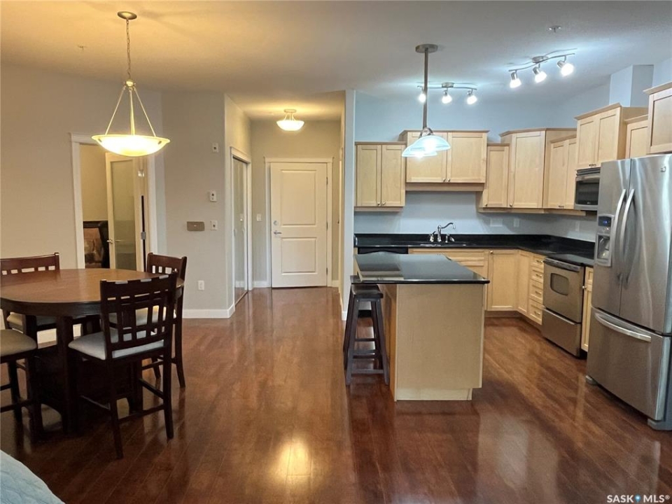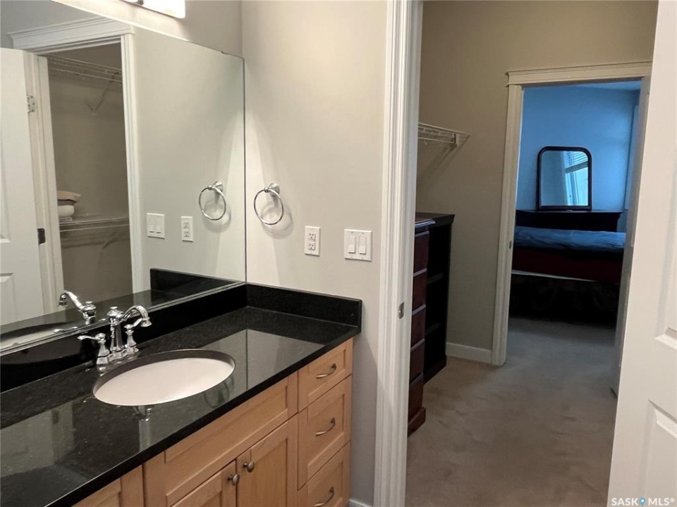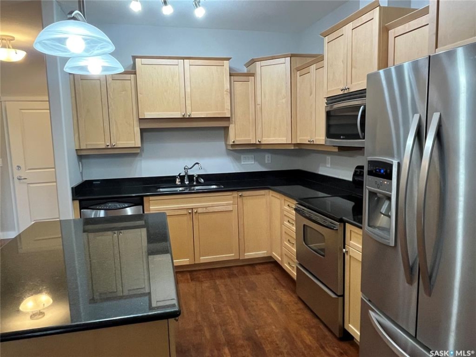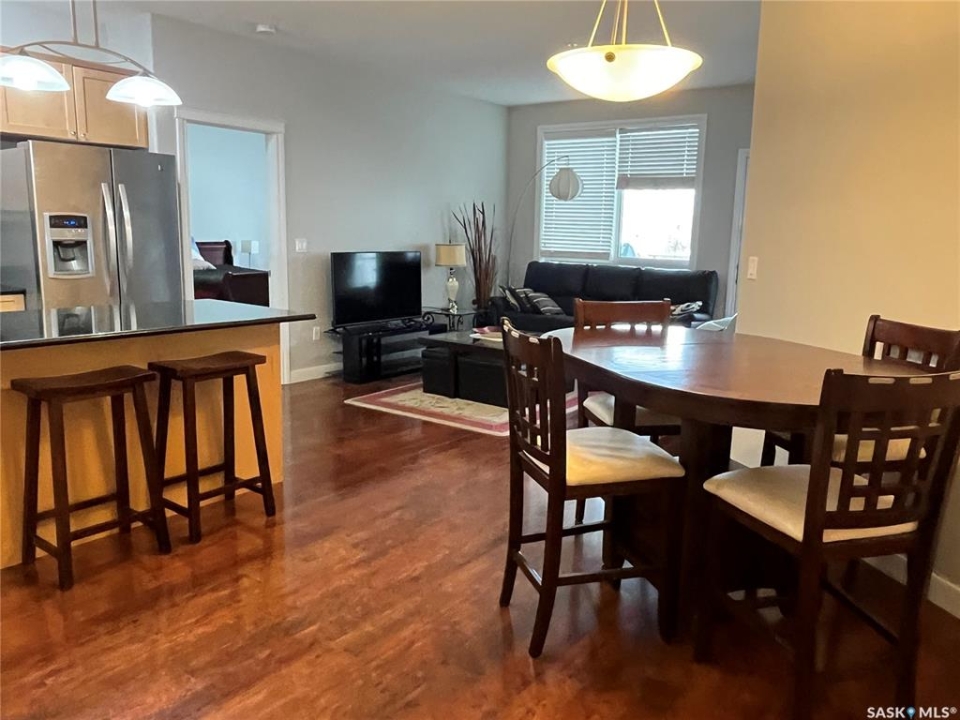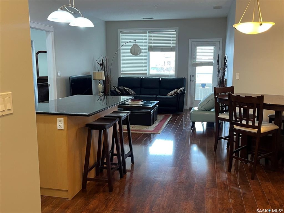 Welcome to this bright and beautifully maintained 1,185 SqFt condo in the highly desirable community of The Willows. Located on the second floor, this westeast facing unit offers abundant natural light and a thoughtfully designed layout. The updated kitchen features elegant granite countertops, a stylish backsplash, upgraded cabinetry, an island with seating and stainless steel appliances. The open concept design flows seamlessly into the dining and living areas. With in floor heating and central air conditioning, you'll stay comfortable no matter the season. This unit offers two spacious bedrooms, including a primary suite with a walk-in closet and a 3 piece ensuite plus a Den can can double as home office Additional highlights include a large laundry room with extra storage, a private balcony with natural gas BBQ hookup, and two parking stalls, one underground and one surface. Enjoy a range of premium amenities, including an exercise room, recreation room, ample visitor parking, and a convenient car wash bay, a bonus you'll love year round. There is also a secure storage room. You'll be just steps away from the Willows Golf & Country Club, making this a perfect home for golf enthusiasts or anyone seeking a serene, upscale environment. Don't miss your chance to own this exceptional and affordable condo in one of Saskatoon's most sought after communities. Book your private showing today!