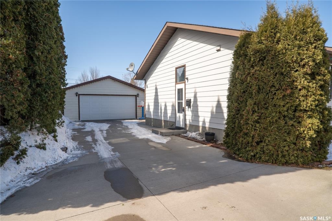 Perfectly situated between the high school, elementary school, parks, and green space, this 1980s bungalow is an ideal fit for a first-time buyer or someone looking to downsize and settle into a great neighbourhood. Set on a spacious lot, there's plenty of room to enjoy the outdoors. You'll love the west-facing deck for evening sunsets, garden space to make your own, an above-ground pool to cool off in the summer, underground sprinklers in the front yard, PLUS a large double detached garage -recently updated with wifi garage door openers & security camera. Inside, the kitchen has been updated, and the main floor offers two generous bedrooms plus a versatile third space currently used as a mudroom with direct access to the deck (easily converted back into a bedroom if desired). The basement is open for your personal touch, already featuring a large office, a family room area, a three-piece bathroom, and plenty of storage. Recent updates include the water heater and shingles (2025), giving you peace of mind moving in. Call your favourite REALTOR � to take a look—this one is ready to welcome you home.