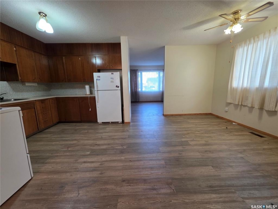 Affordable and full of potential, this 960 sq. ft. half duplex at 244 – 18th Ave. NE, Swift Current, is a solid opportunity for first-time buyers or downsizers willing to put in a bit of work to make it their own. The main floor offers a bright living room that flows into an open-concept kitchen and a surprisingly spacious dining area, giving you a comfortable layout for everyday living or hosting friends. Two bedrooms and a full 4-piece bathroom round out the main level, with PVC windows already in place to help with efficiency. The basement adds valuable extra space, featuring a third bedroom, a long rec room that would make an ideal future theatre or family room, a second 4-piece bathroom, and a dedicated laundry area. A chair lift to the basement is already installed, offering added accessibility if needed. Mechanical updates include a metal roof, a high-efficiency furnace and central air, giving you a head start on the bigger-ticket items. Outside, you'll find a paving stone front driveway with space for two vehicles, along with additional gravel parking for two more out back. A cozy patio area provides a nice spot to relax or entertain once you've added your personal touch. This home may need some cosmetic updates, but it's a practical, affordable entry into homeownership with plenty of upside for those ready to roll up their sleeves.