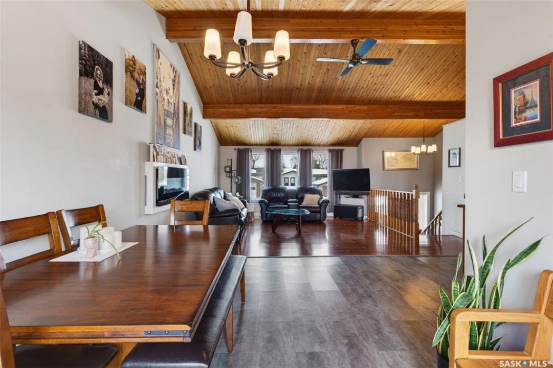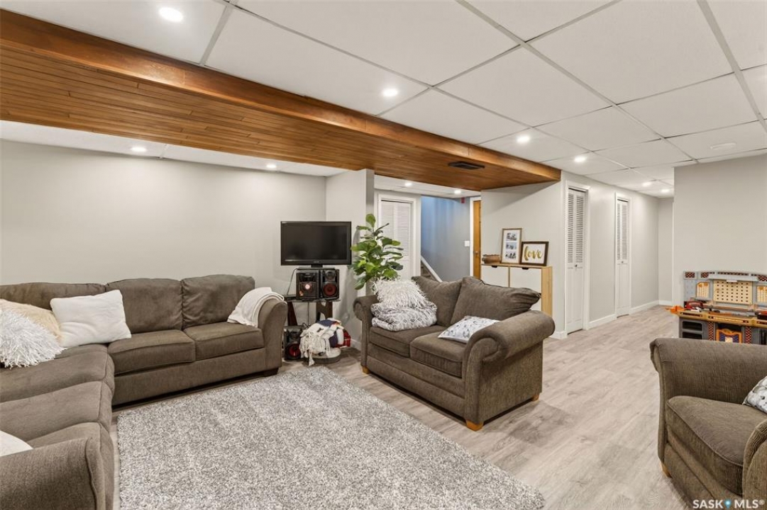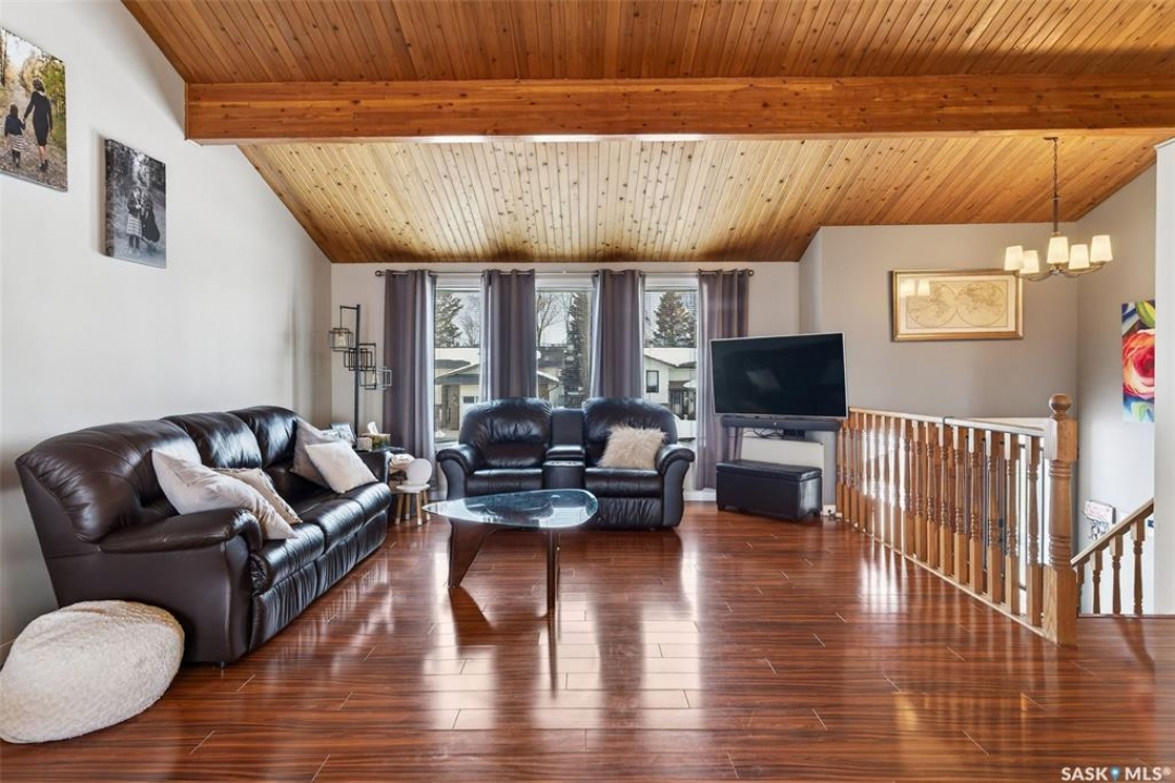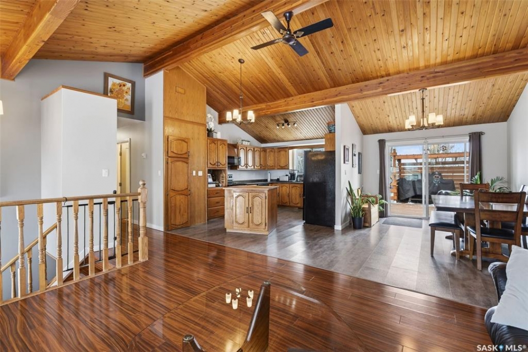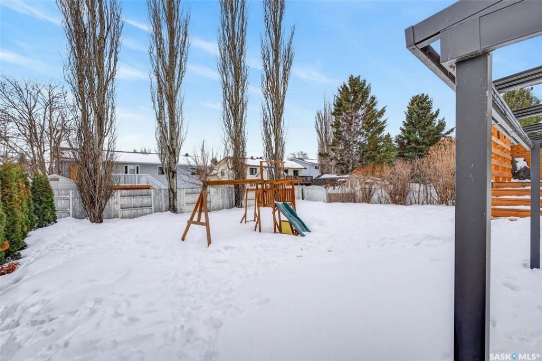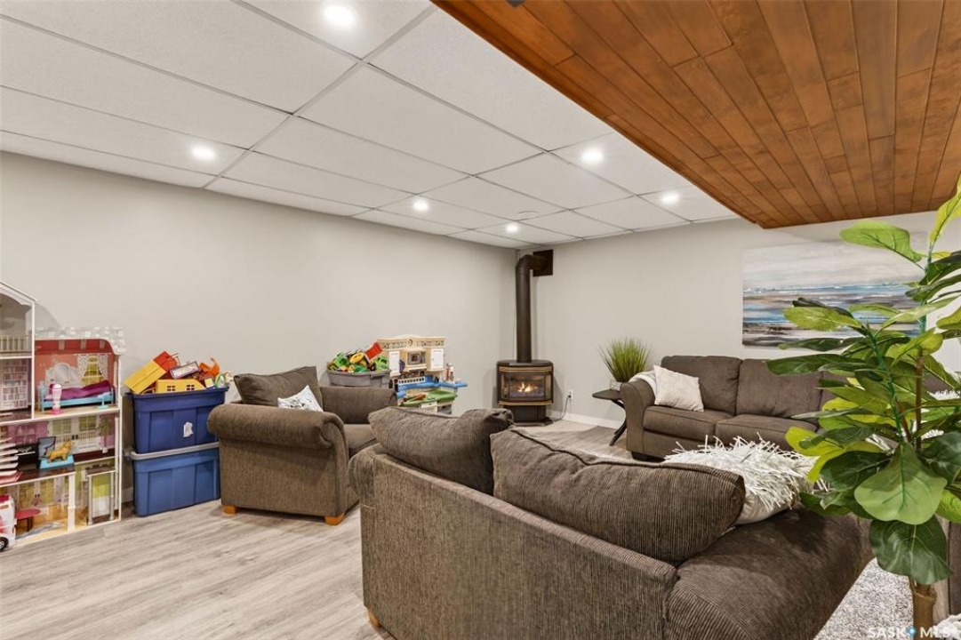 Welcome to this well-appointed 1343' family home in Crescent Acres offering space, functionality, and thoughtful updates throughout. Featuring 5 bedrooms and 3 bathrooms, this property is ideal for growing families or those looking for extra room to live and entertain. The main floor showcases beautiful cedar cathedral ceilings that create a warm and inviting atmosphere. You'll find a spacious living room, a dedicated dining area with garden doors leading to the deck and private backyard, and a massive chef's kitchen complete with stunning oak cabinetry and a large island perfect for gathering. The primary bedroom includes a walk-in closet and 3-piece ensuite, while two additional bedrooms and a 4-piece bathroom complete the level. The fully developed lower level offers exceptional additional living space, featuring a large recreation room and a charming corner natural gas Franklin fireplace, open to a games area, along with two more bedrooms and a 3-piece bathroom. There is also direct entry to the double attached heated garage, adding convenience year-round. Outside, enjoy the mature, fully fenced yard with a storage shed, as well as a deck with privacy walls, perfect for relaxing or entertaining. Additional features include updated bathrooms and a high-efficiency furnace for added comfort and energy savings. This is a fantastic opportunity to own a spacious, move-in ready home in a desirable setting.