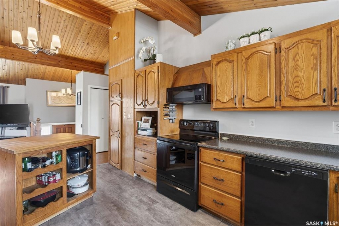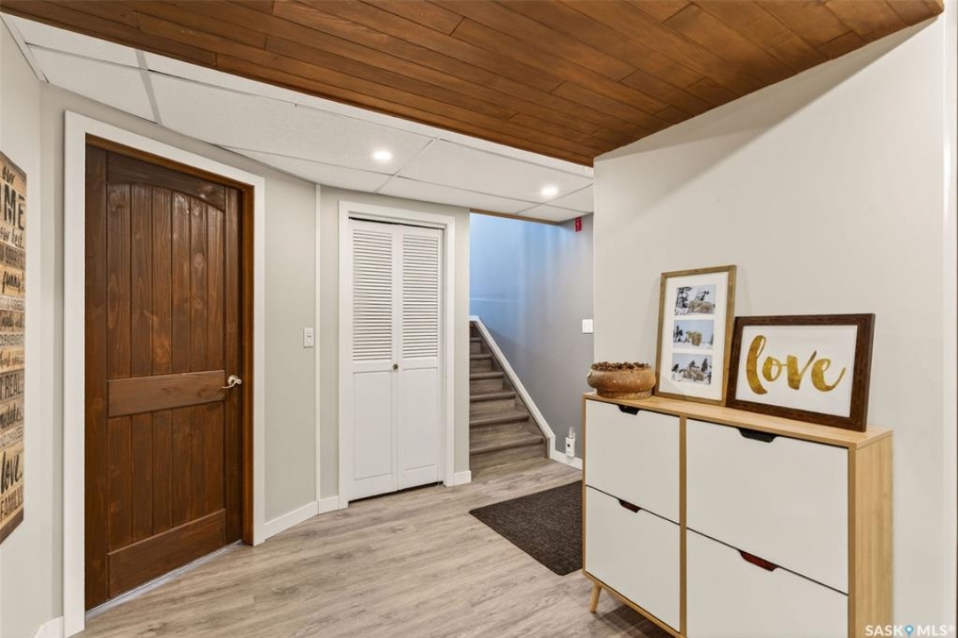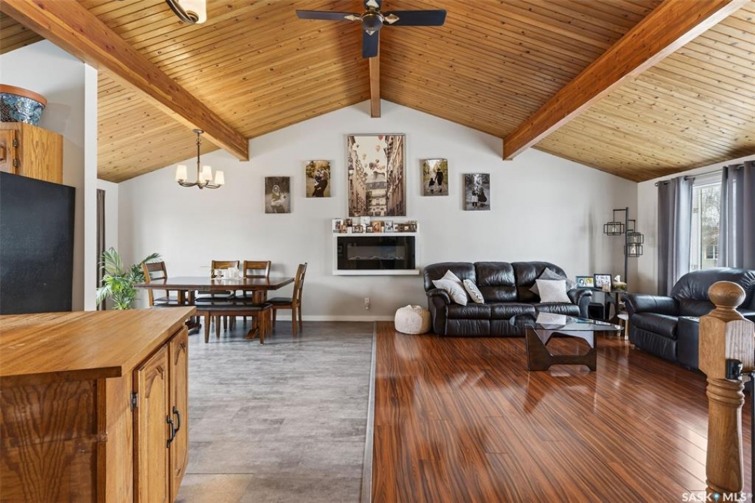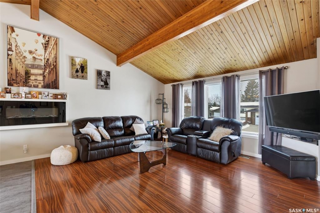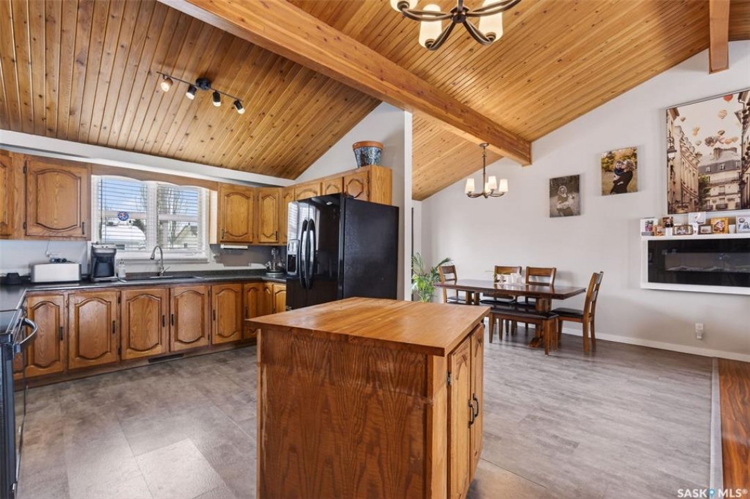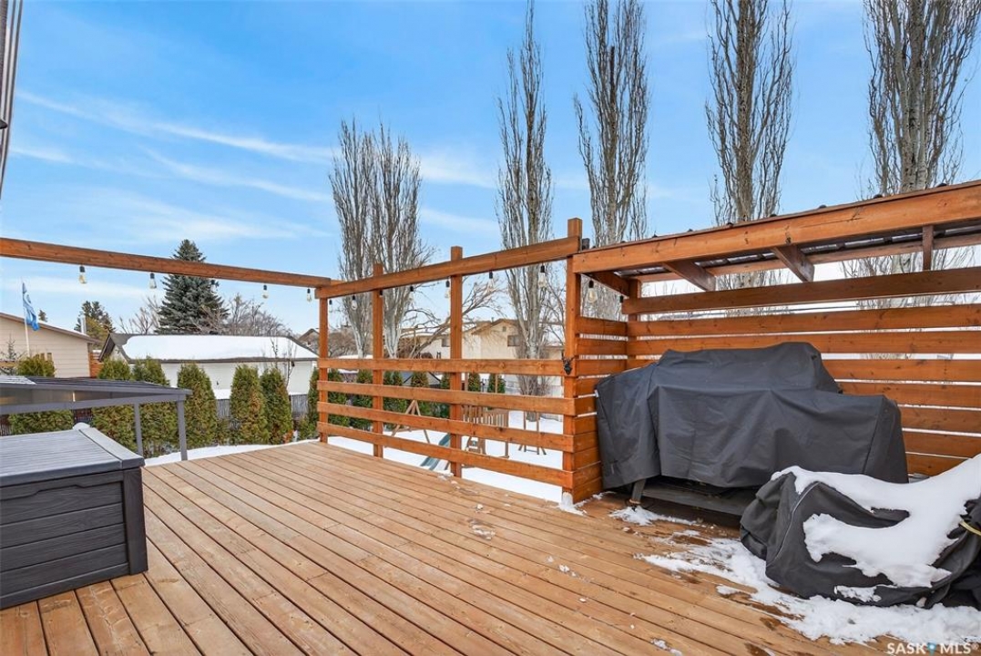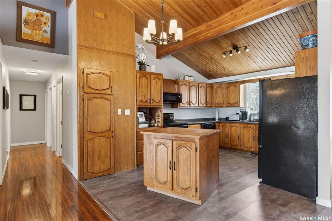 Welcome to this well-appointed 1343' family home in Crescent Acres offering space, functionality, and thoughtful updates throughout. Featuring 5 bedrooms and 3 bathrooms, this property is ideal for growing families or those looking for extra room to live and entertain. The main floor showcases beautiful cedar cathedral ceilings that create a warm and inviting atmosphere. You'll find a spacious living room, a dedicated dining area with garden doors leading to the deck and private backyard, and a massive chef's kitchen complete with stunning oak cabinetry and a large island perfect for gathering. The primary bedroom includes a walk-in closet and 3-piece ensuite, while two additional bedrooms and a 4-piece bathroom complete the level. The fully developed lower level offers exceptional additional living space, featuring a large recreation room and a charming corner natural gas Franklin fireplace, open to a games area, along with two more bedrooms and a 3-piece bathroom. There is also direct entry to the double attached heated garage, adding convenience year-round. Outside, enjoy the mature, fully fenced yard with a storage shed, as well as a deck with privacy walls, perfect for relaxing or entertaining. Additional features include updated bathrooms and a high-efficiency furnace for added comfort and energy savings. This is a fantastic opportunity to own a spacious, move-in ready home in a desirable setting.