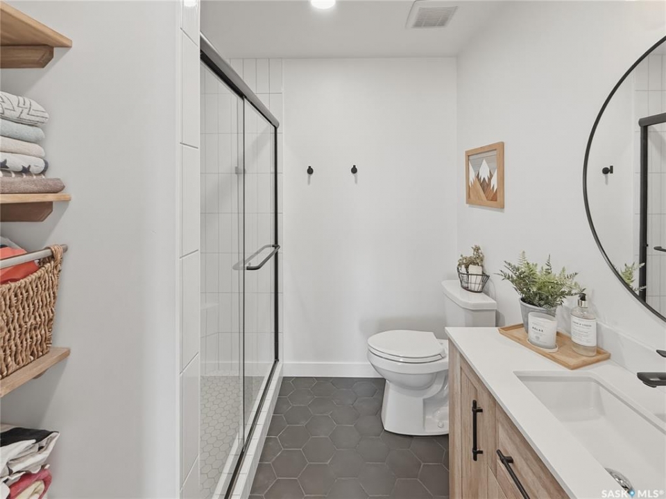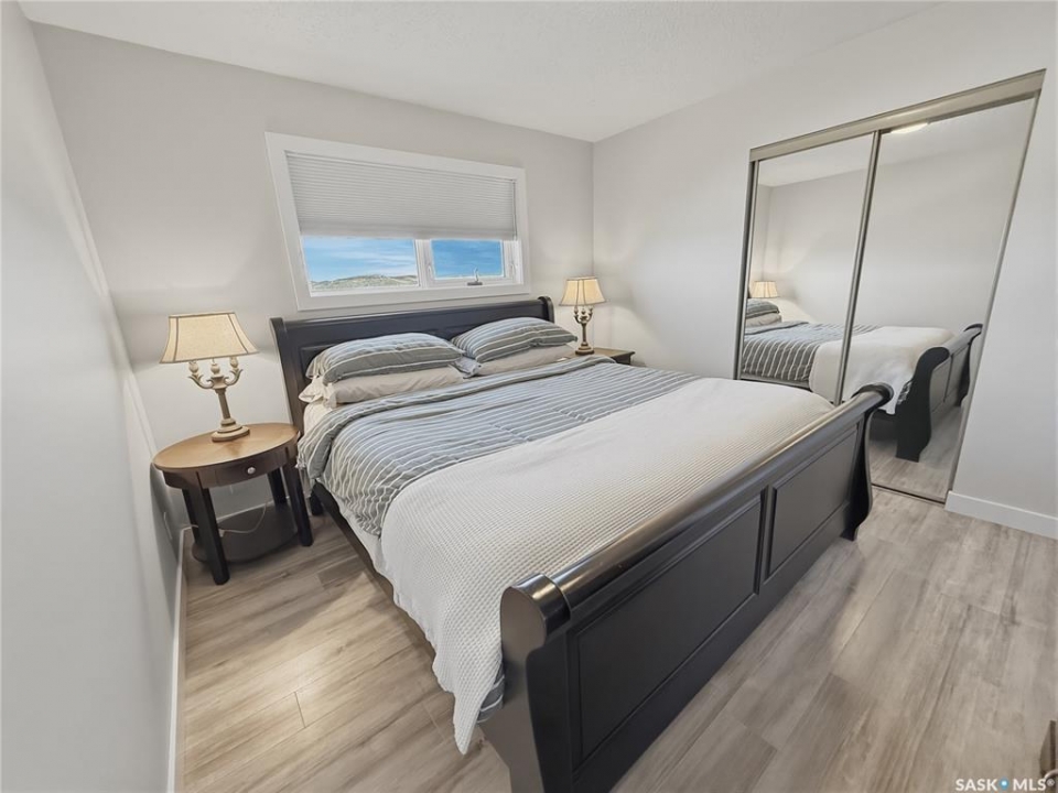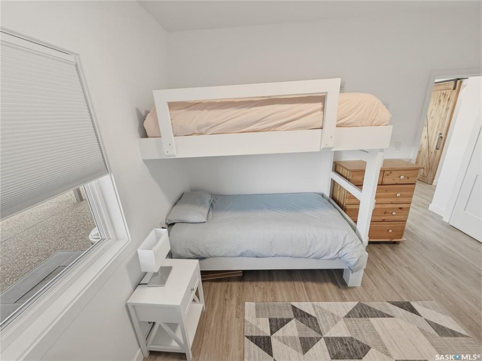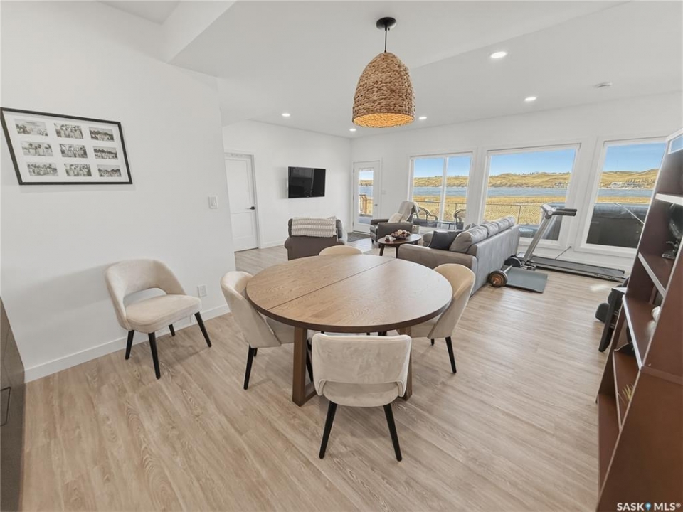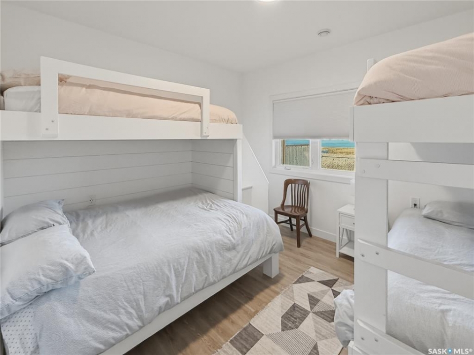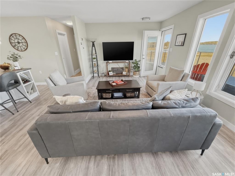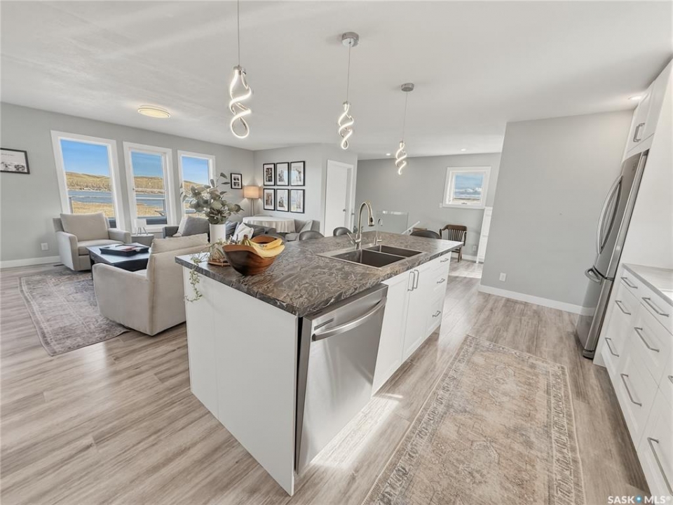 Life really is better at the lake—especially when it's DEEDED, lakeview, and designed for all four seasons. Welcome to the southwest side of Lac Pelletier, where this beautifully updated walkout bungalow offers incredible views and the kind of lifestyle buyers dream about. Originally built in 1983 and moved onto a brand new ICF walkout basement in 2019, this 1,092 sq. ft. home blends solid construction with modern updates. The main floor was completely renovated and features a gorgeous white kitchen with sit-up island, stainless steel appliances, and an open-concept design that fills the home with natural light. The living room showcases stunning southeast views of the lake and river hills, and the oversized upper deck spans 12' x 39'—an amazing space for entertaining, relaxing, and soaking in the view. The main floor also offers 2 bedrooms, main floor laundry, and an updated 4-piece bath with newer toilet, vanity, lighting, and flooring. Updated flooring, paint, trim, and light fixtures run throughout the main level. The fully developed walkout basement, completed in 2022, adds exceptional extra living space with a spacious family room, wet bar with open shelving, a 3-piece bath with electric in-floor heat and custom tiled shower, plus a primary bedroom and an additional bedroom with soundproof walls and custom built-in bunk beds. Step outside to the private exposed aggregate patio and enjoy your front-row views of lake life. The fully fenced yard offers privacy and room to build a garage if desired. Additional updates include shingles, exterior paint, and parging/stucco (2020), most plumbing, natural gas BBQ hookup, central A/C (2022), newer 200 amp panel, high-efficiency furnace, 1600-gallon septic tank, and central water line. Located in Lac Pelletier Regional Park, you'll enjoy boating, fishing, swimming, golf, mini golf, and dining just minutes from your door. Don't wait—this deeded lakeview property is a rare find.
