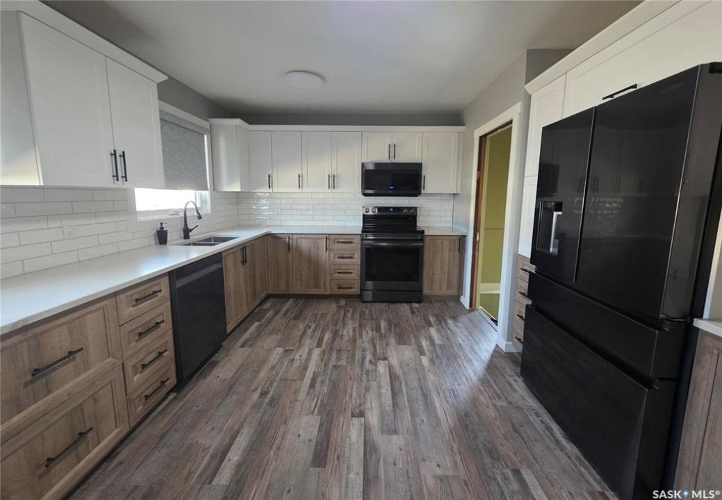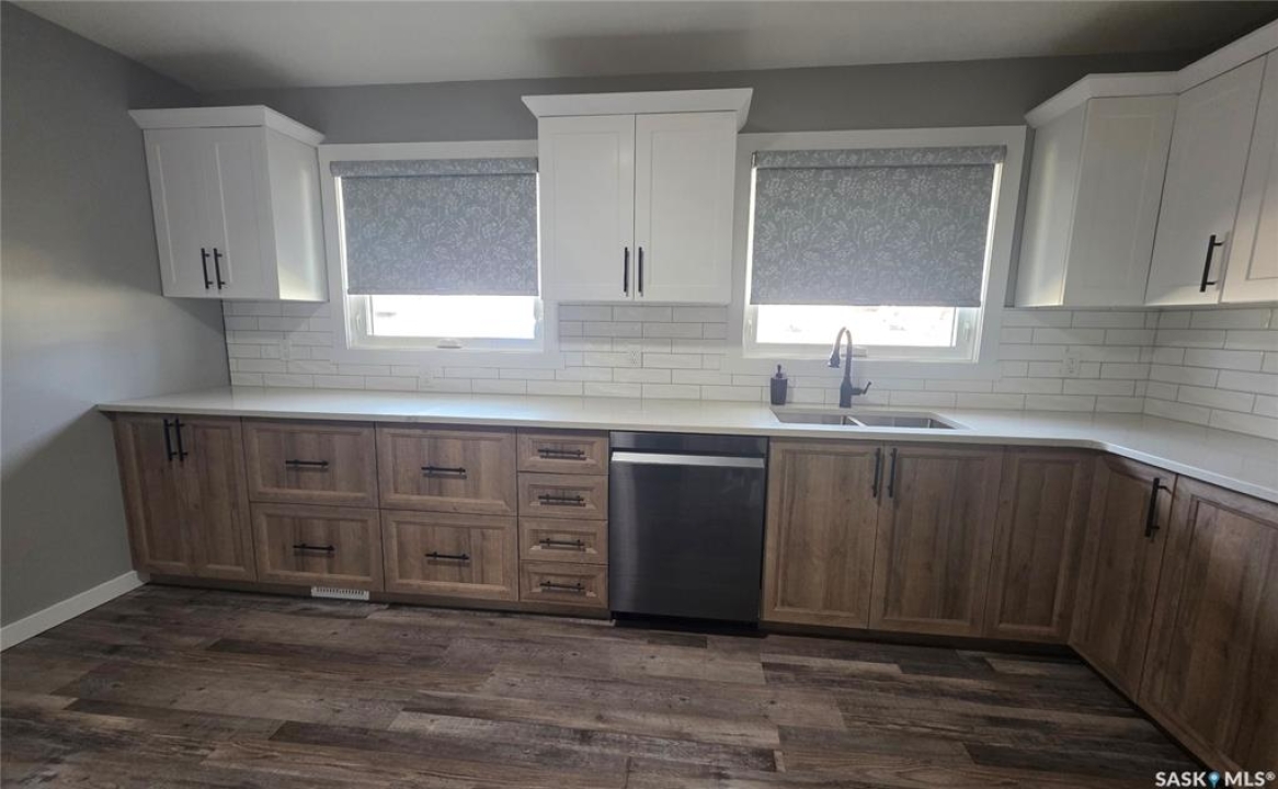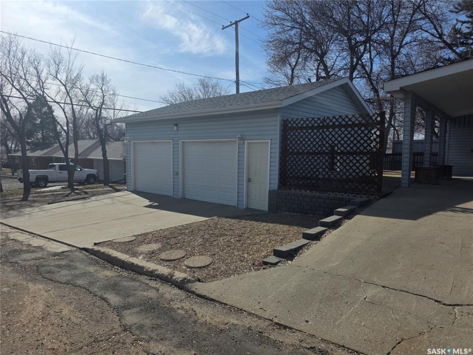 Welcome to this well-maintained 1,316 sq. ft. bungalow located in the desirable Westview area—offering a perfect blend of comfort, functionality, and thoughtful upgrades throughout. Step inside to a bright and inviting main floor featuring a spacious living room with original hardwood flooring, adding warmth and character to the home. The beautifully updated two-tone kitchen is sure to impress, complete with new quartz counter tops and sleek black stainless steel appliances, making it both stylish and functional for everyday living and entertaining. The main level offers three generously sized bedrooms, along with a convenient laundry chute, eliminating the need to carry laundry downstairs. The updated main bathroom features modern touches, including motion sensor lighting and a relaxing jet tub. The primary bedroom is truly a standout, boasting an impressive 11' x 16' addition with direct access to the deck—an incredibly versatile space ideal for a hot tub area, home gym, or even a pool table setup. Downstairs, you'll find a large family room perfect for entertaining or giving the kids their own space, along with a fourth bedroom, a 3-piece bathroom with laundry, and ample storage throughout. This home has seen numerous important updates, including: Electrical upgrades Lennox furnace (2006) Hot water heater (2024) Water softener Windows approximately 12 years old New interior and exterior doors Added Styrofoam insulation behind the siding for improved efficiency Outside, the property continues to impress with beautiful landscaping, a heated double detached garage featuring 10' ceilings and a floor drain, plus additional RV parking to the south. A covered carport conveniently connects the home and garage, and the yard is partially fenced, offering both privacy and practicality. This is a fantastic opportunity to own a move-in ready home in a great location with space, upgrades, and flexibility to suit a variety of lifestyles.