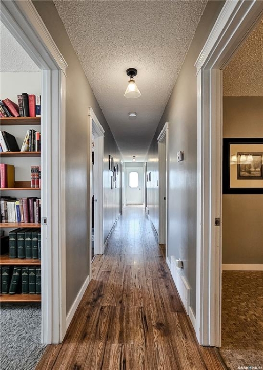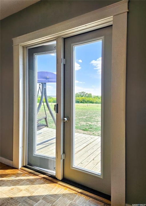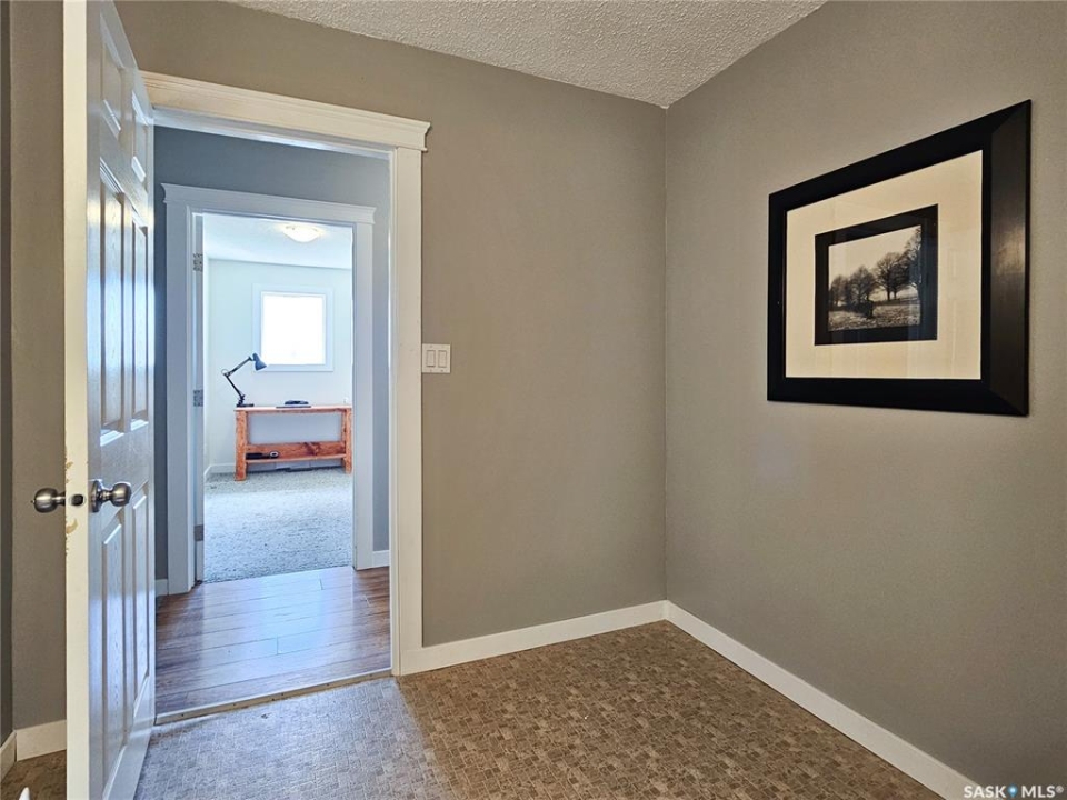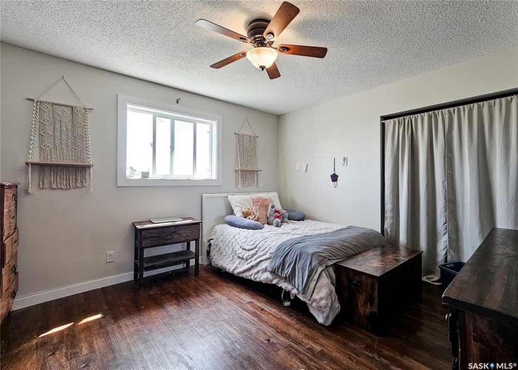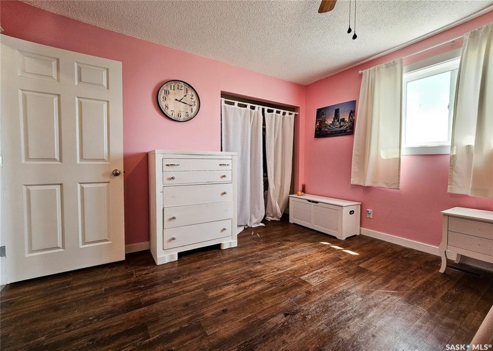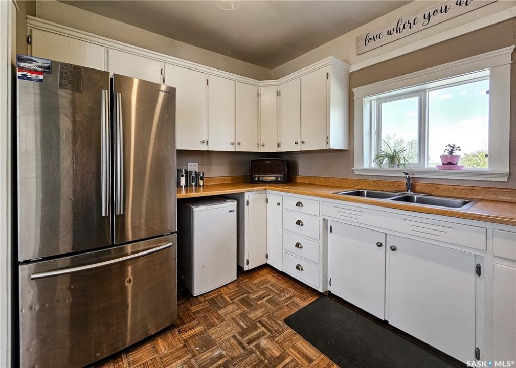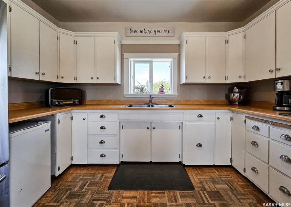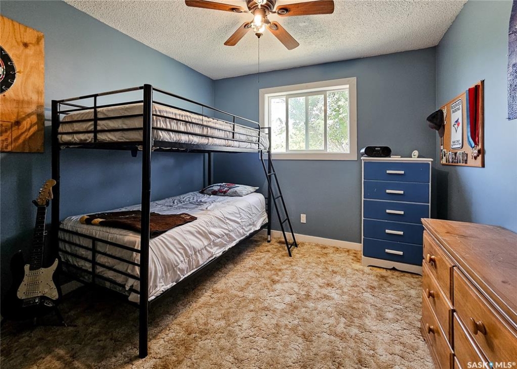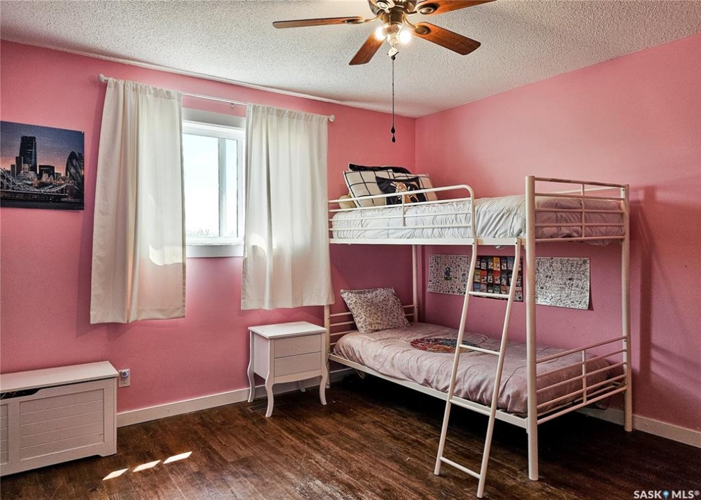 If your family is running out of room, this acreage could be exactly what you've been searching for. Set on 4.86 acres, this property offers the rare convenience of municipal water paired with the comfort of a spacious 1,864 sq ft bungalow. Step inside to a generous entryway with plenty of room for boots, coats, and everyday gear, complete with a handy built in bench. Just ahead, the main floor laundry provides exceptional storage with an entire wall of cabinetry and ample counter space. At the heart of the home, the country kitchen and dining area are bathed in southern sunlight thanks to a brand new garden door. The adjoining living room shares this warm exposure, featuring a full wall of windows that brighten the entire space. A long hallway leads to a refreshed four piece bathroom, updated with new drywall, paint, toilet, vanities, and mirrors. There's generous room for linens or even a baby change station. The main floor also includes a dedicated home office and four oversized bedrooms, offering flexibility for family, guests, or hobbies. The home sits on a partial concrete basement that houses all the utilities, including the hot water tank, natural gas furnace, and municipal water storage and pressure system. A direct-entry stairwell from the backyard to the basement is in place and ready to be reactivated. Outdoors, the yard is beautifully treed and naturally sheltered. Several small sheds provide options for garden tools, chickens, goats, or other small livestock. With nearly five acres to work with, there's abundant space to add a garden, garage, workshop, or even a pool. Recent updates include fresh paint inside and out, new windows, baseboards, interior and exterior lighting, door and window casings, eavestroughs, and a new garden door—making this home move in ready