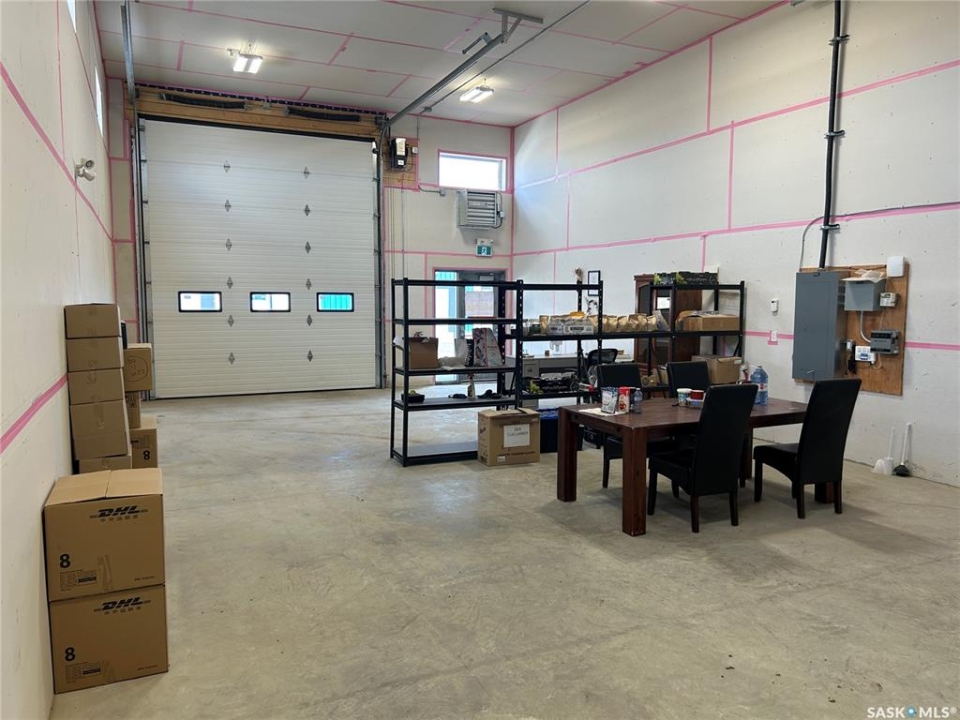 1000 sqft light industrial / warehouse condo , Located in New Horizon Business Park in RM of Edenwold No 158, between Regina and Pilot Butte, on north side of Hwy No 46. End unit, 20 foot high ceiling, and the option to build a second story/mezzanine. Some features include; Large front yard to park in the front for parking, 12' x 16' front OH door, 2 piece bathroom complete, and 100 amp single phase power. This is the ideal space for trades, construction, automotive, or any use requiring shop space or storage warehouse. This is also an established condo association and property manager on site providing on site snow removal/sanding, landscaping, and recycling/garbage disposal. Please note, price plus applicable GST and PST apply. Condo fee include Garbage, Snow Removal, Water and sewer.