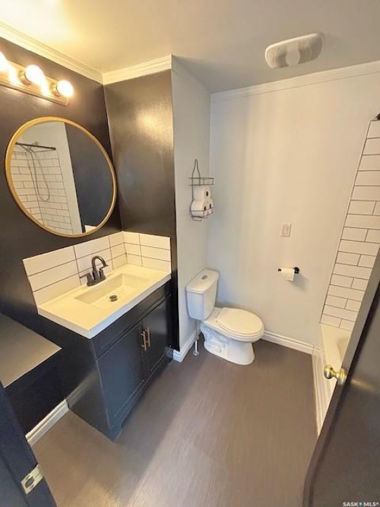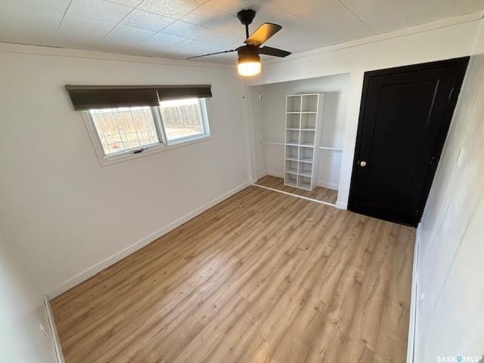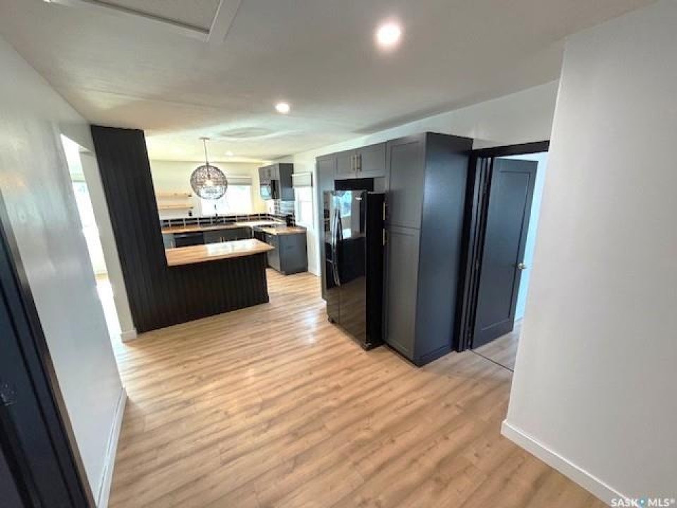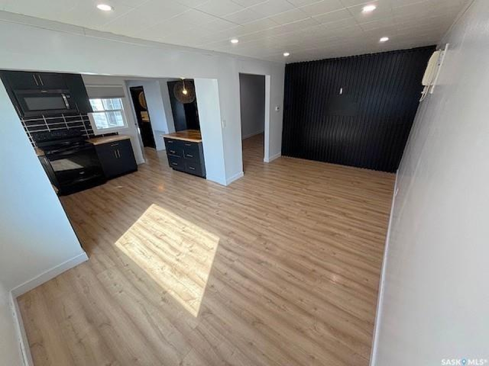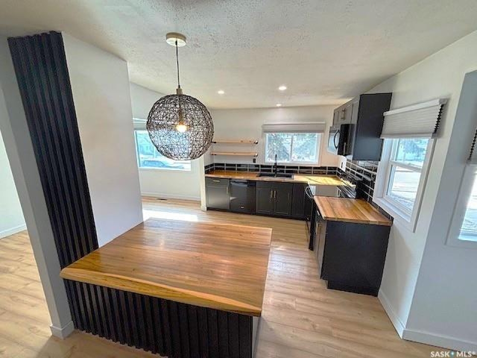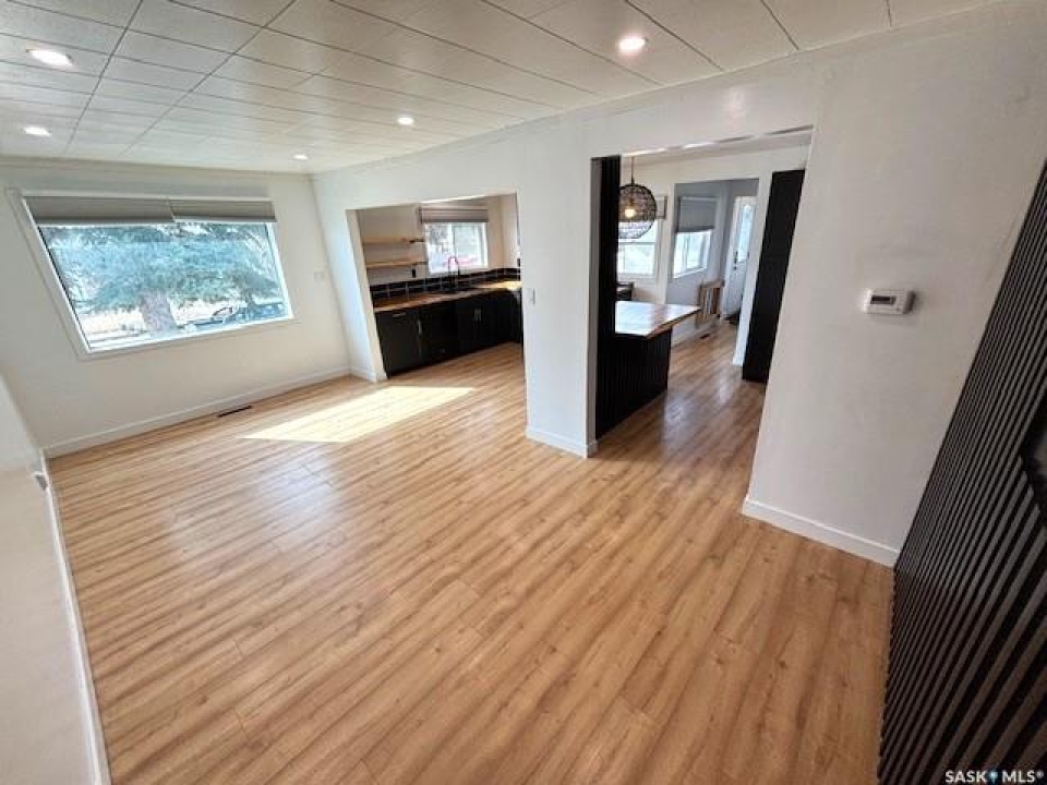 Welcome to this charming 840 sq ft bungalow located in the desirable North West Palliser area of Moose Jaw, close to schools and parks—perfect for first-time home buyers or those looking to downsize. The main floor features a bright, open-concept layout with a beautifully renovated kitchen (2022), complete with darker-toned cabinetry, updated sink, dishwasher, ample counter space, and a functional breakfast bar/island—ideal for everyday living and entertaining. Laminate flooring runs throughout the kitchen, dining area, and bedrooms, while a large south-facing picture window fills the space with natural light. The main level also includes a full 4-piece bathroom and two ample sized bedrooms. The fully developed lower level offers additional living space with a comfortable family room, a versatile den perfect for a home office or playroom, and a utility/laundry area. Outside, enjoy the fully landscaped yard featuring a wood deck, a designated garden area, and a storage shed. A long single detached garage provides excellent parking, storage, or workshop potential. Immediate possession is available—don't miss this opportunity to own a well-updated home in a great location!