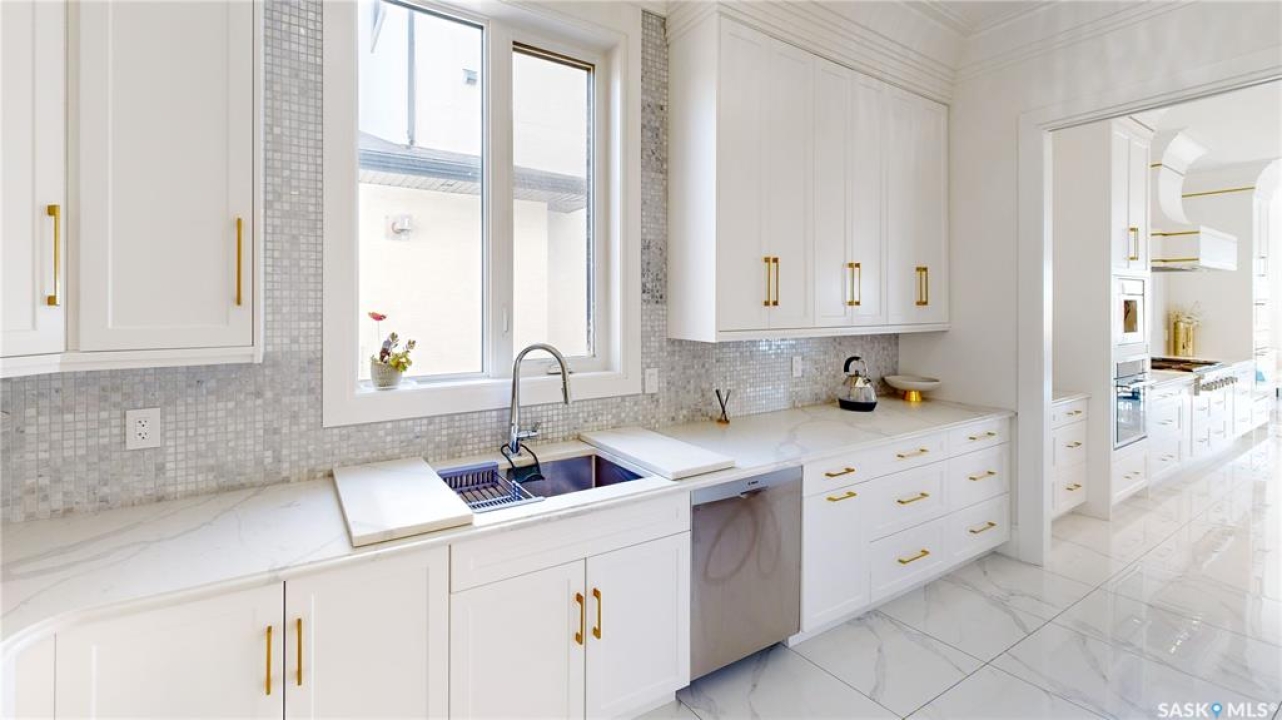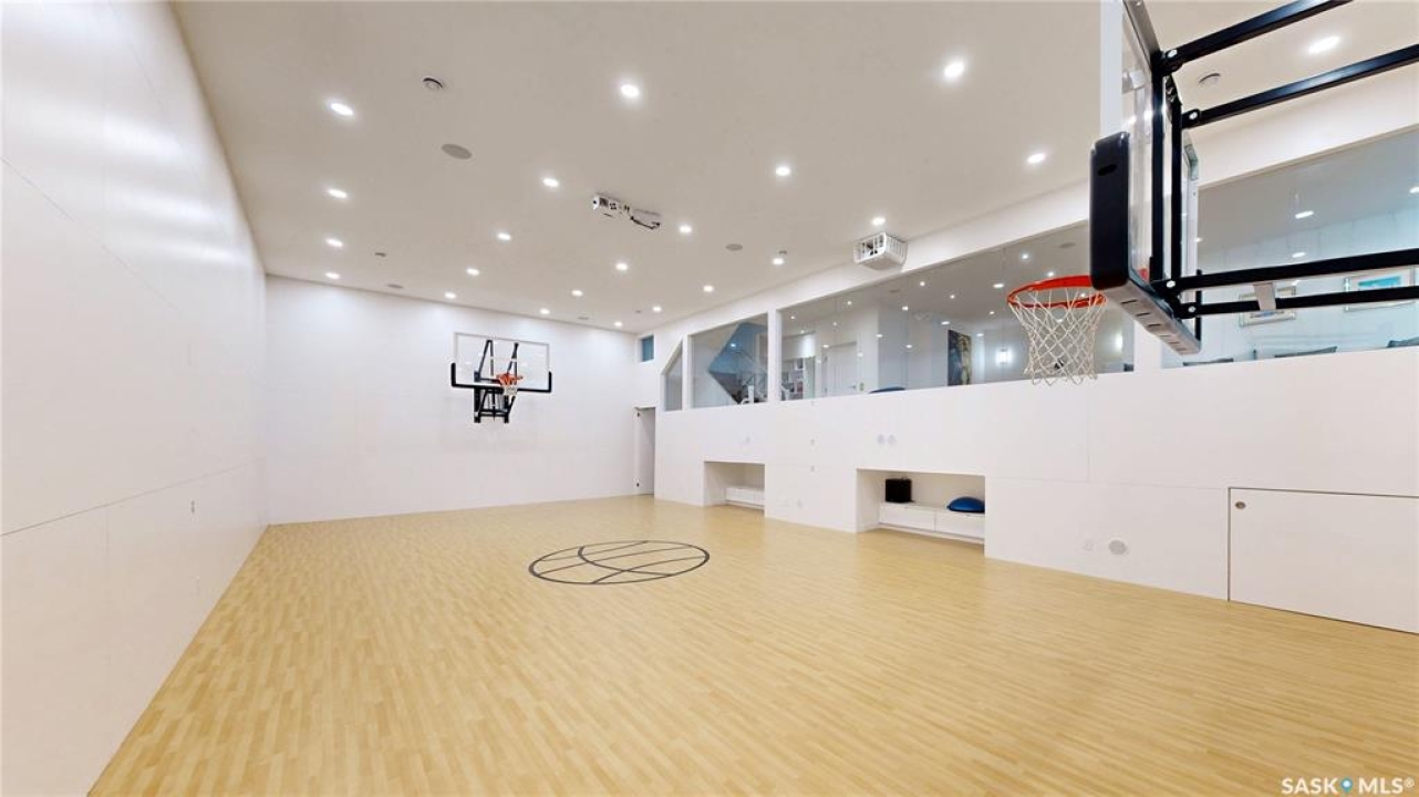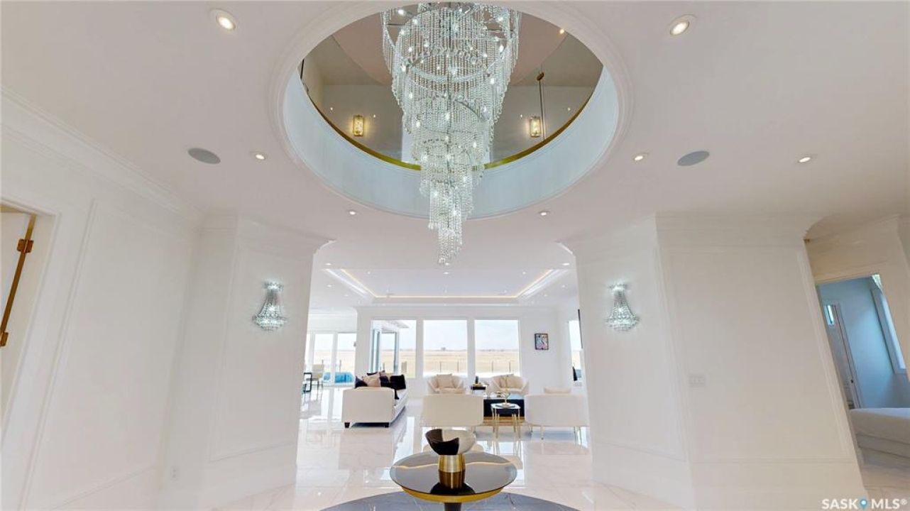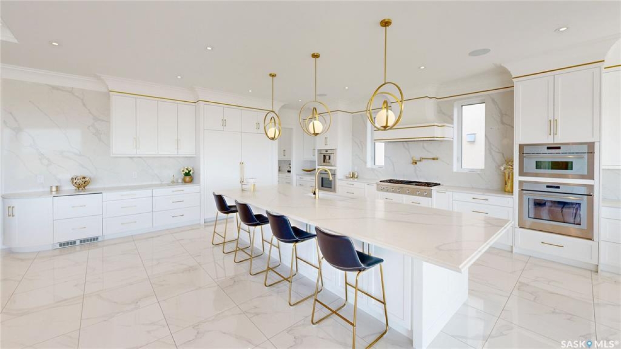 Welcome to 4404 Wild Rose Drive in the The Creeks. This extraordinary custom built estate was designed over several years and completed in 2021 with exceptional attention to detail. Offering 6,096 sq. ft. of living space, this stunning two storey home features 6 bedrooms, 8 bathrooms, and sits on a 8,901 sq. ft. rectangular lot backing a protected nature reserve with expansive green space, a flowing stream, and breathtaking prairie sunsets. A circular foyer with a chandelier and soaring 22 ft. ceilings creates a striking first impression. The main floor living room has a gas fireplace and floor-to-ceiling views of the incredible backyard. Glass doors fully open to create seamless indoor-outdoor living, leading to the backyard featuring a heated 16 x 32 pool, an expansive deck with built-in heater, gas BBQ hookup, and electric screens. The open concept design connects the living room, dining area, and the stunning kitchen complete with custom white cabinetry, gold accents, oversized island with seating, and premium Thermador appliances including a hidden fridge, espresso machine, steam oven, convection oven, speed oven, and six-burner gas cooktop with grill and pot filler. A fully equipped butler's kitchen and pantry keep prep work tucked away during gatherings. The main floor also includes an office, guest bedroom with ensuite, convenient pool change area with laundry and a shower, two heated double attached garages, and mudrooms with built in lockers. Upstairs, the elegant great room overlooks the foyer and leads to a luxurious primary suite featuring a fireplace, office space, 6-piece ensuite, and dual walk in closets. Four additional bedrooms each include their own ensuite, plus a beautifully designed laundry room. The showstopping basement features a full indoor basketball court convertible for volleyball, pickleball or badminton, viewing area, lounge with fireplace, kitchen, bathroom, and den creating the ultimate space for family fun and entertaining.