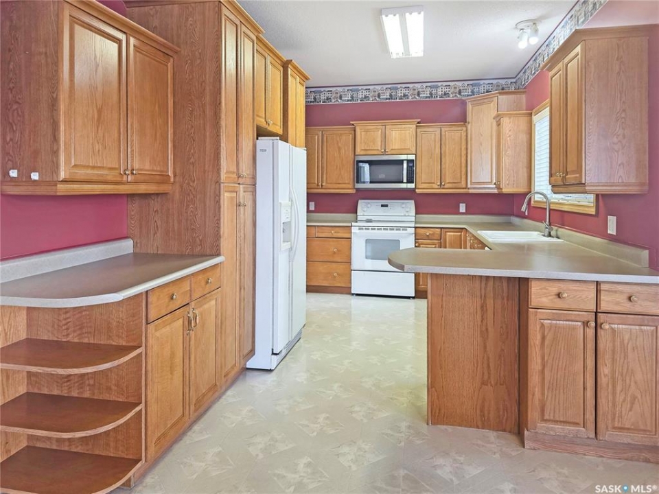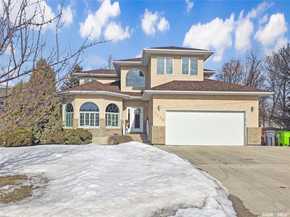 Stunning 2 storey home at 1009 Dewdney Street in Indian Head is waiting for you! Custom built home that perfectly blends style, function & comfort. This 1690 sq. ft. property immediately impresses with its exceptional curb appeal, with triple concrete driveway, two-car attached garage, & tasteful stucco and brick exterior.Step inside the spacious foyer and be greeted by a beautiful half-spiral staircase—a true centrepiece that sets the tone for the home's warm, elegant design.The main floor offers a bright, open-concept living area warmed by a natural gas fireplace & expansive windows that flood the space with natural light. The kitchen features oak cabinetry pantry space, & includes all major appliances—fridge, stove, built-in dishwasher, and microwave range hood. There's also a cozy dining nook,as well as a large formal dining/living area measuring 14' x 26', ideal for entertaining.You'll also find main floor laundry with built-in cabinetry, a two-piece bathroom, and direct access to the garage. One of the home's standout features is a custom built sunroom—a beautiful 13'10” x 18' space finished with vinyl plank flooring and large screened windows overlooking the fully fenced backyard. The yard offers mature trees, shrubs, flower beds, and a storage shed, with two decks on either side of the sunroom.Upstairs, you'll find three generous bedrooms, each accommodating larger furniture. Also includes a 4-piece bathroom & a stunning wood railing overlooking the main foyer and living room below. Primary suite is a true retreat, complete with walk-in closet & a luxurious 5-piece ensuite featuring a soaker tub, large window to enjoy the peace of the backyard views, separate shower, dual sinks.Basement is partially finished and framed, ready for your personal design. It includes rec room space,bedroom,utility room. Built in 1999,this property has been maintained and upgraded, offering both modern comfort and timeless appeal.Come experience this showcase of a home in person!