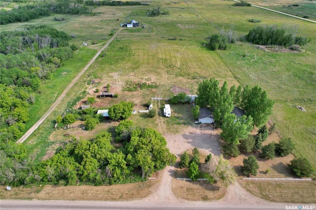 Horse lovers & anyone that wants some space & privacy out of the city but as close & convenient as you can possibly get to it this is the place for you! This beautiful 4.88 Acre well treed & established property is only one mile south of the city! The home is an 1110 SQFT bungalow built in 2007 w amazing vaulted ceilings & huge windows. Open concept kitchen living & dining space gives you treeline & blue sky south facing views! Large country style kitchen features nice oak cabinets, walk-in pantry sit up island & huge dining room space big enough to host large family gatherings. Open concept space is finished off w a great sized living room & if you ask nicely maybe a huge flat screen TV too. Main floor also has a good sized master bedroom w walk-in closet, full 4 piece ensuite and large foyer & 2 piece bath. Downstairs you'll find a large family room, 2 more good sized bedrooms (3rd bedroom requires armoire) 3 piece bath, laundry/mechanical room & separate storage. Outside there are many great entertaining & relaxing spaces with different vibes depending on what you're feeling from the front deck, to rear BBQ firepit patio area, nestled in the trees garden sanctuary, large open field area & of course the large sized C-can man cave! Property is allowed to 2 horses & a pony & has a 3 box stall barn. Other notables include 24'x26' detached garage w 220V power, plumbing roughed in the basement for city water, automatic water for livestock, 2 septic systems & CentralAC. This is a great opportunity to own a beautiful well treed acreage that allows horses as close to the city as you can get! Call your favorite Realtor to book a private viewing today!