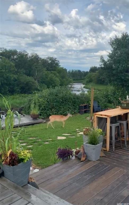 Riverfront Living, Over 15 Acres, 5 Bedrooms, Move-In Ready. Wake up to river views, unwind beside the fire pit under the Northern Lights, and experience true Saskatchewan country living with this immaculate 2009-built family home just minutes from Hudson Bay, SK. Set on 15 scenic acres, this stunning 5-bedroom, 3-bath property combines space, comfort, and breathtaking natural surroundings. From the moment you step inside, vaulted ceilings, expansive windows, and a striking three-sided fireplace create a bright, welcoming atmosphere designed for both everyday living and entertaining. The fully finished home features in-floor heat on both levels, including the attached double garage(12'x24' &12'x26') to fit those longer vehicles as well, ensuring year-round comfort. The main floor offers convenient laundry and opens from the dining area onto a large deck overlooking the river — the perfect place to relax, host guests, or simply enjoy the view. A versatile detached workshop/guest house adds exceptional value, complete with its own river-facing deck — ideal for visitors, hobbies, or additional living space. Home Highlights, 5 Bedrooms | 3 Bathrooms, Vaulted ceilings & large sun-filled windows, Three-sided fireplace centerpiece, In-floor heating (home & attached double garage), Spacious primary suite with walk-in closet & 3-piece ensuite with soaker tub, Additional 4-piece bath on main & 3-piece bath downstairs, Central air conditioning (air-to-air system), Central vacuum system, Reverse osmosis water system with well supply, Septic tank with field system, All appliances included,Located on a school bus route to the K–12 school (built in 2015), this property offers the perfect balance of privacy and convenience. Wildlife lovers will appreciate frequent sightings of whitetail deer, moose, elk, bear, geese, and ducks right outside your door. Space. Privacy. Riverfront views. Move-in ready comfort.This is more than a home — it's a lifestyle.