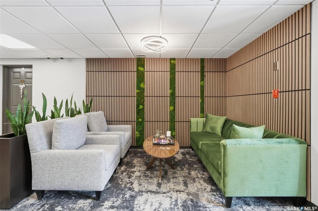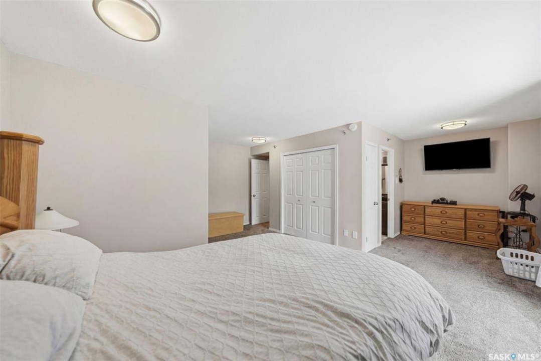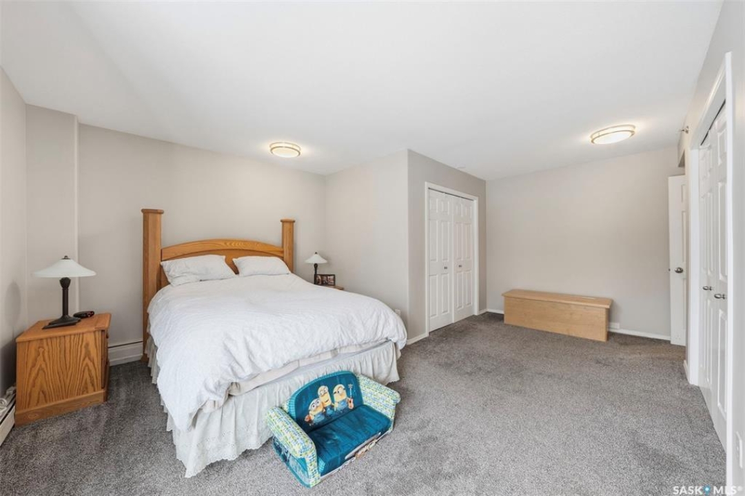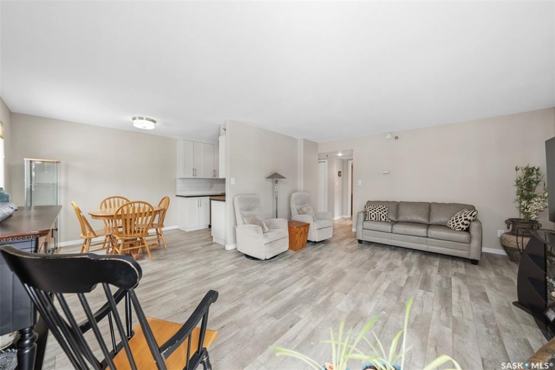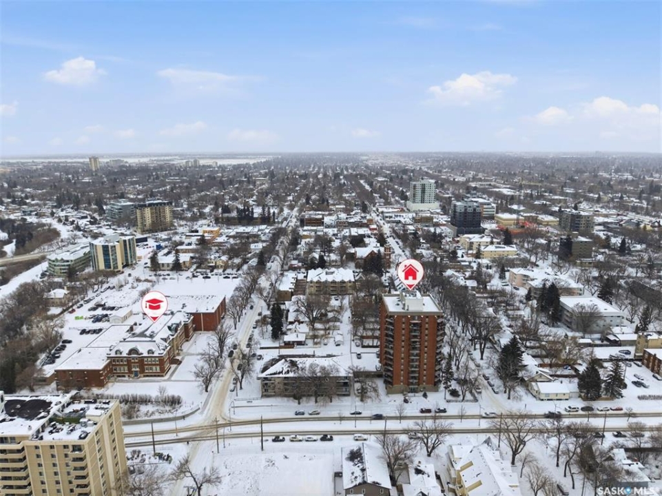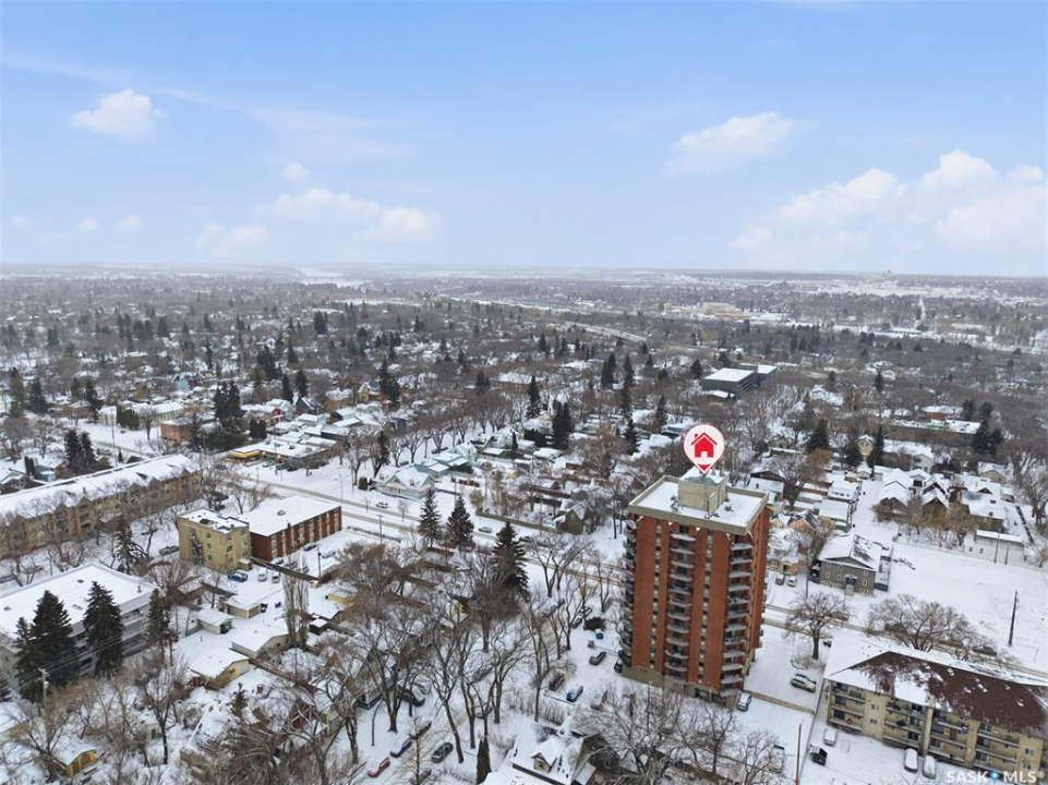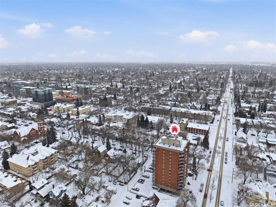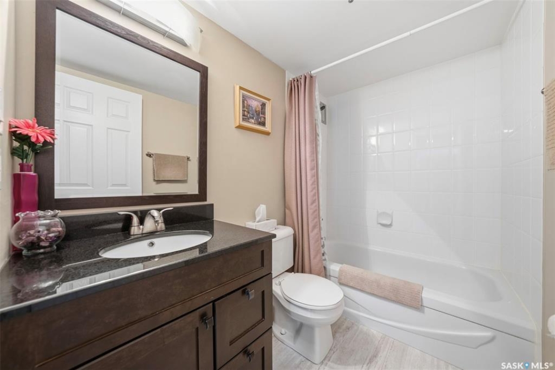 Amazing location on this fully renovated 2-bedroom, 2-bathroom condo in the heart of Nutana! This move-in-ready unit boasts two private balconies and two parking stalls for convenience and outdoor space. This unit has been updated in meticulous detail, including upgraded vinyl flooring and carpet throughout, refreshed lighting, trim, paint, baseboards, and doors. The kitchen has been completely redone with white cabinetry, a modern backsplash, upgraded countertops, and stainless steel appliances. The kitchen flows seamlessly into the dining area and living area. The large living room flows to the east facing deck, perfect for relaxing or entertaining. The primary bedroom is generously sized and includes double closets and a 4-piece en-suite, and its own private deck, while the secondary bedroom is also spacious and adjacent to the full main bathroom. A large laundry and storage room provide practical space for everyday living. Upgraded windows, doors, and blinds enhance the bright, open feel of the home, while a newer wall-mounted air conditioning unit keeps the space comfortable year-round. Residents enjoy building amenities such as a meeting room, gym, and sauna. The quiet, concrete building offers both privacy and durability. This building features recently replaced elevators and a redone entry and foyer. Ideally located just steps from the South Saskatchewan River, this condo is also close to restaurants, local shops, and the University of Saskatchewan. Perfect for those seeking a stylish, turn-key home in a vibrant, convenient neighborhood, this fully renovated Nutana condo is ready for you to move in and enjoy. Don't miss this opportunity to own a modern, updated condo in one of Saskatoon's most desirable areas!