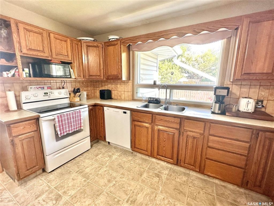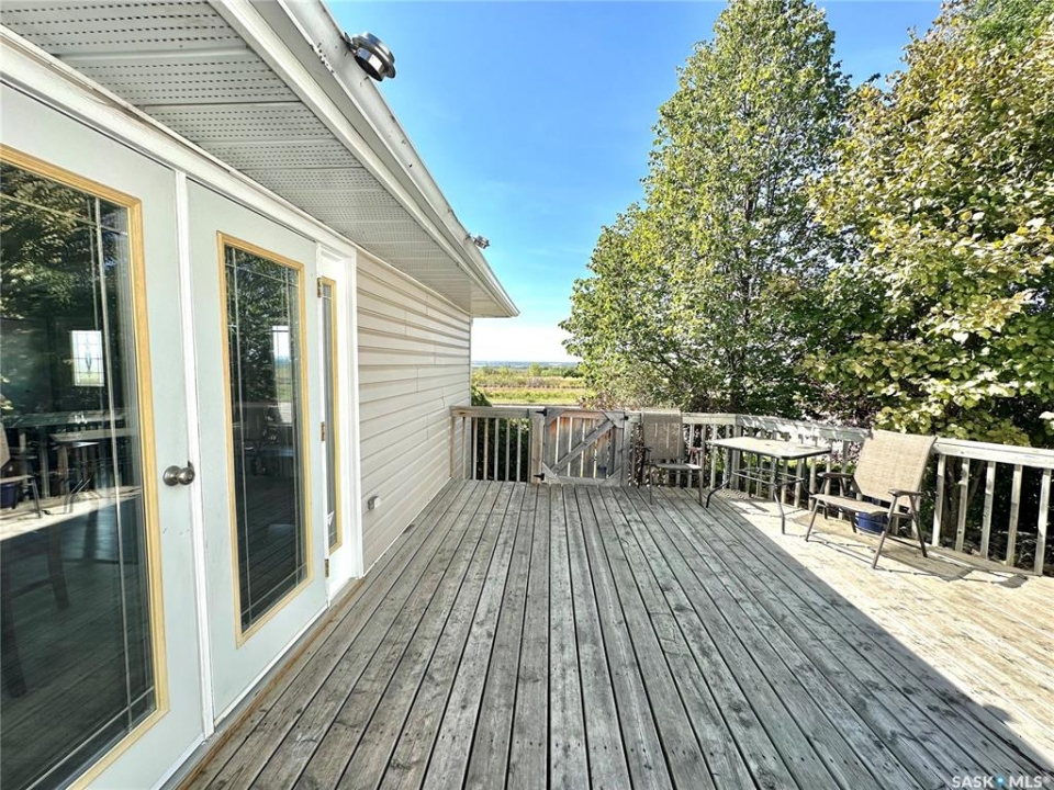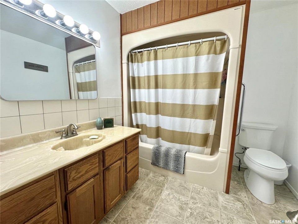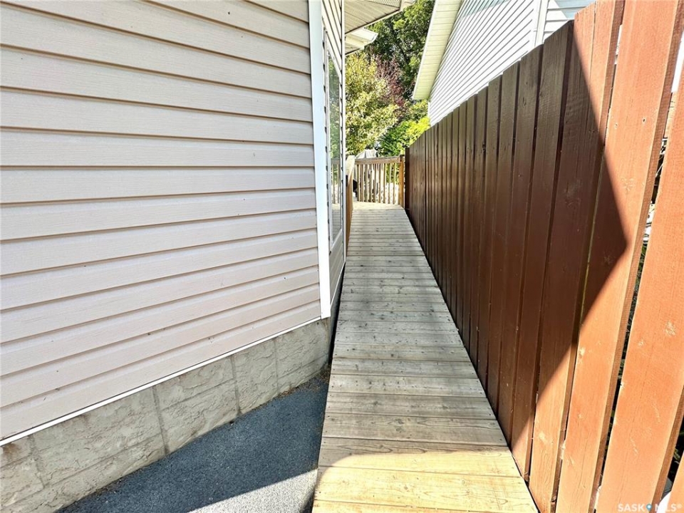 This beautiful home is situated on an oversized lot in sought-after West North Battleford, close to downtown and walking distance to schools. Upon entry, you will notice the bright and functional layout. The living room has a large bay window allowing for plenty of natural light and it has unobstructed views of the southern skyline. The kitchen and dining room have an open floor plan, and off the dining room you'll find patio doors that lead to the large deck with wheelchair accessibility. On the main floor are three generous sized bedrooms, a full bathroom, as well as the convenience of main floor laundry. The home has been modified to allow for wheelchair access with the main floor bathroom having an oversized door and a ramp added from the backyard up to the side deck. There is a mudroom off of the back entry with plenty of space for a freezer and all your families extras. The downstairs was recently renovated, and has new vinyl flooring, paint and baseboards. There's a three-quarter bath and den as well as an updated furnace and water heater. The furnace room has additional space for storage and vinyl flooring throughout . The mature and beautifully landscaped backyard features a pond, a patio area which is nicely shaded, a rubber paved patio space off the back entry and so much room for the kids to play. The insulated garage is 24' x 24' with new garage doors and openers. There is also plenty of extra space to the east side of the driveway, which could make for a great garden area or additional parking. Additional updates include a new water softener and shingles were replaced in 2017. The property offers 163' of frontage with panoramic views of the river valley, stunning sunsets, and a great views of the fireworks! Call for your showing today, you don't want miss out on this home.