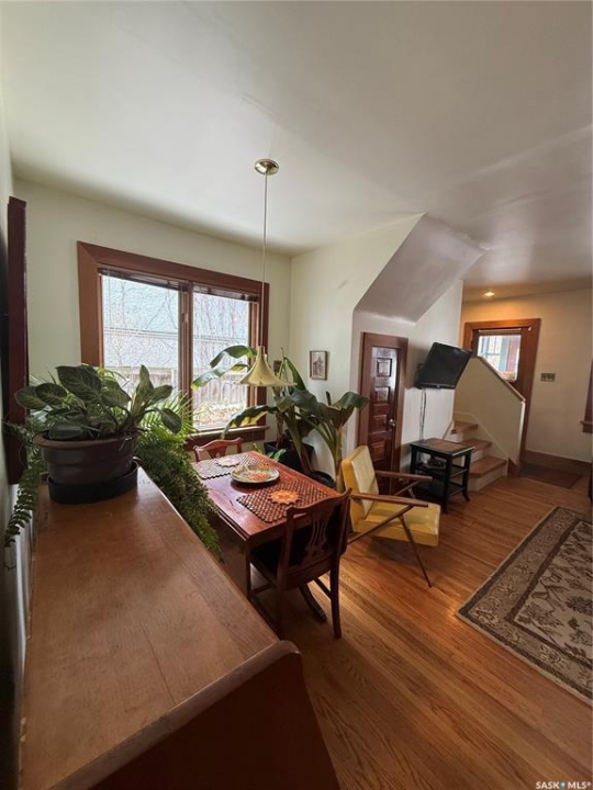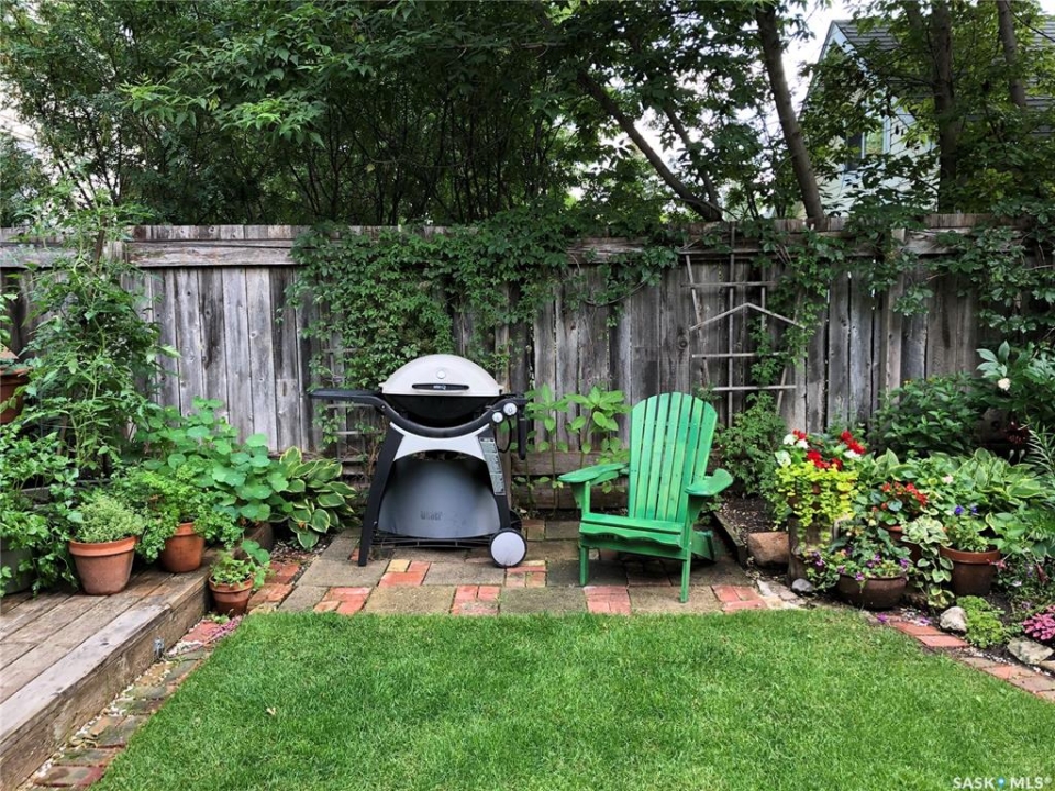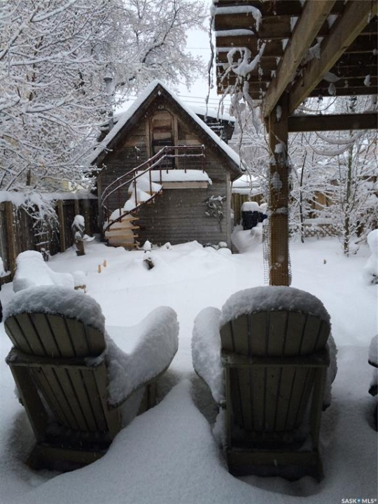 Charming character home in one of Saskatoon's most sought-after neighbourhoods — welcome to Buena Vista. From the moment you arrive, the enclosed front veranda draws you in, offering a cozy spot to relax beneath a canopy of beautiful mature trees on one of the area's most beloved streets. Step inside to a warm and inviting living room featuring built-in bookshelves and a charming mantle area that captures everything you love about character home living. The fully renovated kitchen (2018) comes with updated appliances — F/S, Dishwasher — stainless steel countertops flanking the stove, a stainless steel backsplash above, and a stunning stainless steel hood fan that anchors the space. A breakfast bar adds a casual dining option, garden doors off the kitchen lead you directly to the back deck — where a capped gas line is ready for barbecue hookup — and a convenient pantry keeps everything within easy reach. Upstairs, you'll find both bedrooms along with a generous den area nestled between them — a flexible space perfect for a home office, reading nook, or hobby room. Both bedrooms feature engineered hardwood flooring, and the den carries warm wood flooring throughout. The primary bedroom features a 2-piece ensuite, while the beautifully appointed 4-piece bath — fully renovated in 2019. The home has been well maintained with new shingles (2020), a new water heater (2025), and a new washer and dryer (2024) — all included. Step out back to a backyard that truly delivers — a covered deck attached to the home, lush grass kept effortlessly green by underground sprinklers (rear yard), and an abundance of established perennials that put on a show every season. The 12' × 20' single detached garage is topped with a finished, insulated three-season loft — ideal as an art studio, home office, or creative retreat. The AlarmTech security system is paid out and stays with the home.Preferred Possession available June 1st /26. A rare find in Buena Vista. Listed at $448,900 mls
