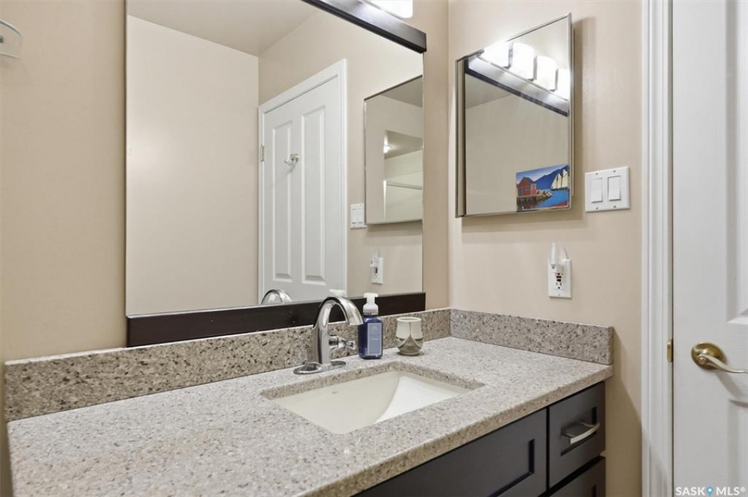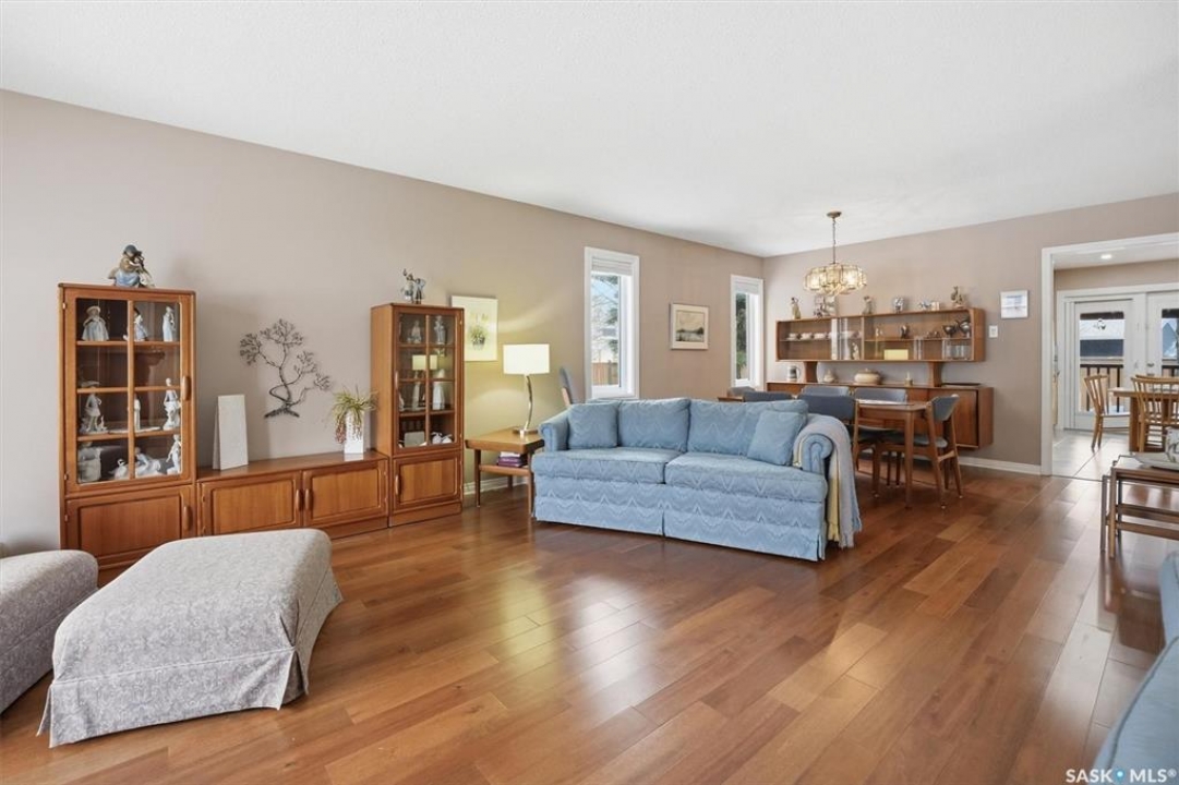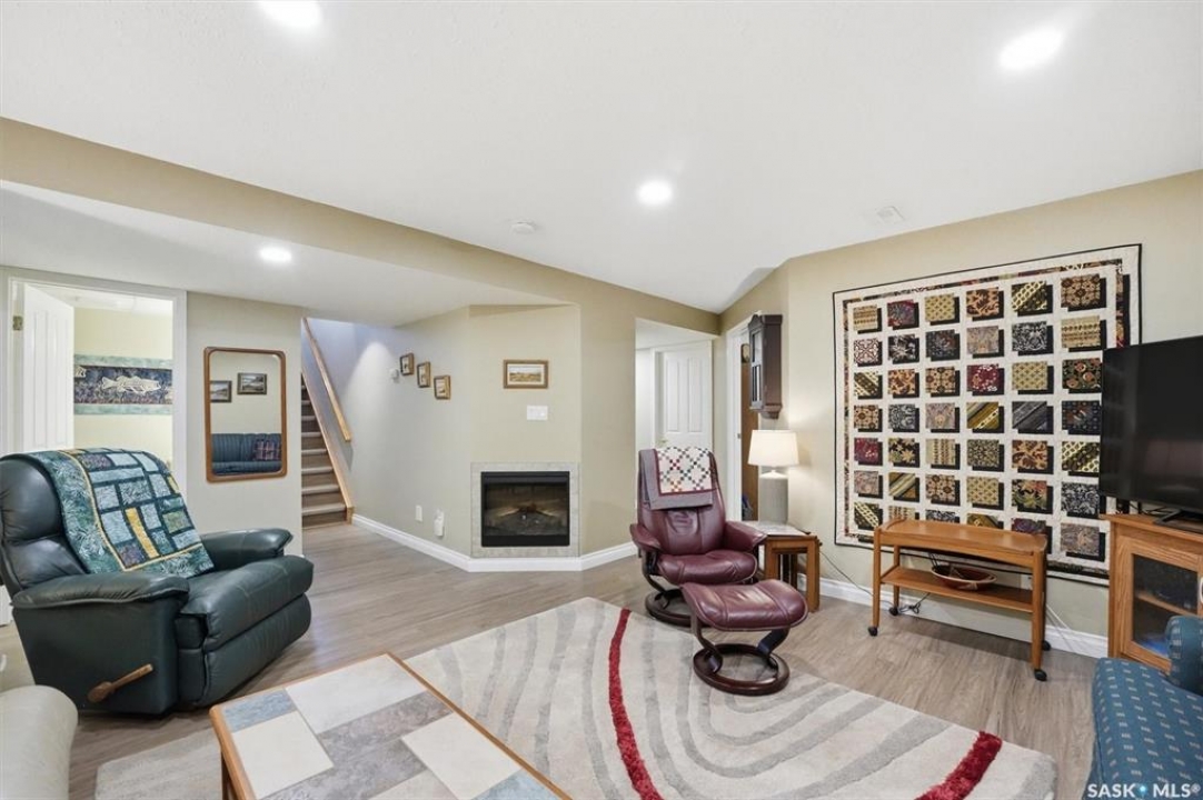 Step inside the generous entry to this immaculate home and you will immediately appreciate the light filled living area complimented with East and South exposure. This END UNIT BUNGALOW is tucked away in the back corner of LAKEWOOD VILLAGE giving it a spacious, semi private side and back yard. NUMEROUS QUALITY renovations and up-grades were completed when the owners took possession including replacing the flooring, re-imagining the kitchen to make the eating area more comfortable, adding cabinets and improving the flow through to the west-facing, covered deck. The kitchen cabinets were replaced with REDL manufactured flat OAK floor to ceiling units with a honey oak stain, while the dishwasher was re-located away from the stove and an additional bank of cabinets was added. Also featured is a tile back splash and under cabinet lighting. The stainless steel fridge, range and dishwasher (new in 2023) are included. The living/dining area features quality engineered Acacia hardwood, with luxury vinyl tile flooring in the kitchen and baths. You will appreciate the large West-facing primary bedroom with it's walk-in closet and 3 piece ensuite bath. The second bedroom and up-graded 4 piece bath complete the main floor. The fully developed lower level features a generous family room with electric fireplace, office, large workshop, roomy laundry/craft room with numerous cabinets, dedicated storage, 2 piece bath and utility room. Flooring in the majority of the lower level is luxury vinyl plank with linoleum in the laundry/craft area. The front entry was re-designed to create double closets with the direct entry to the insulated, single garage between them. The windows have been up-graded to low maintenance triple glaze units. This may be the premier location in the complex, traffic noise buffered, no houses directly behind and the green space available to the back and South side. Presentation of offers Saturday April 4th at 4 pm. Contact your Real Estate Professional to view.
