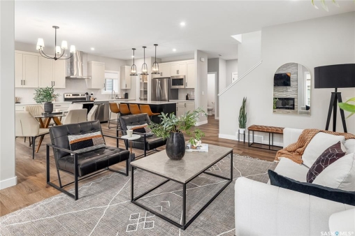 Welcome to the Starkenberg, a beautifully designed 2-storey home located in the growing community of Pilot Butte. Built in 2026 by Ehrenburg Homes, this spacious property offers 2,277 sq ft of thoughtfully designed living space with modern finishes throughout. The main floor features an open-concept layout with a bright and inviting living room, a generous dining area, and a stylish kitchen complete with island and ample cabinetry — perfect for both everyday living and entertaining. A functional mudroom and convenient 2-piece bathroom complete the main level. Upstairs, you'll find a large primary bedroom with a luxurious 5-piece ensuite, along with three additional bedrooms, a full 4-piece bathroom, a bonus room, and second-floor laundry for added convenience. The basement is undeveloped, offering excellent potential for future development to suit your needs. Situated on a generous 5,600 sq ft lot, this home features a 4-car attached garage, ample off-street parking, and a deck—perfect for outdoor entertaining and relaxing. Located just minutes from Regina, Pilot Butte offers a quiet, family-friendly setting with easy access to city amenities. Don't miss your opportunity to own a brand-new home with space, style, and functionality in a desirable community! (PST/GST are included within purchase price). Note: Interior photos are from a previous build. Same model but some colours may vary.