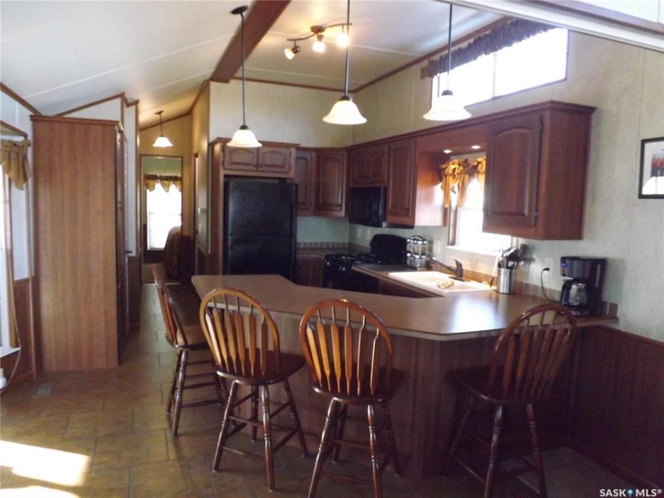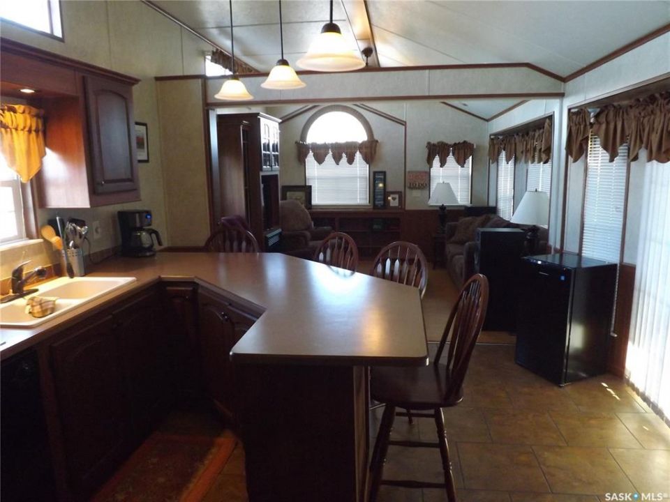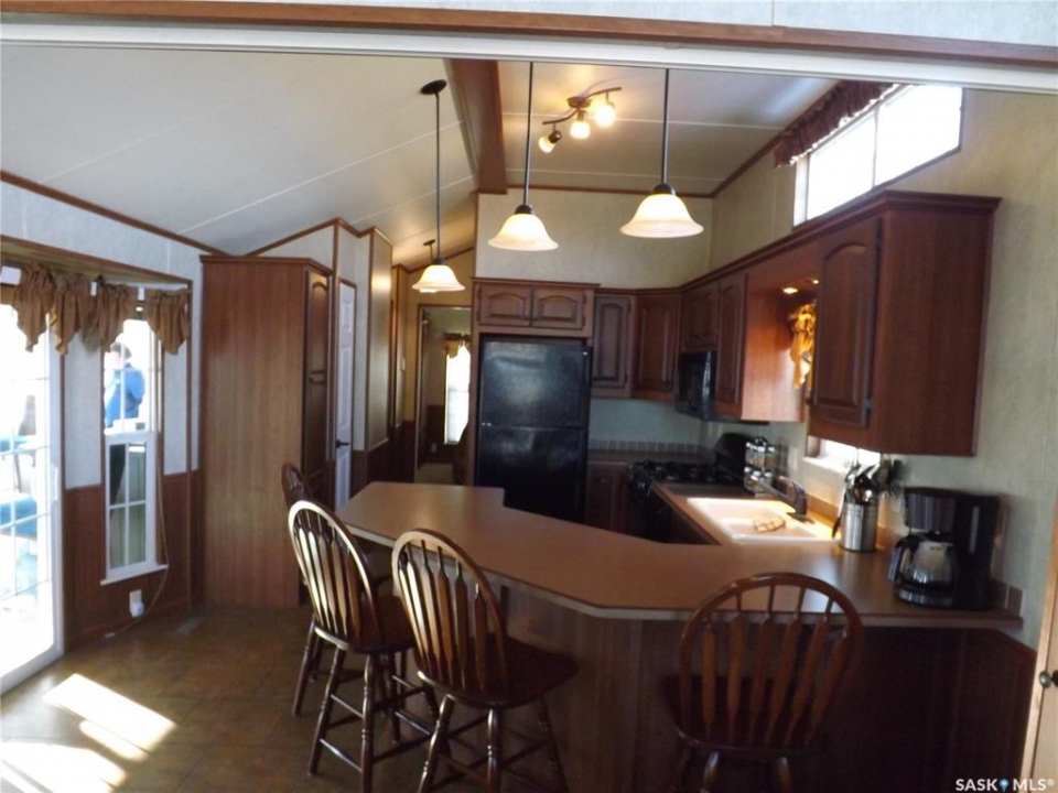 If living at the Lake all year round with walking distance to golf coarse, marina and camp ground is for you... here it is! This cozy cabin has a good size kitchen with lots of cupboard space and large eating island. Living room has a built in entertainment center and built in wall divider for privacy when family or friends want to stay over night. Master bedroom is a good size with built in cupboards and closets. Bathroom also has a lot of cupboards and storage space. This cabin also features a large attached closed in deck with radiant heat which is excellent for entertaining all year round. Very large lot with room for your RV, camper, boat and any other toys you might have.... also a plug in outlet for your camper. Large attached heated storage shed for water system and plenty of room for all of your boating and fishing equipment and golf clubs. Central Air. If moving to the Lake is your Dream.... Lets make it a reality for you!