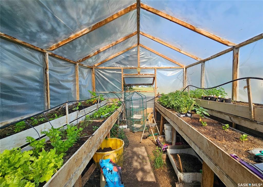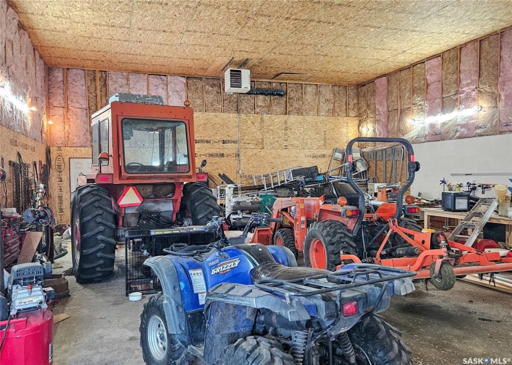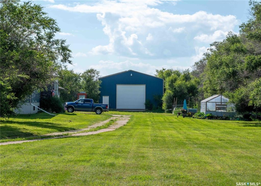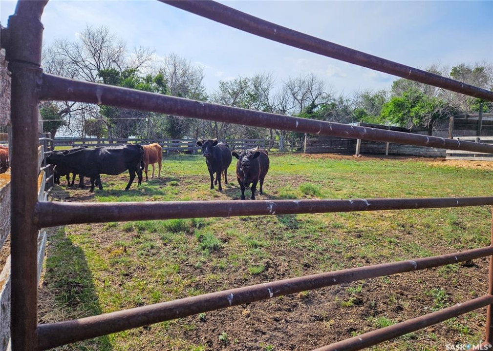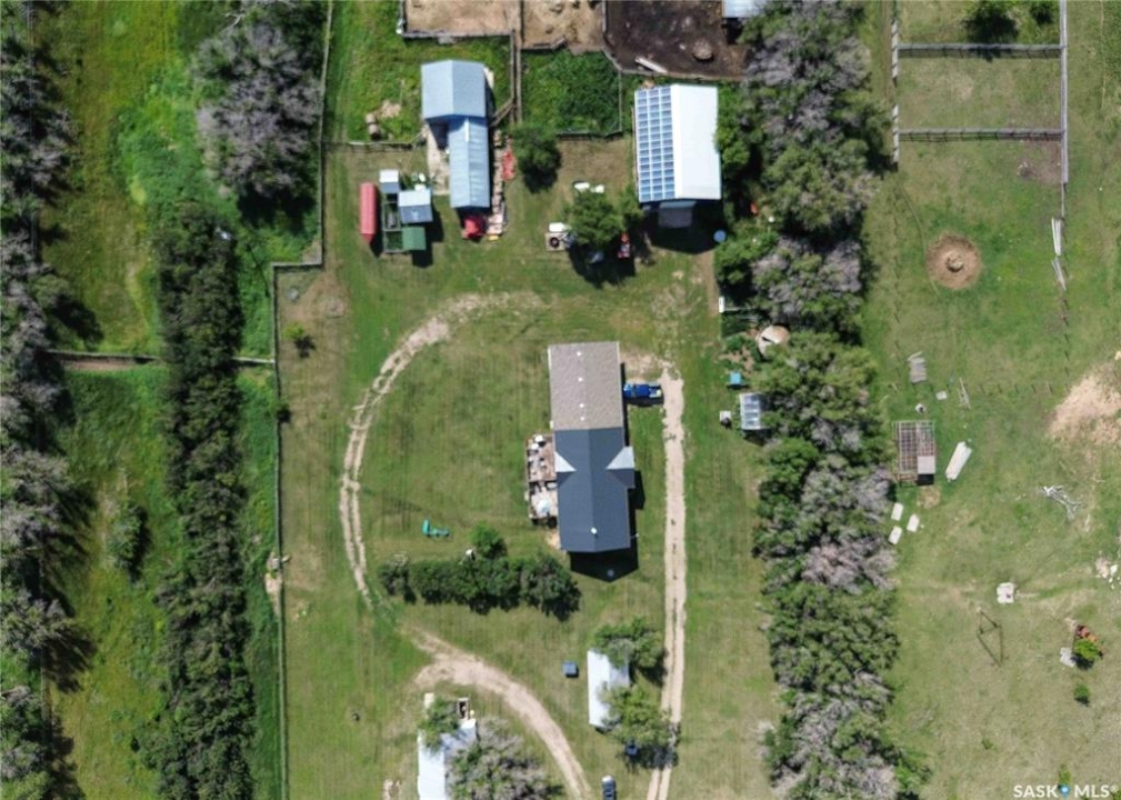 Located just minutes south of Milden and right on the pavement, this versatile quarter section features two homes, multiple outbuildings, and everything you need for a mixed farm or hobby operation. The main home, built in 2008, offers 1,788 sq ft of well designed living space on a fully finished ICF basement, along with an attached double garage. A heated mudroom/breezeway connects the home and garage—perfect for farm dogs, boots, and outerwear. Inside, a spacious kitchen with island and pantry flows into a generous dining area with garden doors leading to a two tier deck. The front door opens to a small balcony, adding another charming outdoor space. Down the hall is a 4 pc bath, and three bedrooms, one of which is the primary suite with its own 3 pc ensuite. A convenient main floor laundry with 2 pc bath is located just off the kitchen. The lower level features in floor heat, two additional bedrooms, a 4 pc bath, and a large family room. -- A separate 864 sq ft residence on a full basement offers two bedrooms, one bath, and its own garage. With its own power meter, it's an excellent option for rental income, hired help, or extended family. -- West of the home sits a 36' x 50' heated shop with an overhead door large enough for a semi. The exterior is equipped with 63 solar panels that feed back to the grid, offsetting roughly 10 months of electricity costs each year. A second smaller shop with overhead door connects to a compact calving barn with hay storage and direct access to the corrals. Additional structures include multiple sheds, a well house, a small greenhouse, run in shelters, and bins. The property has two wells and four livestock watering bowls. The quarter is partially fenced, with much of the land currently in hay production. Smaller pastures near the yard are ideal for keeping livestock close to the handling facilities and shelters.