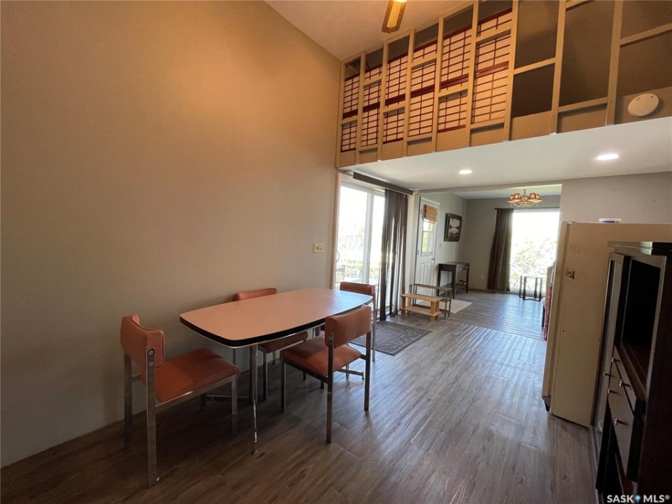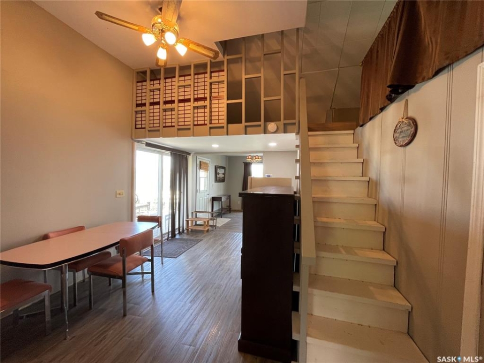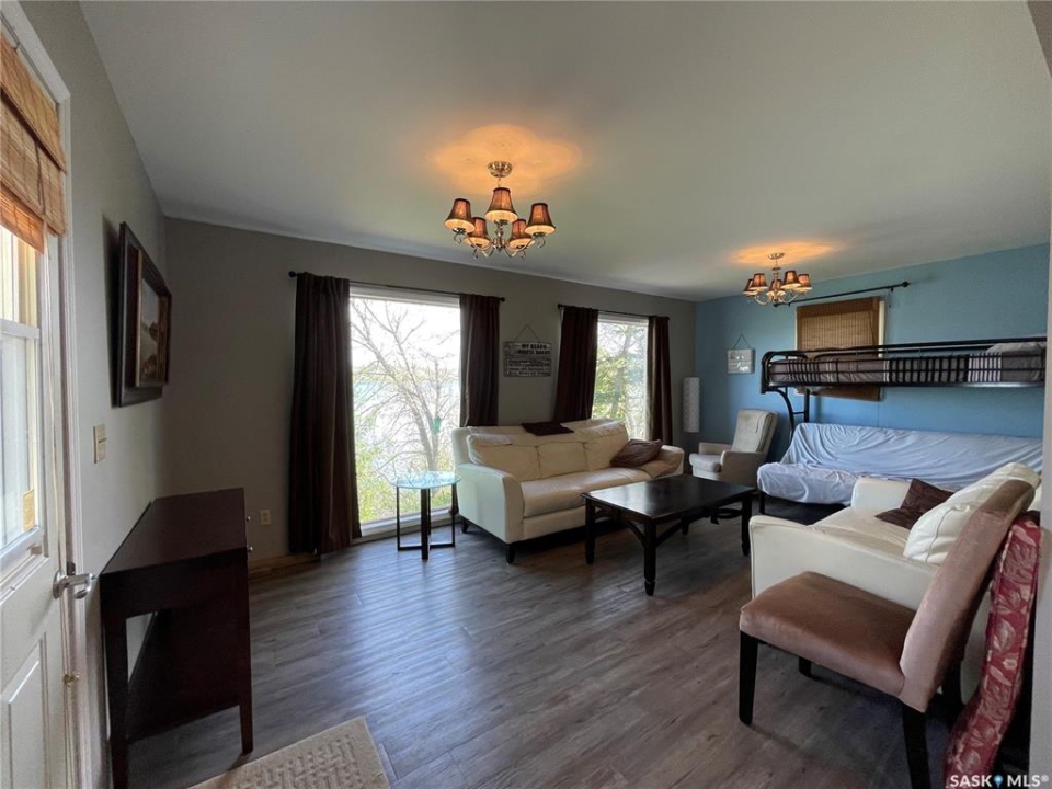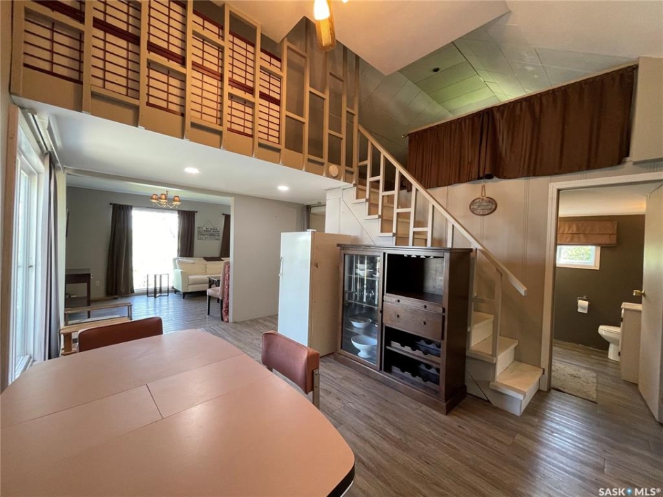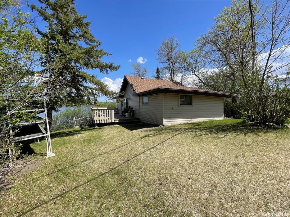 Lakefront Retreat in Sun Valley – Buffalo Pound Lake Don't miss your chance to own this fantastic lakefront property in the desirable community of Sun Valley at Buffalo Pound Lake! This spacious 3-season cabin offers breathtaking panoramic views of the water, which you can enjoy from the expansive front deck or the cozy comfort of the cabin itself. Inside, you'll find a generous living room that flows into a bright dining area, a versatile den that doubles as a bunk room, a well-equiped kitchen, a 3-piece bathroom, and a comfortable main-floor bedroom complete the main floor. Upstairs, the second level features an additional bedroom and a charming loft space perfect for relaxing or extra sleeping or storage. The large lot provides plenty of parking, ample storage, and space for outdoor fun and entertaining. A SaskEnergy natural gas line has already been brought to the front of the property, making it easier to convert this into a year-round getaway. To top it off, the property comes fully equipped with a dock and boat lift—just bring your water toys and start enjoying lake life! Whether you're looking for a peaceful escape or a place to make summer memories, this is the opportunity you've been waiting for!