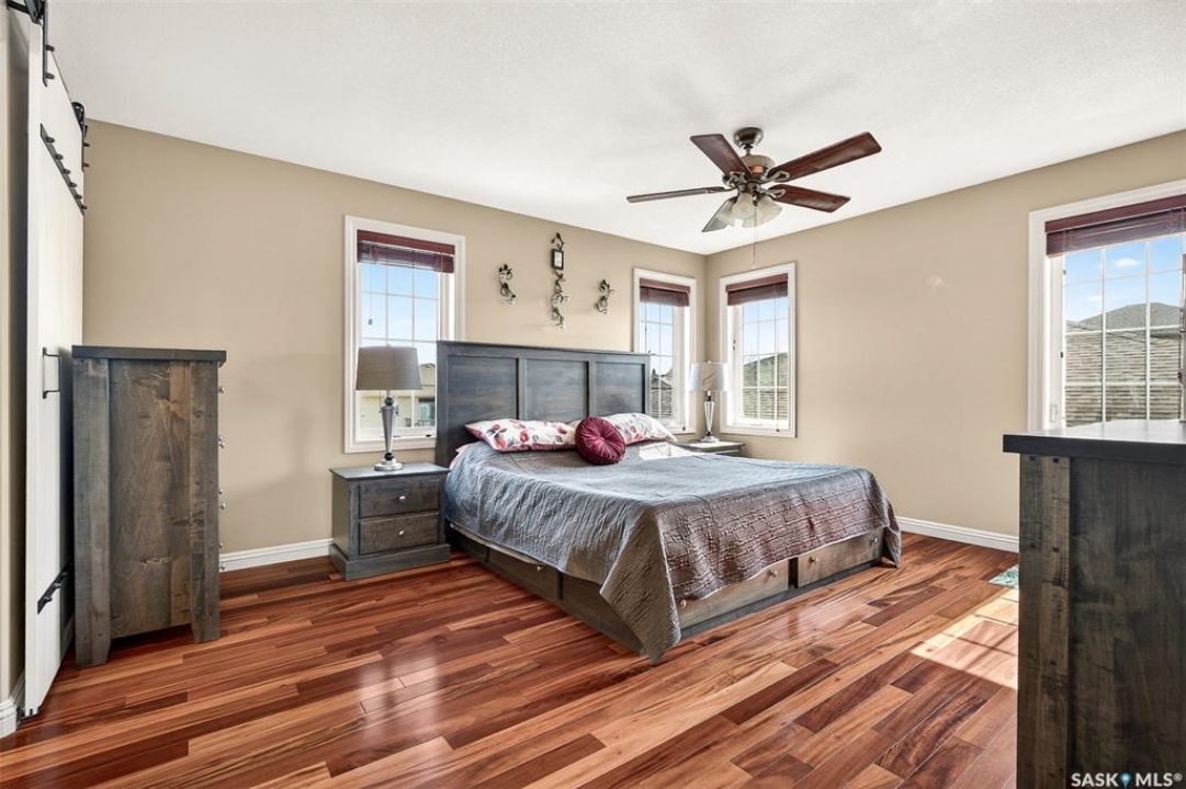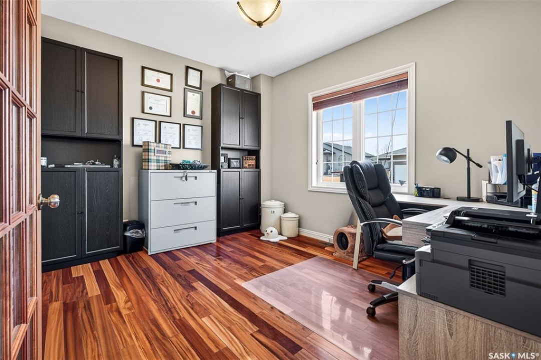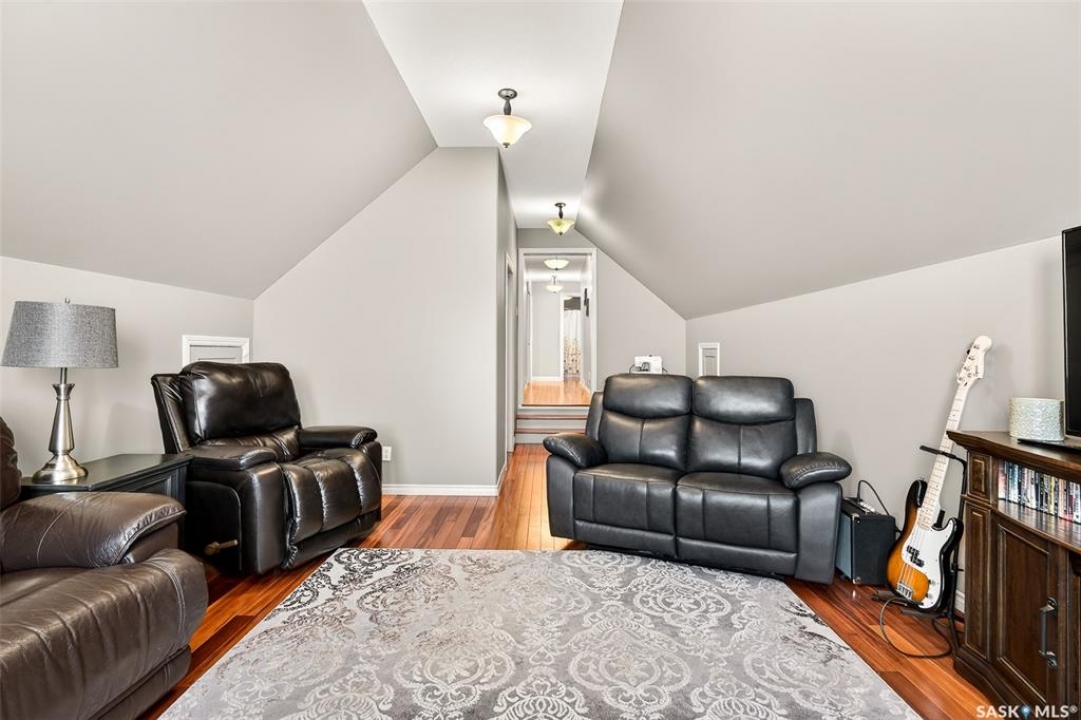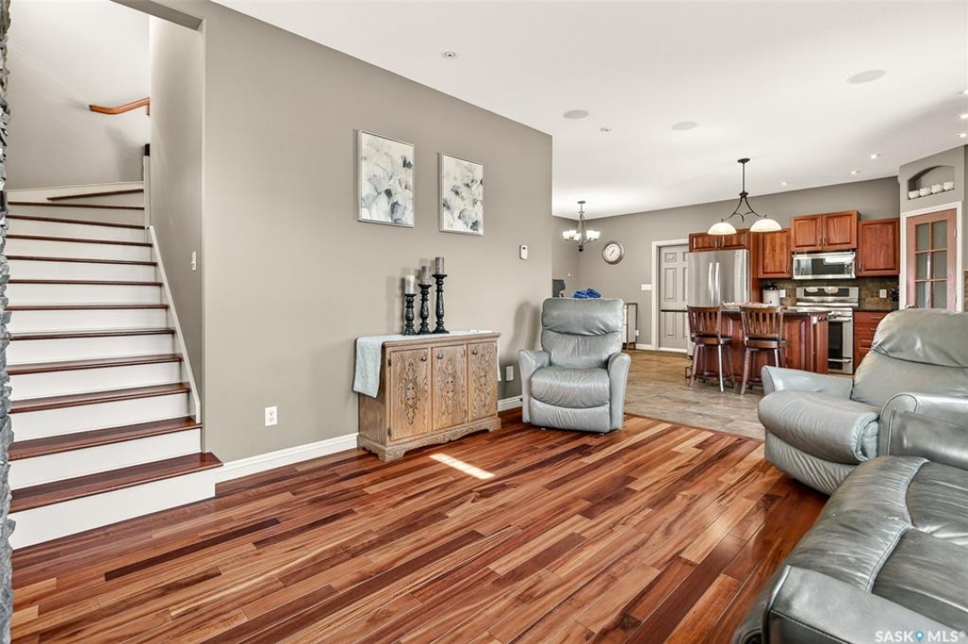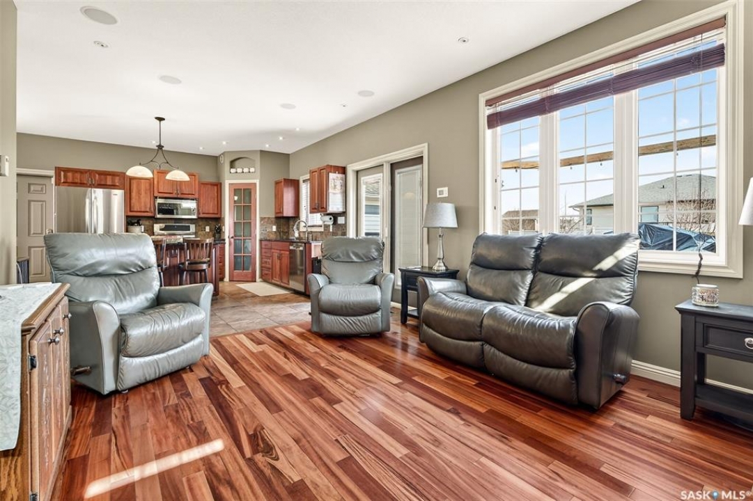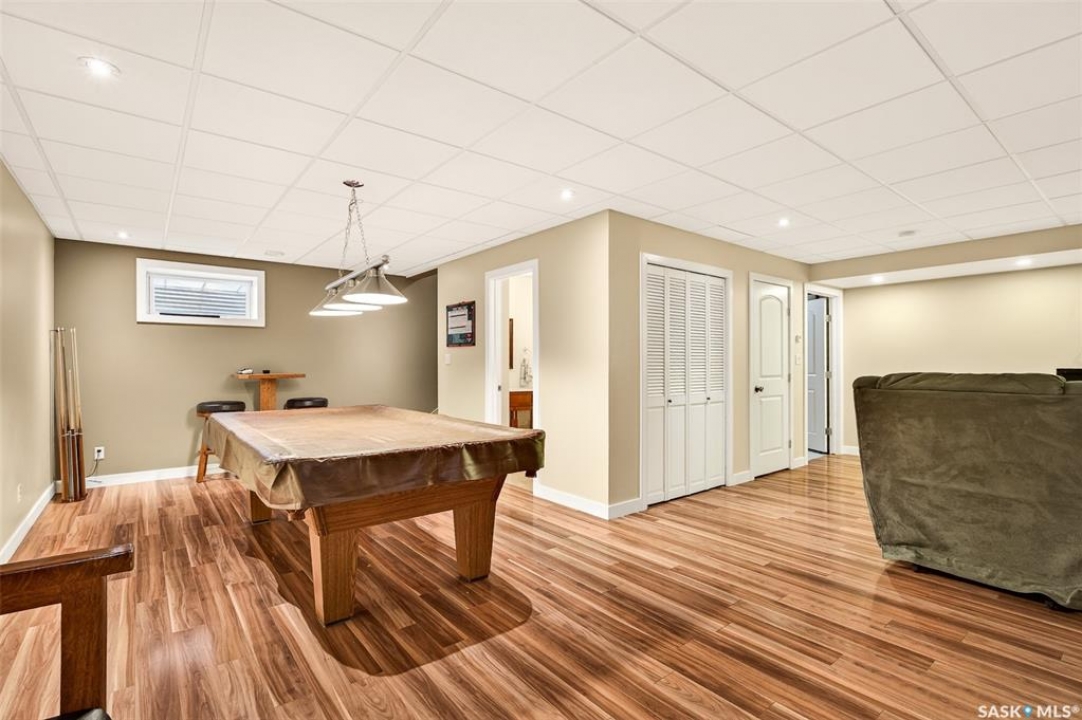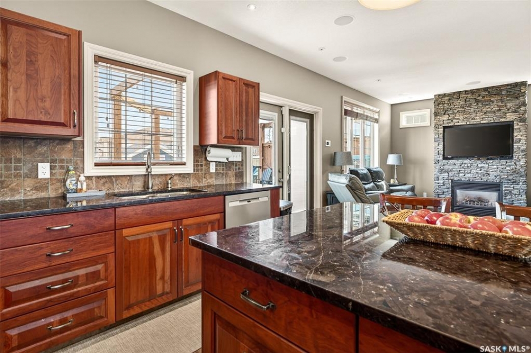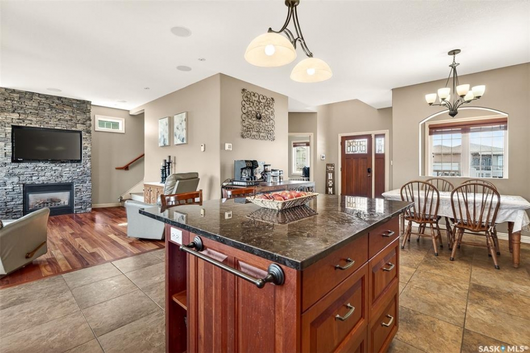 WHAT. A. BEAUTIFUL. HOME. CUSTOM DESIGNED TWO-STOREY within walking distance to the new JOINT-USE ELEMENTARY SCHOOL. An impressive layout, offering 3 BEDROOMS UP, plus a bonus bedroom/flex/office space on the main level. Features DIRECT-ENTRY, IN-FLOOR HEATED 24' x 40' GARAGE, with dedicated WORKSHOP/GYM area INCLUDING a 2-PIECE BATH. The ‘park-like' outdoor living space is equally remarkable, highlighted by a lower-level BRICK PATIO with a built-in cooking centre and concrete island, complete with a natural gas BBQ and an AUTHENTIC PIZZA OVEN crafted with imported Italian masonry. The home boasts excellent curb appeal with durable HARDIE fibre-cement siding, a welcoming COVERED FRONT PORCH, and a spacious front entry that opens into a bright, open-concept living, dining, & kitchen area. The kitchen showcases custom cherry wood cabinetry, GRANITE countertops, and a convenient corner pantry. Elegant tile (IN-FLOOR HEAT under main floor tile) and Brazilian TIGERWOOD flooring flow throughout most of the main and second levels. Upstairs, you'll find a versatile BONUS SPACE, with dedicated 2nd FLOOR LAUNDRY room. A luxurious PRIMARY SUITE with a spa-like ENSUITE and spacious WALK-IN CLOSET rounds out this large 2nd level. The fully developed lower level offers cozy IN-FLOOR HEATING and a generous family/rec room complete with a wet bar and pool table (included), perfect for entertaining and hosting. Completing the home is a built-in audio system with smartphone compatibility, featuring integrated audio both inside and outdoors. A ONE-OF-A-KIND PROPERTY. Priced to sell. Book your viewing today!