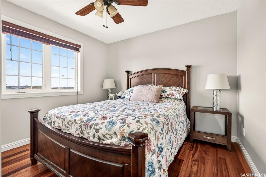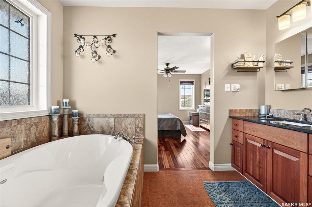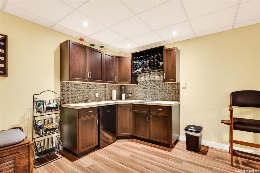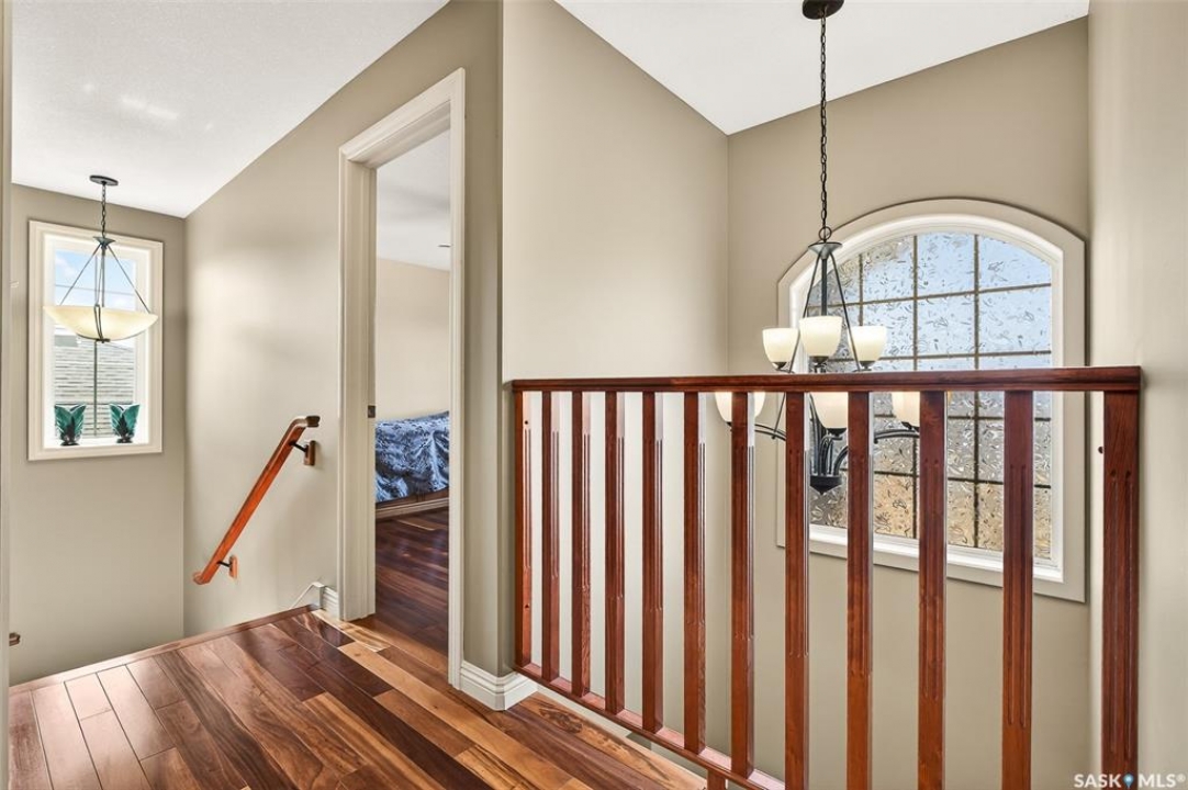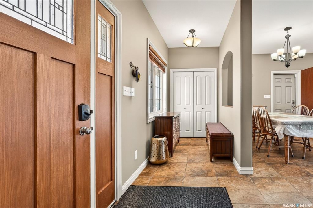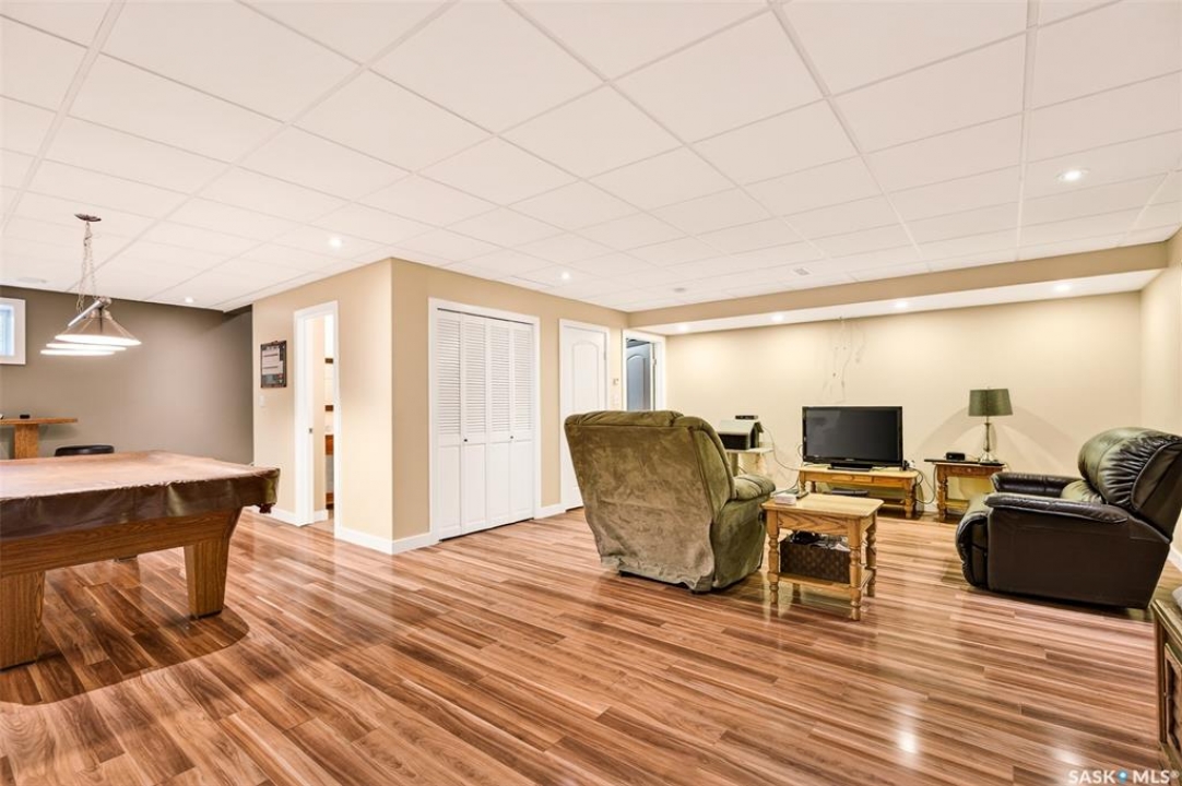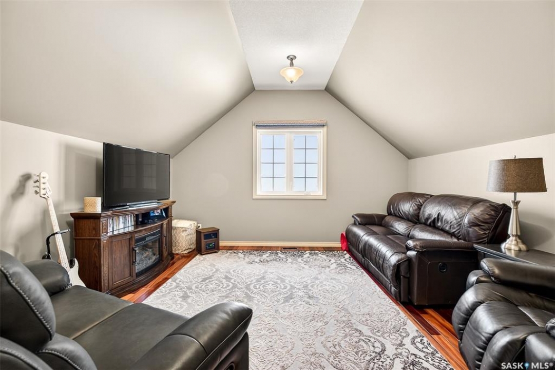 WHAT. A. BEAUTIFUL. HOME. CUSTOM DESIGNED TWO-STOREY within walking distance to the new JOINT-USE ELEMENTARY SCHOOL. An impressive layout, offering 3 BEDROOMS UP, plus a bonus bedroom/flex/office space on the main level. Features DIRECT-ENTRY, IN-FLOOR HEATED 24' x 40' GARAGE, with dedicated WORKSHOP/GYM area INCLUDING a 2-PIECE BATH. The ‘park-like' outdoor living space is equally remarkable, highlighted by a lower-level BRICK PATIO with a built-in cooking centre and concrete island, complete with a natural gas BBQ and an AUTHENTIC PIZZA OVEN crafted with imported Italian masonry. The home boasts excellent curb appeal with durable HARDIE fibre-cement siding, a welcoming COVERED FRONT PORCH, and a spacious front entry that opens into a bright, open-concept living, dining, & kitchen area. The kitchen showcases custom cherry wood cabinetry, GRANITE countertops, and a convenient corner pantry. Elegant tile (IN-FLOOR HEAT under main floor tile) and Brazilian TIGERWOOD flooring flow throughout most of the main and second levels. Upstairs, you'll find a versatile BONUS SPACE, with dedicated 2nd FLOOR LAUNDRY room. A luxurious PRIMARY SUITE with a spa-like ENSUITE and spacious WALK-IN CLOSET rounds out this large 2nd level. The fully developed lower level offers cozy IN-FLOOR HEATING and a generous family/rec room complete with a wet bar and pool table (included), perfect for entertaining and hosting. Completing the home is a built-in audio system with smartphone compatibility, featuring integrated audio both inside and outdoors. A ONE-OF-A-KIND PROPERTY. Priced to sell. Book your viewing today!