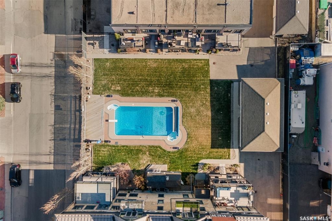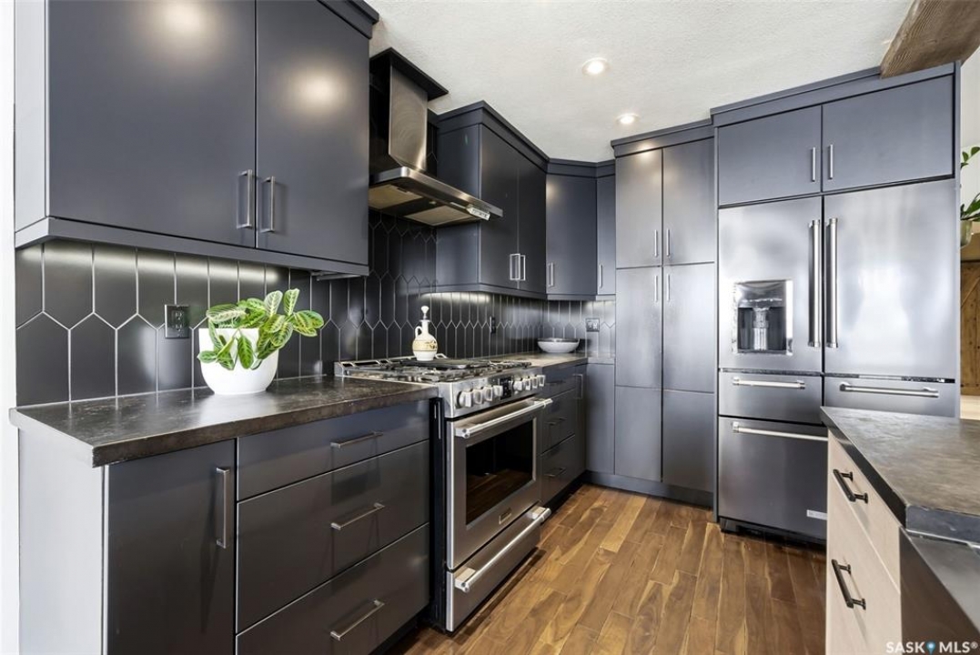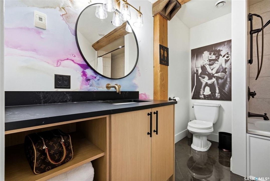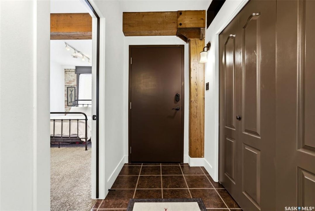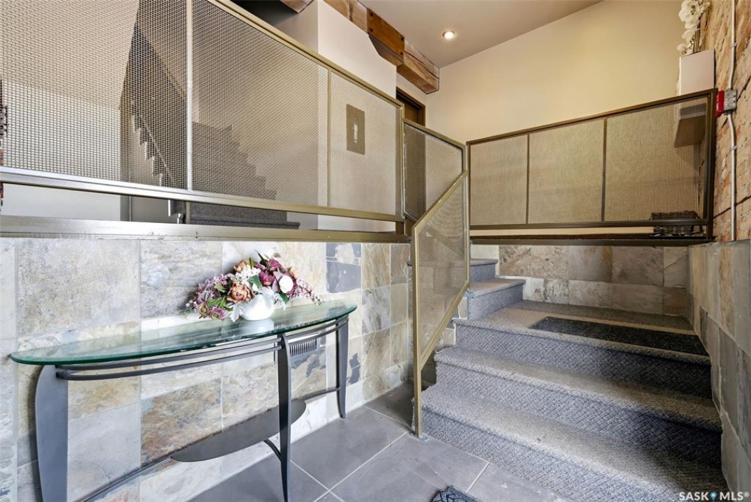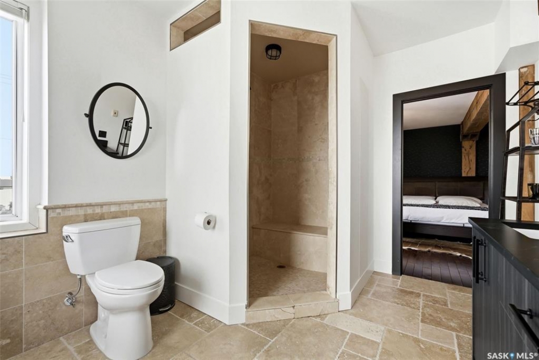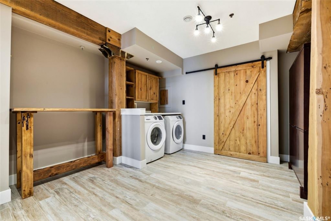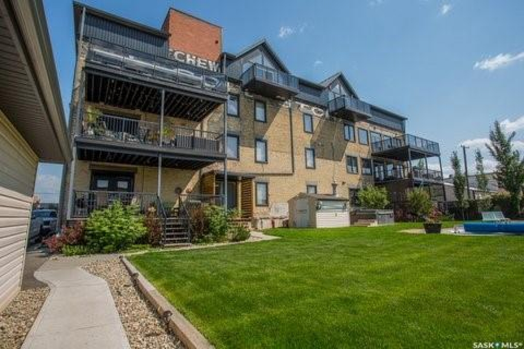 Located in Regina's Warehouse District, this stunning one-of-kind loft delivers a rare blend of character, space, and modern updates. The open-concept design features two distinct living areas, formal dining space, and beautifully updated kitchen—all anchored by rich American walnut hardwood and framed by original exposed brick and beam construction. The space feels both effortlessly cool & very functional. South & west-facing exposures flood the space with natural light while offering views of the downtown skyline, and our iconic prairie sunsets. The spacious primary suite features a walk-in closet and an updated ensuite complete with soaker tub, custom tile shower, & double vanity. The 2nd bedroom also includes a walk-in closet w/custom organizers. The main bath has also been updated, elevating everyday comfort with heated floors and a jetted tub/shower combo. The kitchen is both stylish & functional, showcasing updated dark-stained Gun Metal Blue maple cabinetry, concrete countertops, stainless appliances, tiled backsplash & statement feature wall by Justine Marie Studios. The solid wood stand-up eating bar creates the perfect hub for hosting. And we can't forget about the newly added sleek glass-front wine cellar—an elegant focal point for entertaining and display. A versatile laundry/bonus room offers flexibility for a home office, den, guest space, or gym. Step outside to your impressive 19' x 23' private deck complete with a natural gas BBQ hookup, water line for plants, low-maintenance decking, and electronic sunshades. This outdoor space overlooks the landscaped courtyard & pool shared by only nine owners. Highlights include: Double detached garage + parking stall inside the gated compound; large basement storage unit; Updated appliances (KitchenAid French Door fridge & dishwasher); Owned water heater; Updated lighting, paint & remote blinds throughout. Contact your agent to schedule your private viewing.