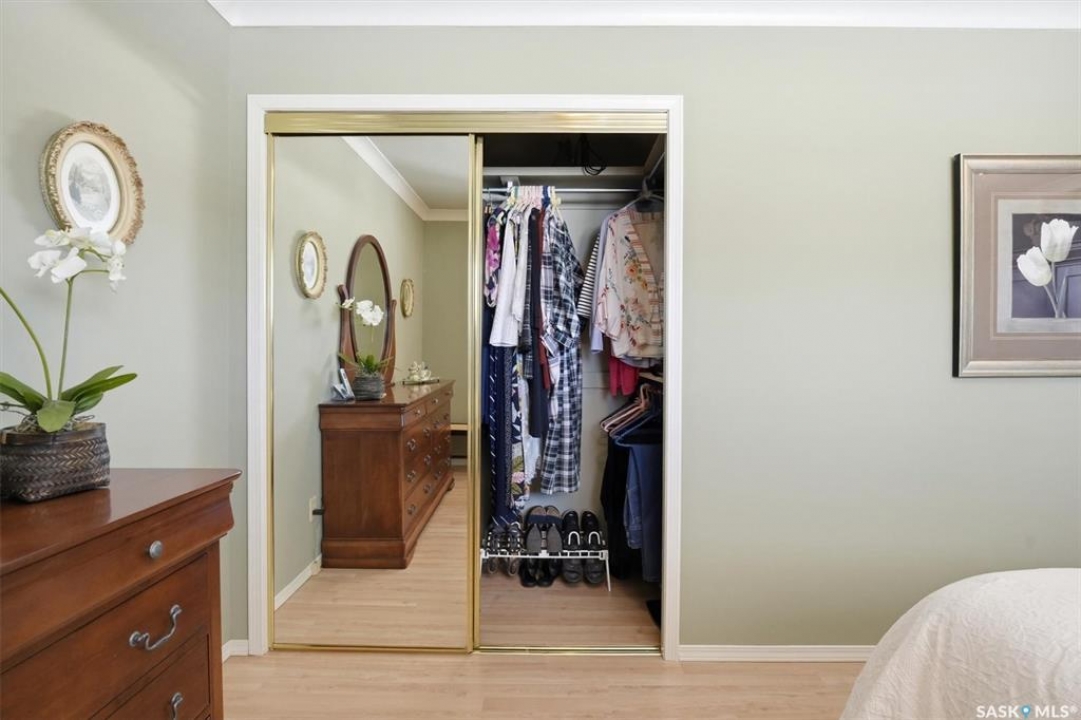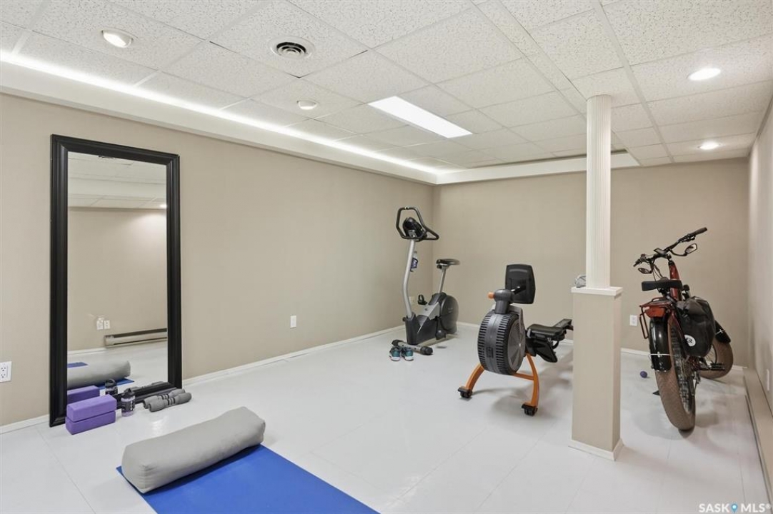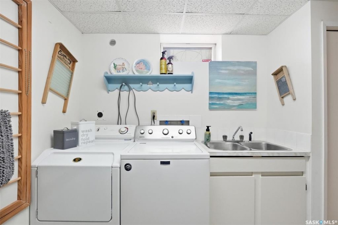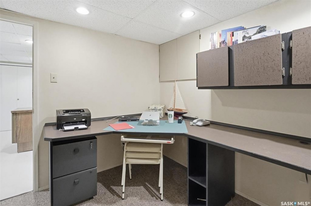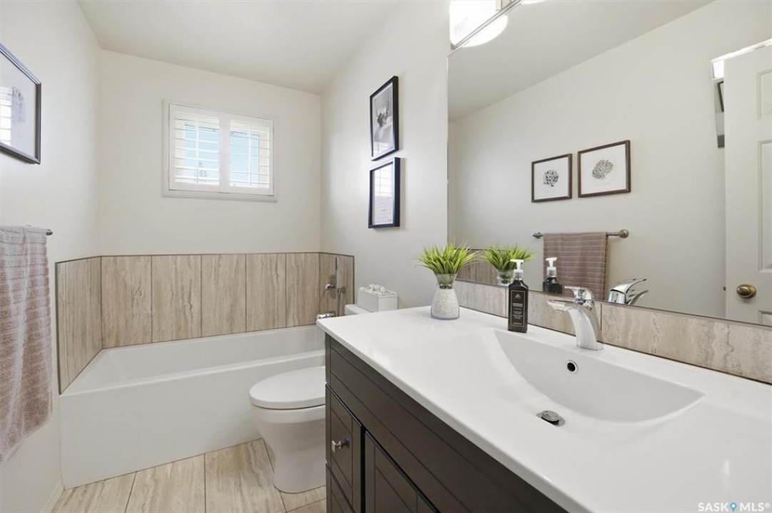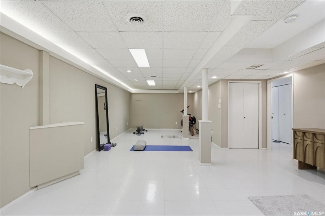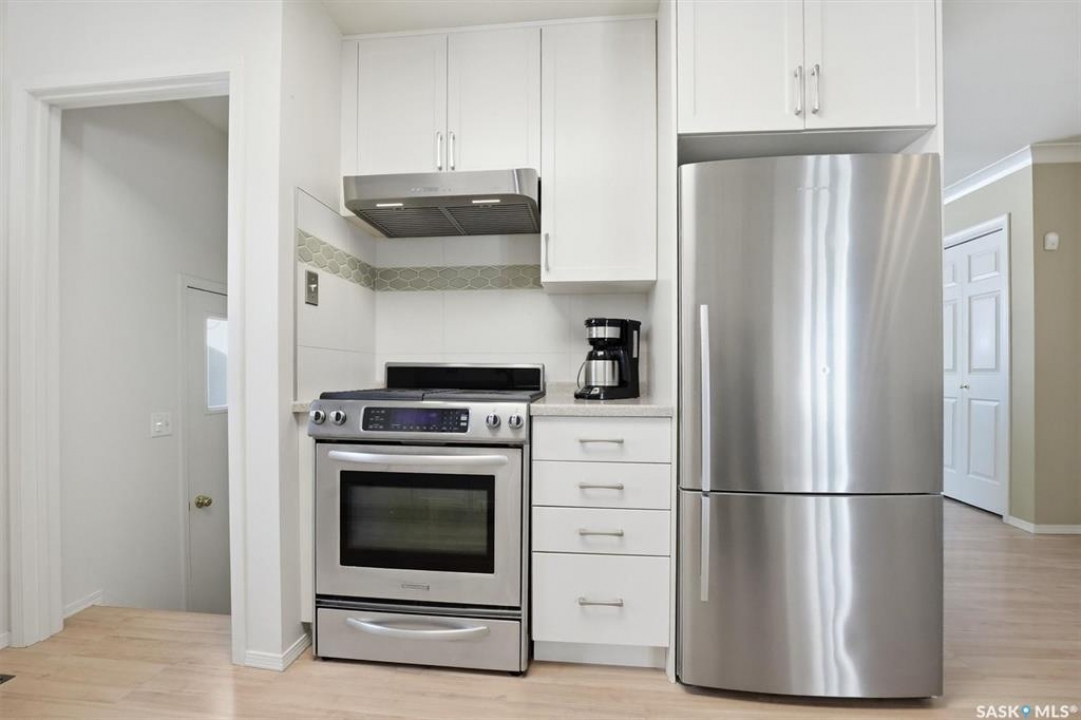 Excellent location for this south west backing home in the heart of East College Park. This fully developed 1157 square foot bungalow, with detached garage, has been meticulously kept from top to bottom. The main level includes 2 bedrooms (originally 3), a 4-piece bath, beautiful kitchen w/ stylish eating bar, a good sized separate dining area, and a gorgeous living room with vaulted ceilings and gas fireplace. In the basement you will find a spacious recreation room, laundry/utility room complete w/ double sink, office, and 3-pce bath. The manicured yard is an entertainers dream and definitely a focal point for this property featuring a large covered deck w/ screen room & composite flooring (2024), private sitting area w/ pergola, rubber epoxy sidewalks (2023), a detached garage (12' W door) w/ sliding door to yard, underground sprinklers front & back, and numerous perennials/ornamental trees. Some other notable updates to this home: kitchen remodel (2020), shingles (2025), hot water heater (2025). Includes kitchen appliances, washer and dryer (natural gas dryer), air conditioner, and window coverings. This prime location is only a short walk to Sidney L. Buckwold Park with 2 elementary schools: St. Augustine (Catholic), and Roland Michener (Public). Quick access from the neighbourhood on Boychuk Drive to several nearby amenities. Presentation of Offers April 7th, 2026 4:00 P.M. Call to view!
