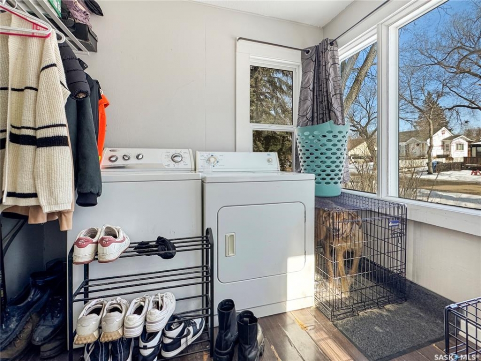 Charming & inviting perfectly describes this cozy bungalow offering 2 bedrooms and 1 bathroom. With 797 sq ft on the main floor, this home also features a heated front porch that conveniently houses the laundry area. Step inside to a spacious living room filled with natural light, with a bedroom just off to the side. The bright and cheerful kitchen offers plenty of counter and cupboard space, along with a built-in dishwasher for added convenience. A second bedroom is located just off the kitchen, and a full 4-piece bathroom completes the main level. Downstairs, you'll find two versatile dens—ideal for a kids' hangout, home office, or hobby space. One room is currently used as a bedroom, though the window is not compliant. The unheated back porch leads out to a fully fenced backyard with ample parking options. Recent updates include shingles (2022) and a new water heater (2025),main floor windows along with a 100 amp electrical panel. Whether you're a first-time buyer or looking for a solid investment property, this home checks all the boxes. Don't wait—call today to book your showing!