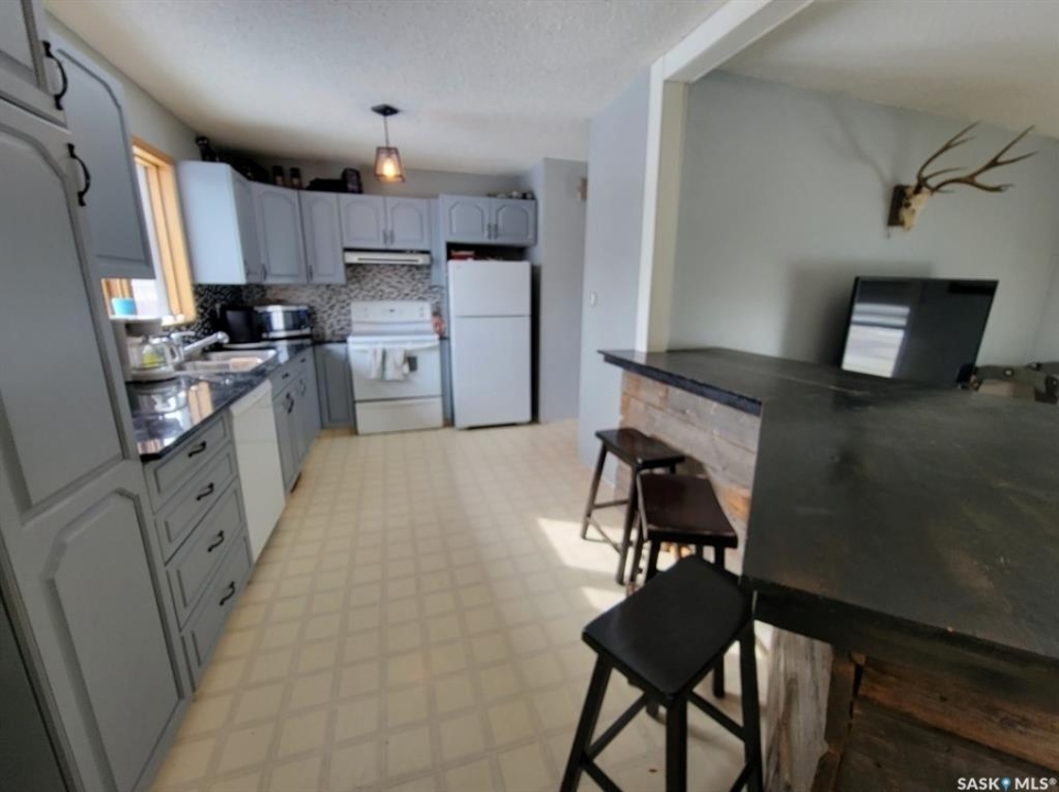 Affordable Opportunity in a Prime Location, Park Views and Minutes to the Lake! Welcome to this 4 bed, 3 bath home offering 1,204 sq ft of functional living space in one of Macklin's most desirable neighborhoods, an excellent opportunity for first-time buyers, growing families, or investors looking to build equity. Situated directly across from a park and just a short 2 minute drive to the lake, this 1991 built home offers a location that continues to hold strong long term value. The main floor features a bright and practical layout with a kitchen complete with central island, dining area, and patio doors leading to a spacious deck—ideal for everyday living and entertaining. The main level includes two bedrooms, including a generous primary bedroom with a 2-piece ensuite. Originally designed as three bedrooms on the main floor, there is potential to convert it back to suit your needs. The fully finished basement adds additional living space with two bedrooms, a full bathroom, a large family room, and ample storage—providing flexibility for families or rental potential. Additional features include central air conditioning, natural gas forced air heating, a fully insulated attached garage, fully fenced yard, underground sprinklers, gemstone seasonal lighting, and great curb appeal. With solid bones, a great layout, and an unbeatable location, this home offers an excellent chance to enter the market at an affordable price point while adding your own updates over time. Don't miss this opportunity to invest in a home with strong potential in a sought-after area.