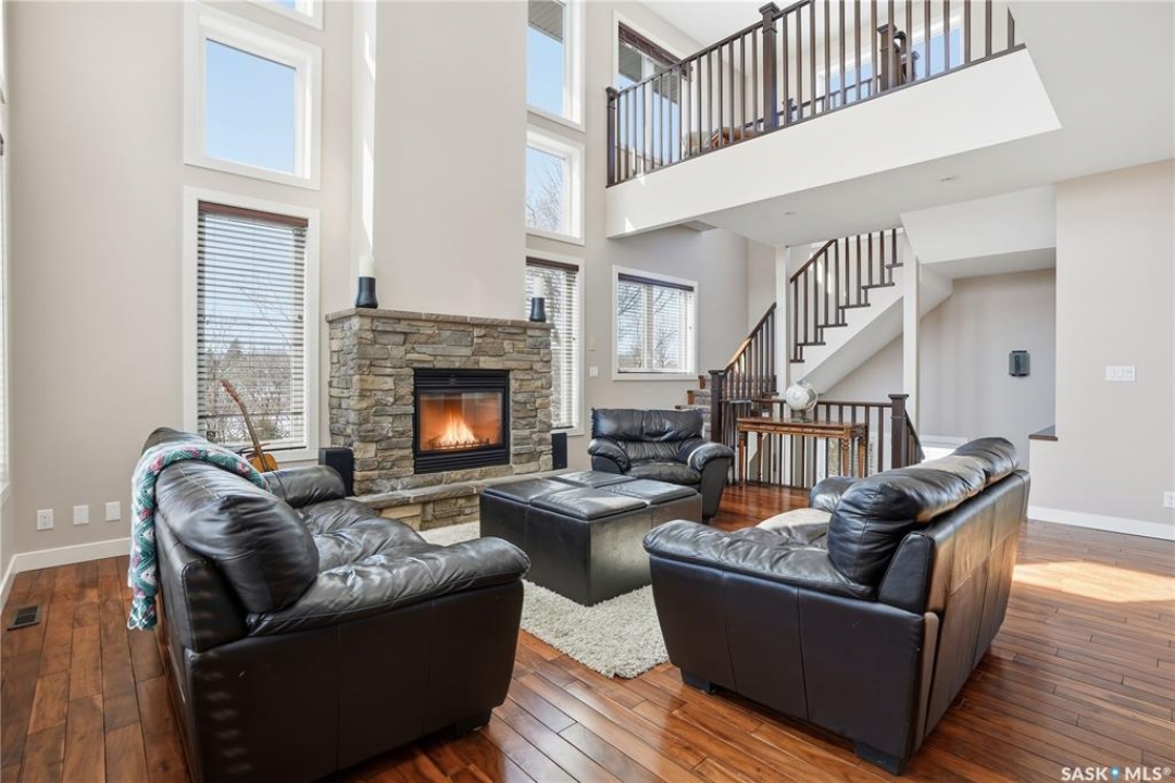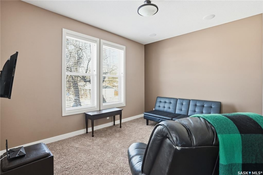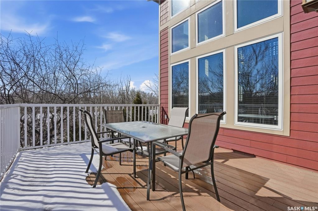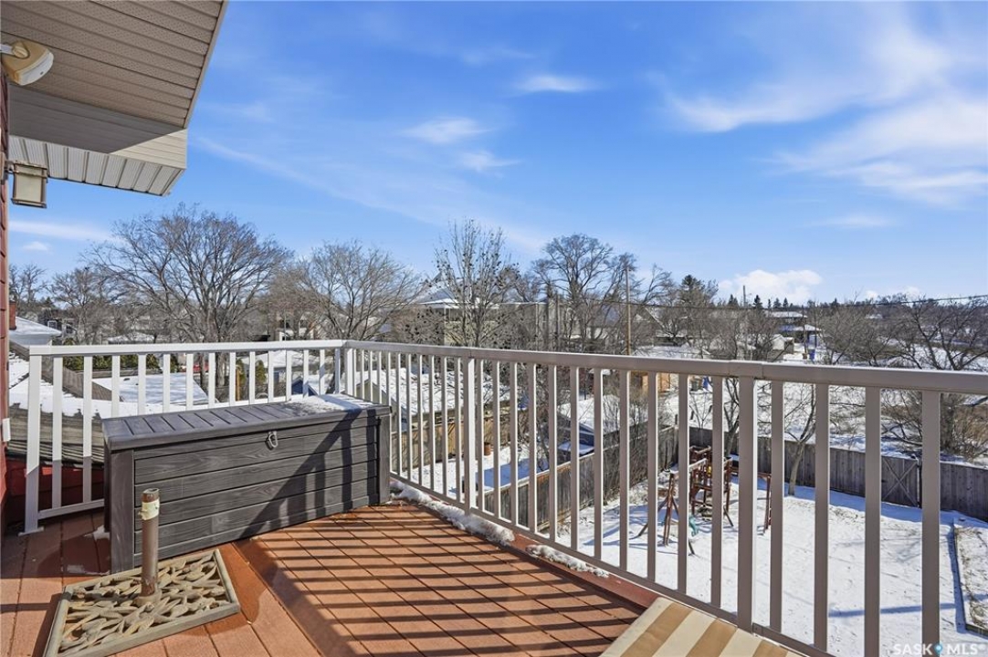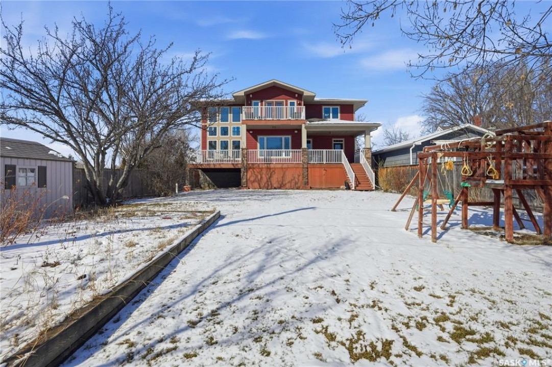Welcome to one of Regina's more unique properties — a custom-built home tucked away on a quiet dead-end street, backing onto Wascana Creek and siding a nature path, while also facing a park and playground. It's a rare setting that's hard to replicate. Built with ICF and SIP construction, this home was designed with quality and efficiency in mind. The main floor opens with a spacious entry and a bright front office or den. The living room features two-storey windows that bring in natural light and frame the creek views, along with a gas fireplace that anchors the space. The kitchen offers plenty of cabinet space, a large island, pantry, and flows naturally into a dedicated dining area overlooking the yard and green space. Upstairs, the open staircase leads to a cozy reading nook, two generously sized bedrooms, a full bathroom, and convenient laundry. The primary suite is set apart, with its own ensuite, walk-in closet, and a private balcony overlooking the creek. The basement is fully finished with a large family room, two additional bedrooms, a full bathroom, and storage/utility space — giving you flexibility for family, guests, or workspace. Outside, the home continues to deliver with a welcoming front porch, a full-length back deck, fenced yard, and shed. The current yard extends to the alley, with the option to reconfigure for additional parking if needed. Additional features include hardwood flooring on the main level, large basement windows, built on piles, and recent interior paint. A thoughtfully built home in a setting that's hard to come by — worth seeing in person to fully appreciate.