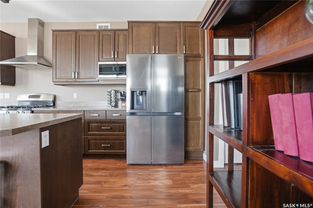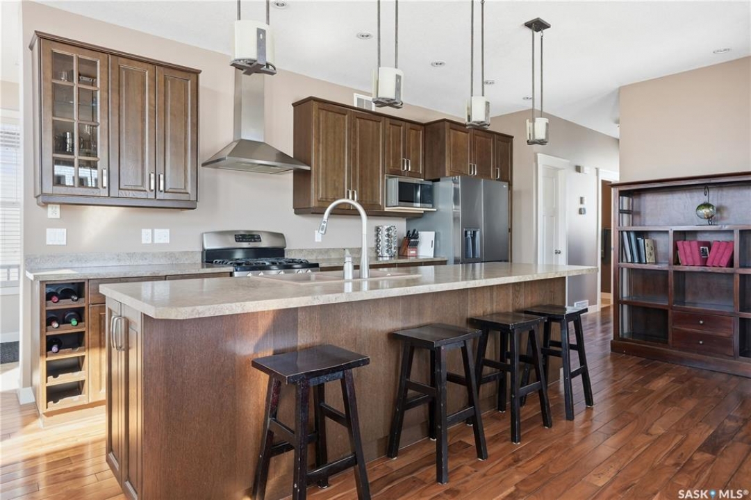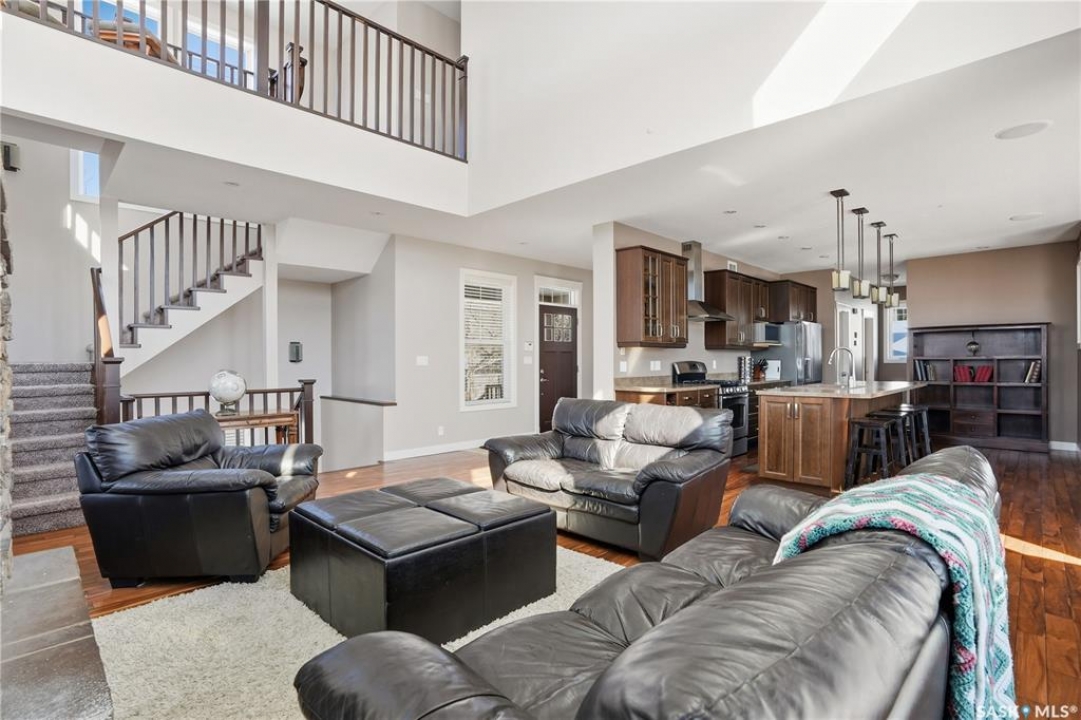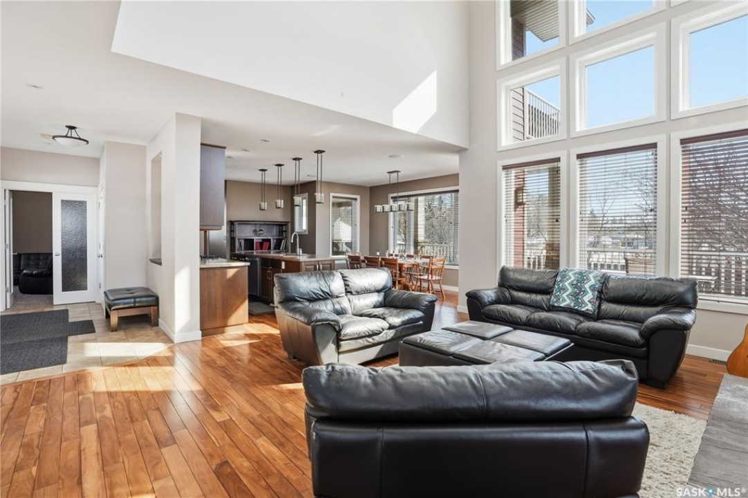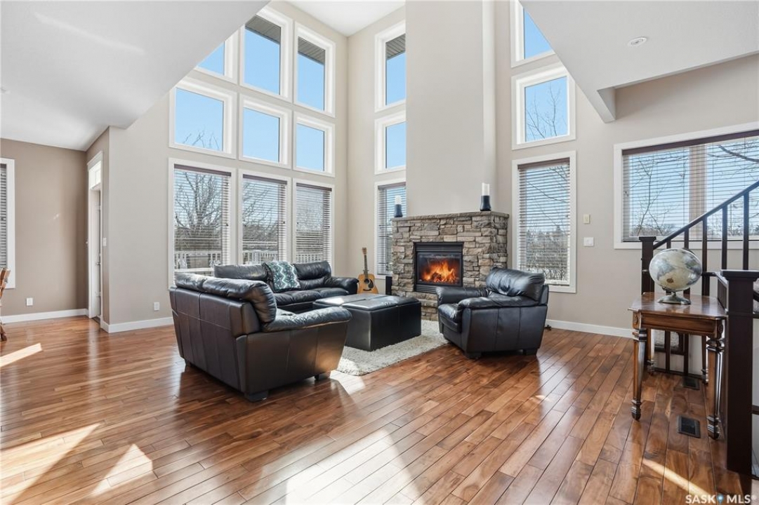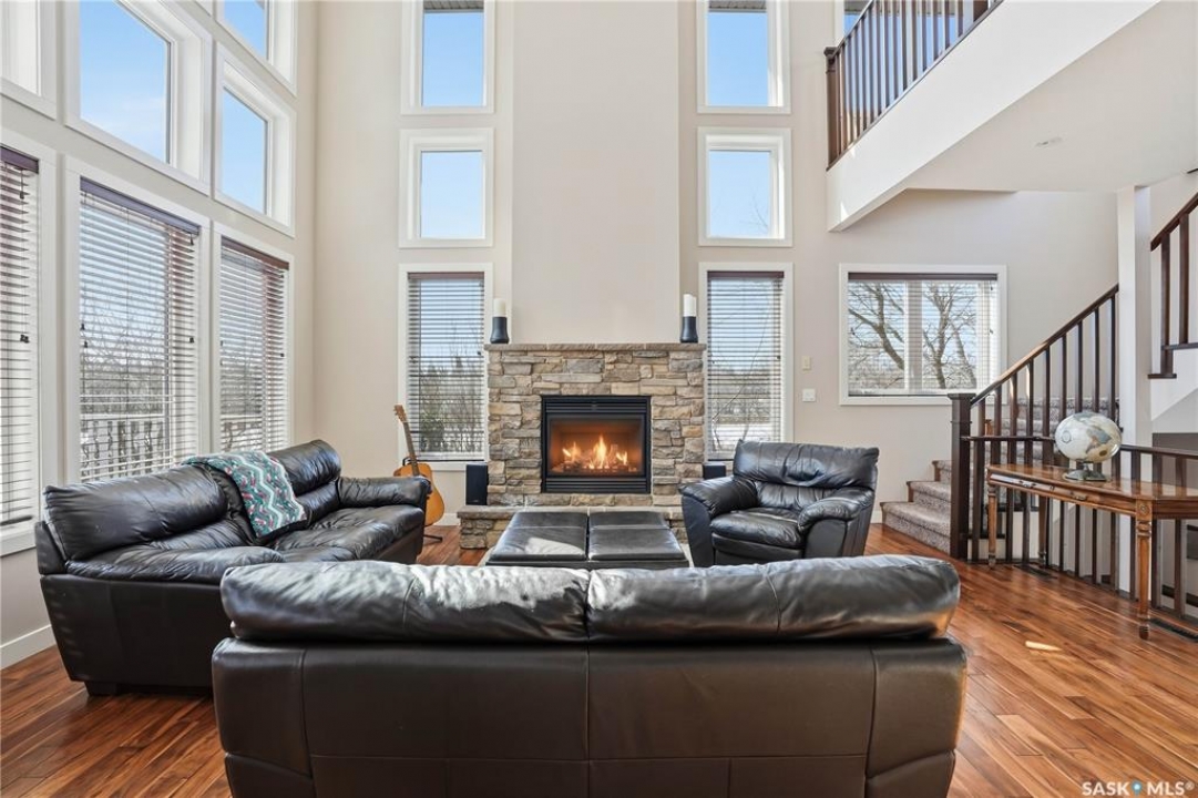 Welcome to one of Regina's more unique properties — a custom-built home tucked away on a quiet dead-end street, backing onto Wascana Creek and siding a nature path, while also facing a park and playground. It's a rare setting that's hard to replicate. Built with ICF and SIP construction, this home was designed with quality and efficiency in mind. The main floor opens with a spacious entry and a bright front office or den. The living room features two-storey windows that bring in natural light and frame the creek views, along with a gas fireplace that anchors the space. The kitchen offers plenty of cabinet space, a large island, pantry, and flows naturally into a dedicated dining area overlooking the yard and green space. Upstairs, the open staircase leads to a cozy reading nook, two generously sized bedrooms, a full bathroom, and convenient laundry. The primary suite is set apart, with its own ensuite, walk-in closet, and a private balcony overlooking the creek. The basement is fully finished with a large family room, two additional bedrooms, a full bathroom, and storage/utility space — giving you flexibility for family, guests, or workspace. Outside, the home continues to deliver with a welcoming front porch, a full-length back deck, fenced yard, and shed. The current yard extends to the alley, with the option to reconfigure for additional parking if needed. Additional features include hardwood flooring on the main level, large basement windows, built on piles, and recent interior paint. A thoughtfully built home in a setting that's hard to come by — worth seeing in person to fully appreciate.