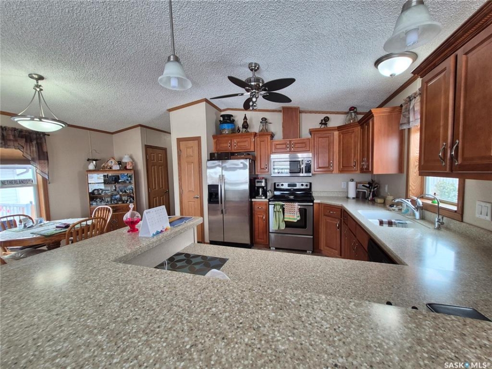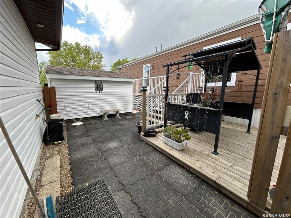 Welcome to small town living just a short drive from Weyburn! This well maintained home in Halbrite offers space, versatility, and exceptional outdoor living on a generous 100' x 120' fully fenced property. The yard is thoughtfully set up for both relaxation and function, featuring a patio area, deck, raised garden beds, mature trees and shrubs, and ample parking. There's even a 50 amp RV plug at the rear of the property—perfect for visitors or your own travel setup. Two storage sheds provide extra space. A standout feature of this property is the oversized double garage, fully insulated and heated, offering plenty of room for parking, projects, and storage. Above and beyond, the garage includes a self-contained suite complete with a full bathroom, laundry, kitchen area, and a Murphy bed—ideal for guests, extended family, or potential rental income. Inside the home, pride of ownership is evident throughout. You'll appreciate the bright, welcoming living spaces, a functional layout, and a kitchen with plenty of cabinet and counter space. Storage is abundant, making this home as practical as it is inviting. Whether you're looking for a move-in-ready home, extra income potential, or space to enjoy both indoors and out, this property checks all the boxes, all within a short, convenient drive to Weyburn. Contact for your showing today!