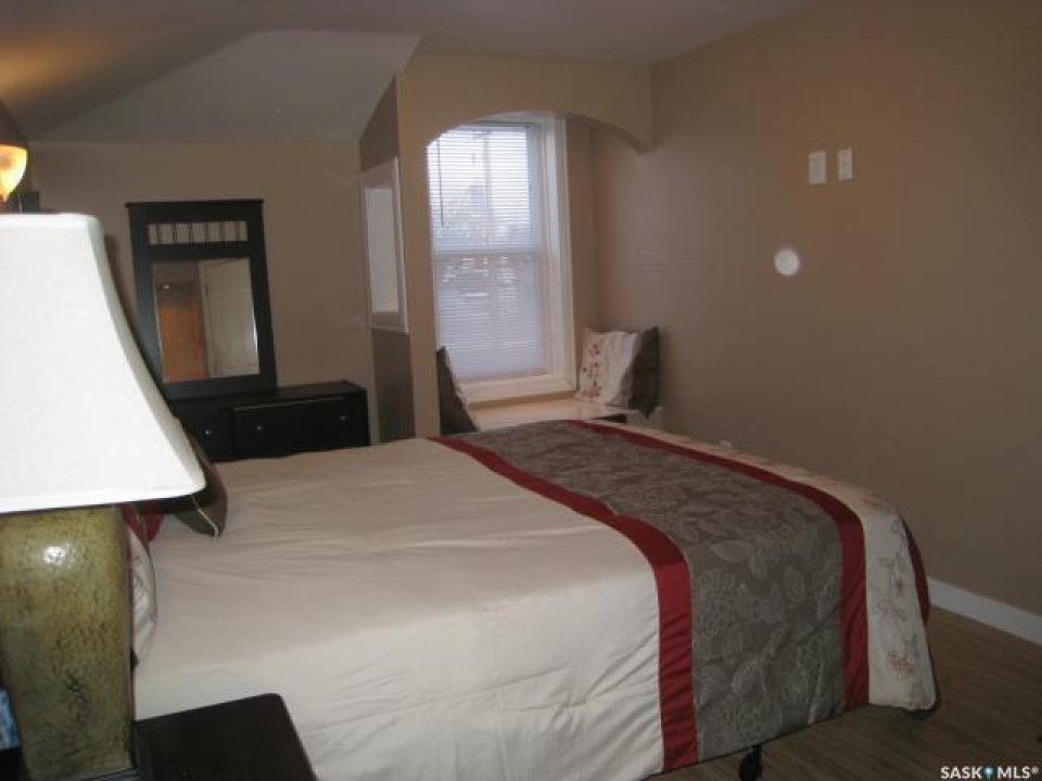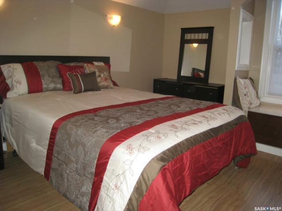 Lovely character home with many modern updates that would make the perfect first home. Covered porch across front of house. Upon entry you notice the original french doors and original wooden staircase. French doors open to a spacious living room and attached dining room both with tall ceilings. Easy clean laminate flooring throughout. Large windows fill each room with sunlight. Kitchen offers newer white cabinetry with laminate counter tops. Pantry for extra storage. Fridge, stove and built-in dishwasher are all included. Upper level has an amazing new bathroom renovation with ceramic tile surrounding the jetted corner tub. Rain shower head. Updated vanity, sink, taps, lighting and toilet. Two very large bedrooms one with a walk-in closet. Lower level is clean and dry. High efficient furnace and newer hot water heater. Washer and dryer included. Enjoy a fully fenced in backyard with deck, grass area and a garden area. Room to park three vehicles. Newer water and sewer lines, updated electrical, some new windows, upgraded insulation and siding. Shows beautifully and priced to sell. This home is move-in-ready and can be purchased with 1441 Argyle. Live on one side and rent the other to subsidize your mortgage payment. Awesome revenue opportunity.