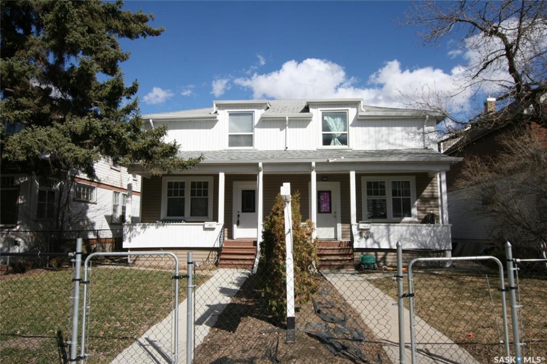 Lovely three bedroom character home that would make a wonderful first home. Covered porch across front of house. Upon entry you notice the original wooden staircase along with original woodwork throughout. Spacious living room and attached dining room both with tall ceilings. Easy clean laminate flooring throughout. Large windows fill each room with sunlight. Kitchen offers plenty of cabinetry with good storage. Fridge, stove and built-in dishwasher are all included. Upper level has three good sized bedrooms and a full four-piece bathroom. Lower level is clean and dry. High efficient furnace and newer hot water heater. Washer and dryer included. Enjoy a fully fenced in backyard with deck, grass area and a garden area. Room to park three vehicles. Newer water and sewer lines, updated electrical, some new windows, upgraded insulation and siding. Shows beautifully and priced to sell. This home is move-in-ready and can be purchased with 1437 Argyle. Live on one side and rent the other to subsidize your mortgage payment. Awesome revenue opportunity.